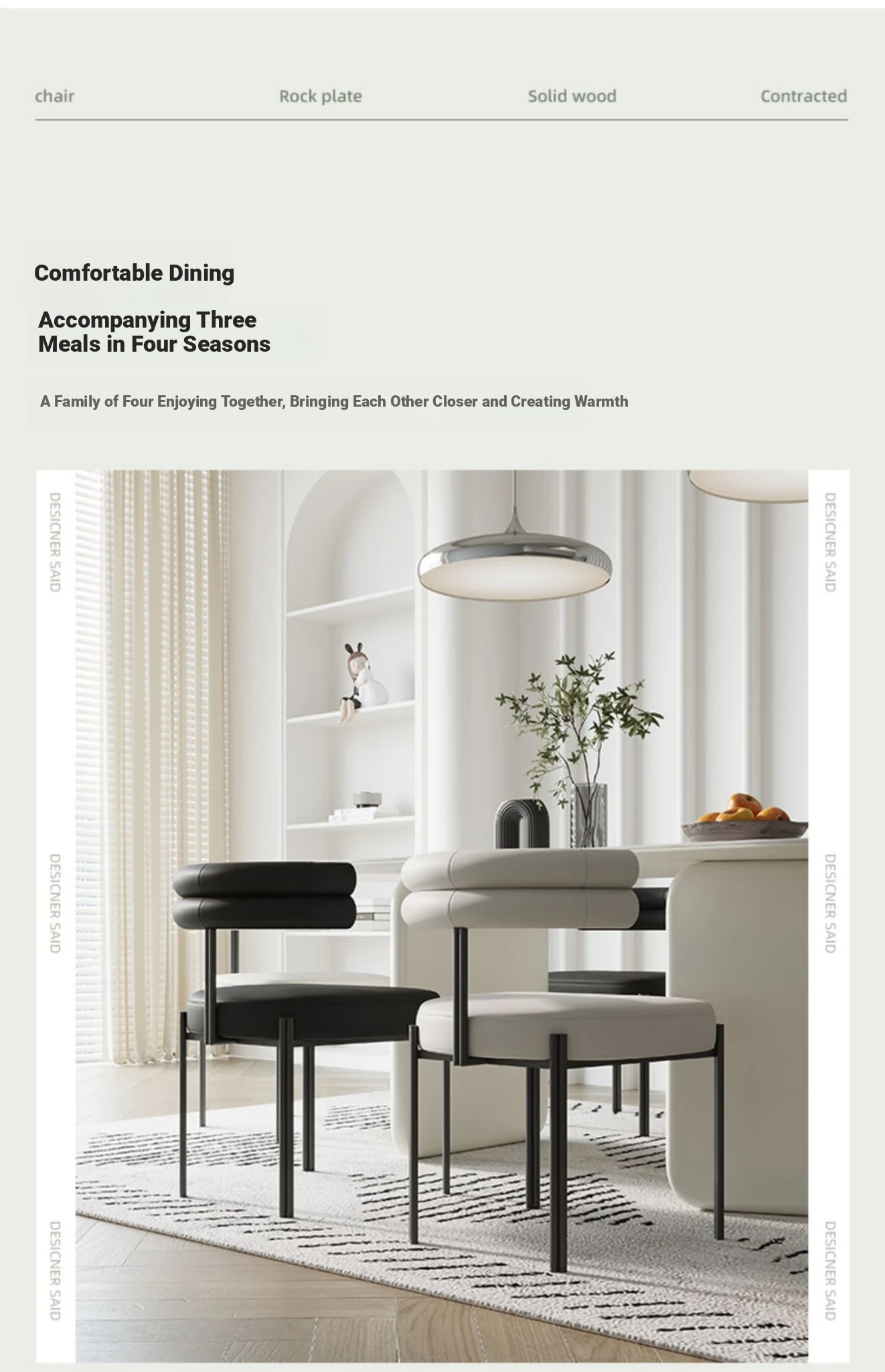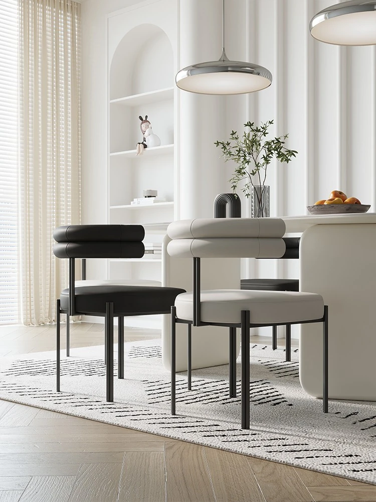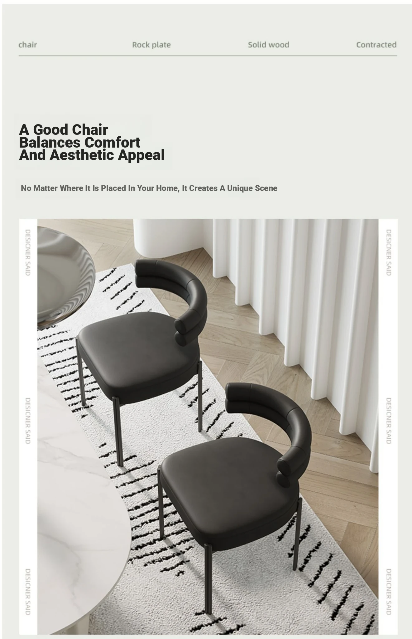 Italian Minimalist Designer Dining Chair – Stylish Home Dining Chair with Light Luxury Feel, Black Backrest, Perfect for Makeup and Dining Spaces, Simple and Elegant Design.
