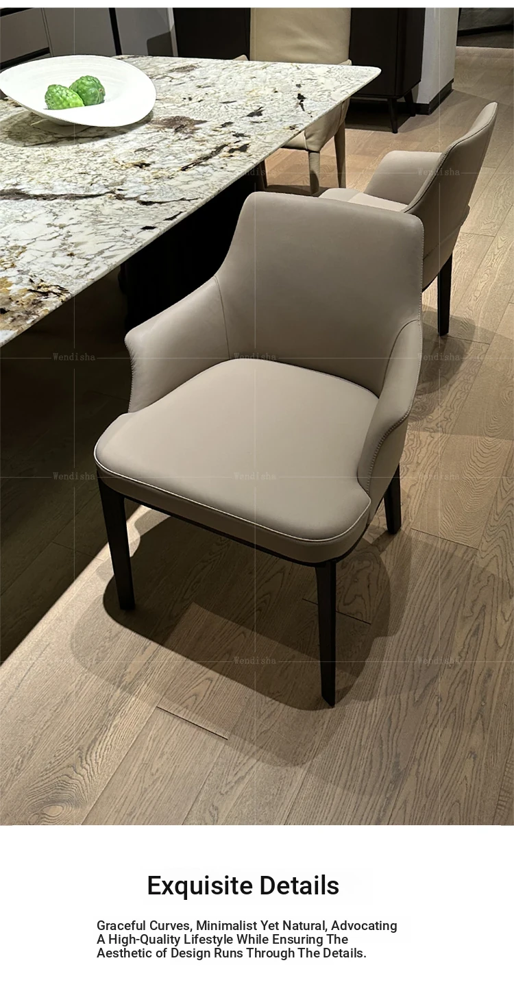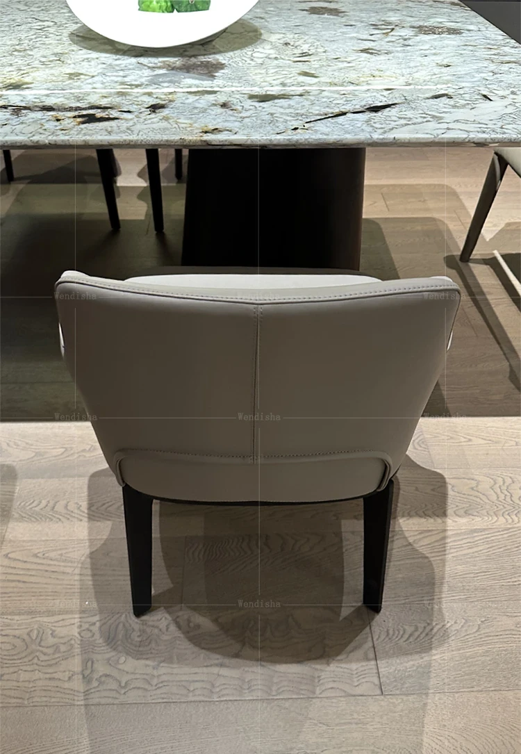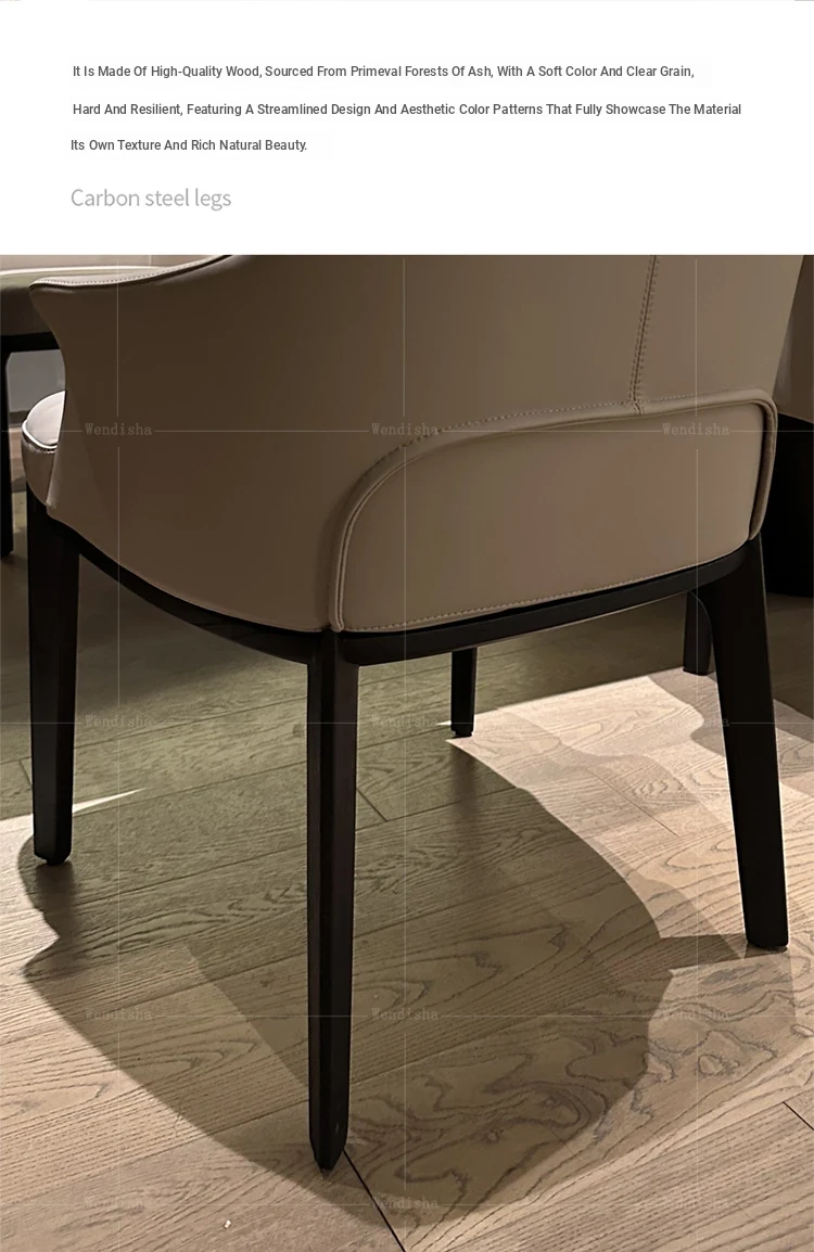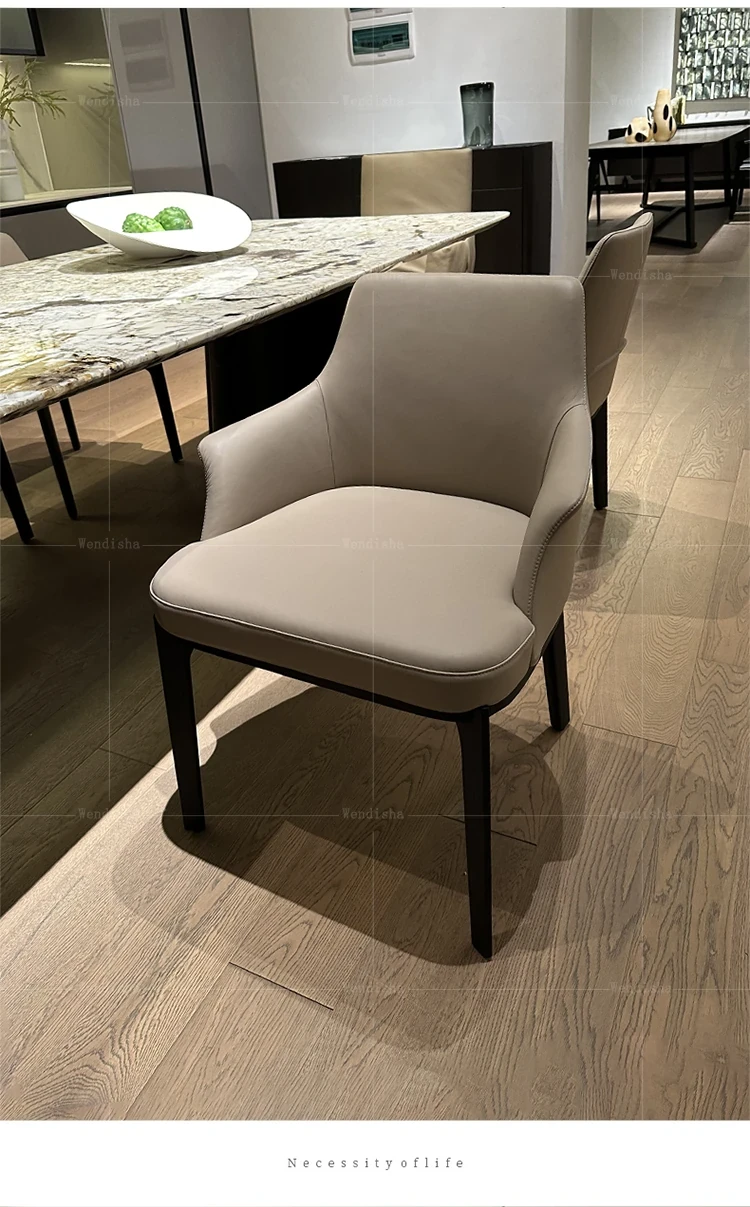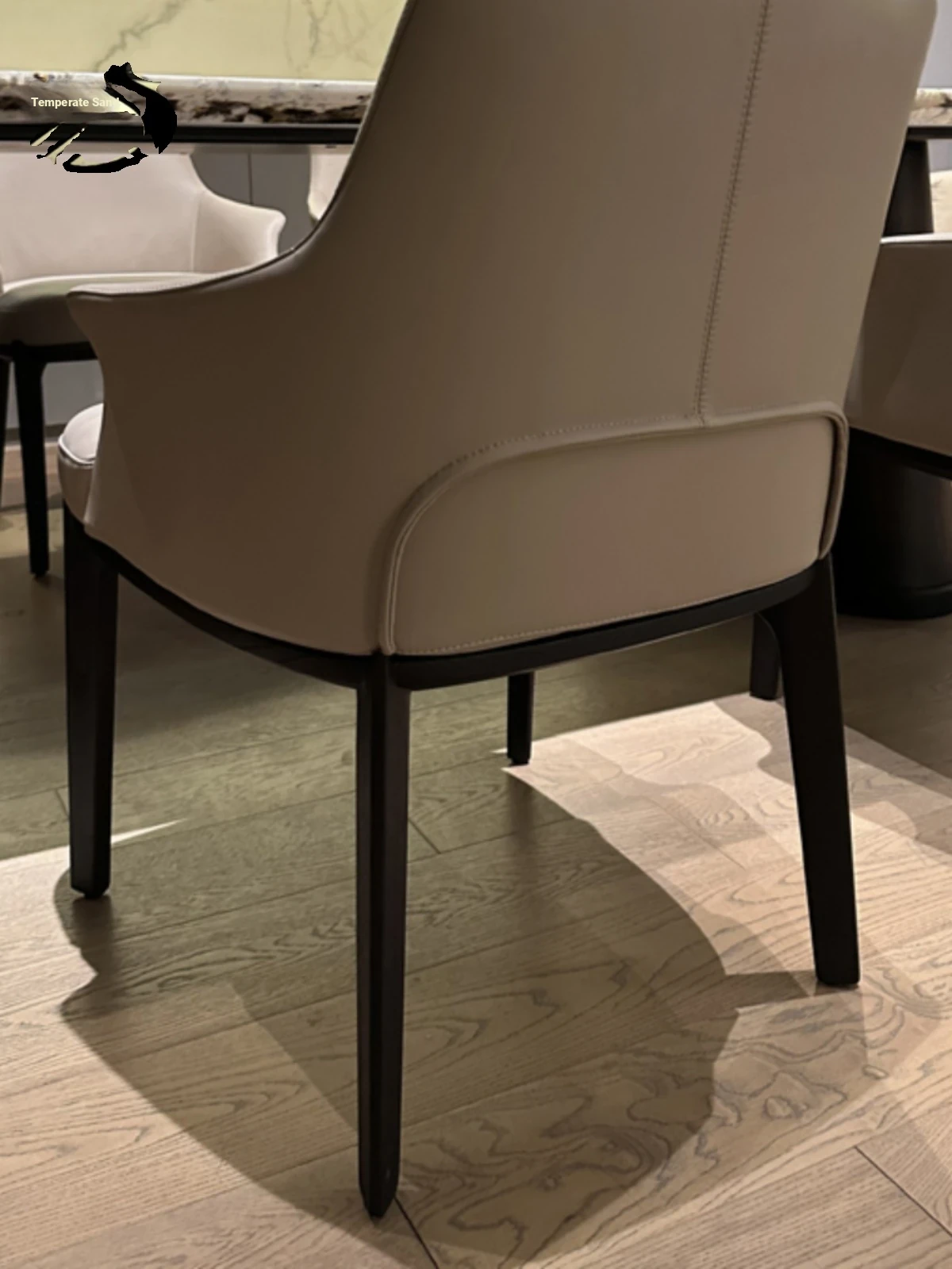 Italian Minimalist Genuine Leather Dining Chair - Modern Solid Wood Design with Top-Grain Cowhide, Luxurious Yet Simple, Perfect for Home Use – Comfortable Backrest Lounge Chair.