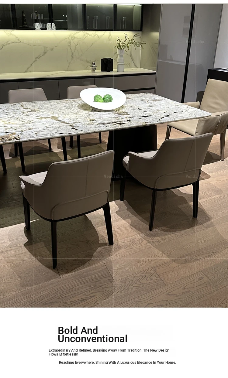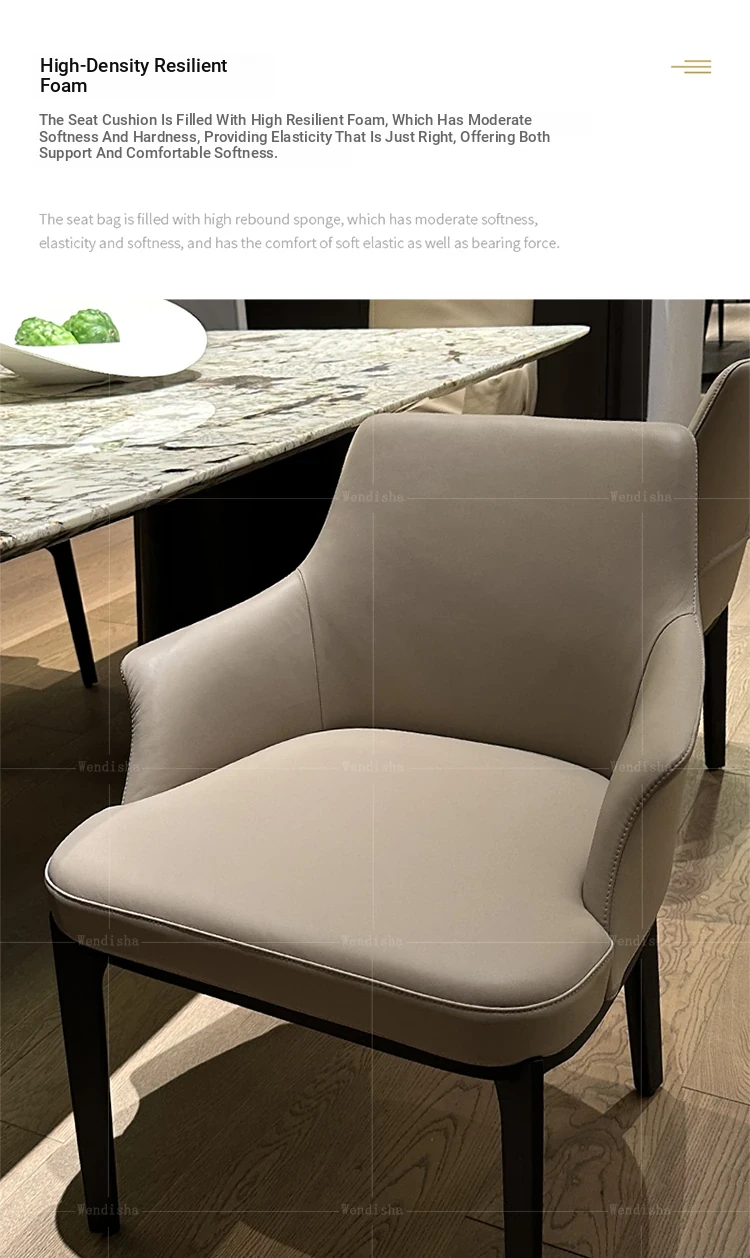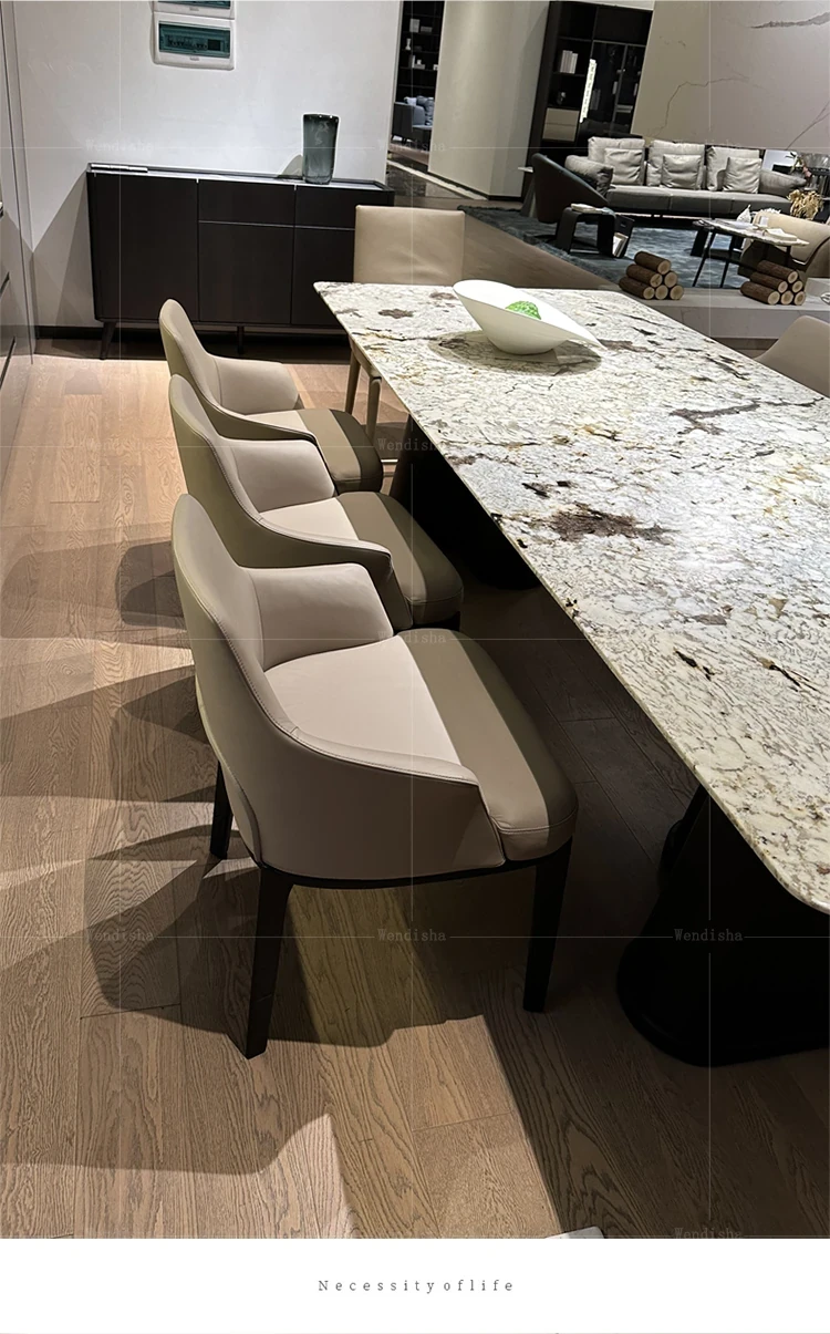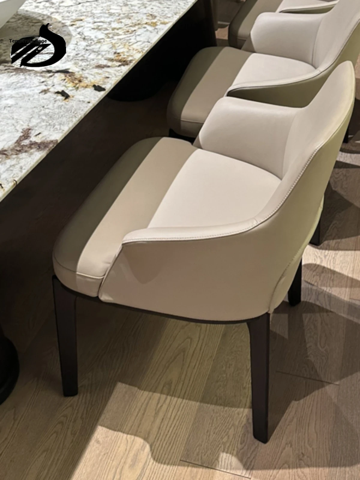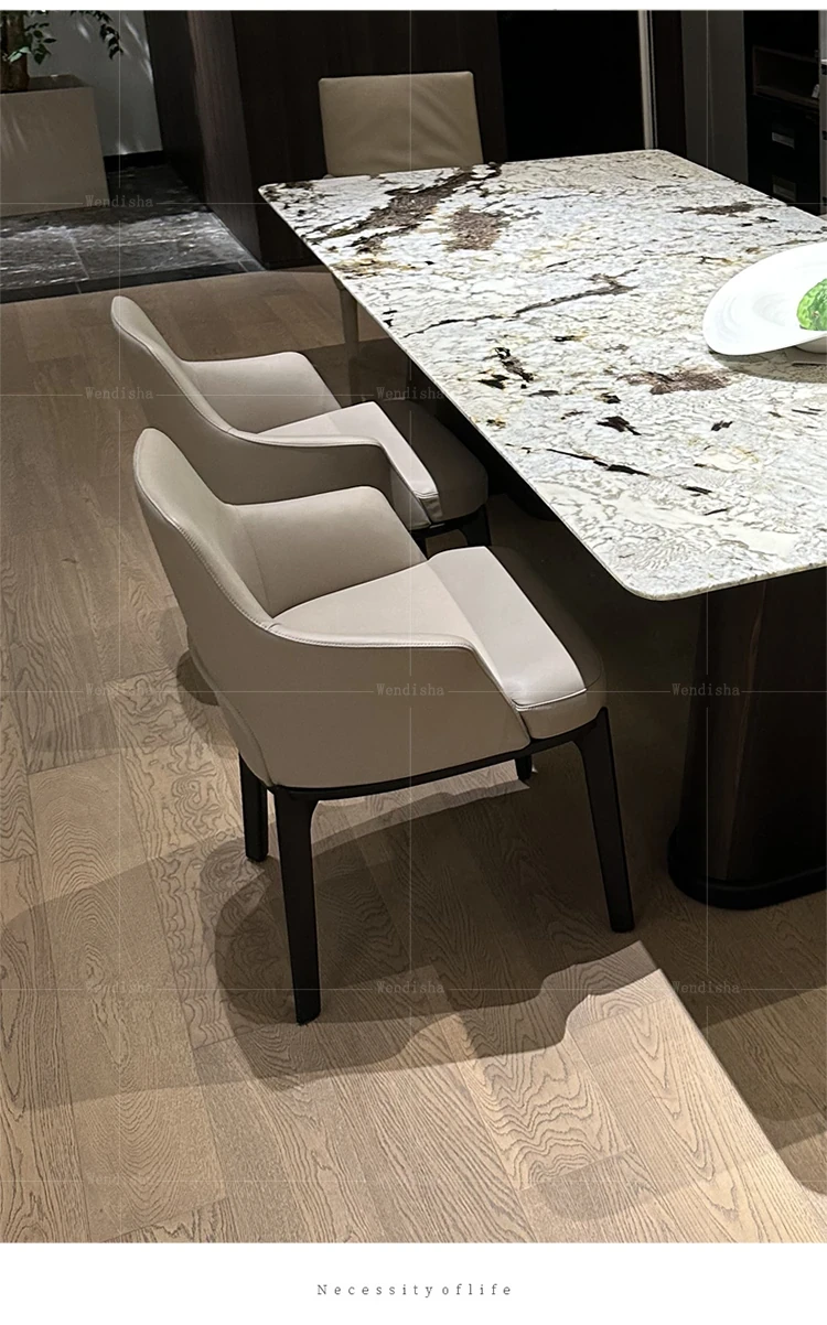 Italian Minimalist Genuine Leather Dining Chair - Modern Solid Wood Design with Top-Grain Cowhide, Luxurious Yet Simple, Perfect for Home Use – Comfortable Backrest Lounge Chair.