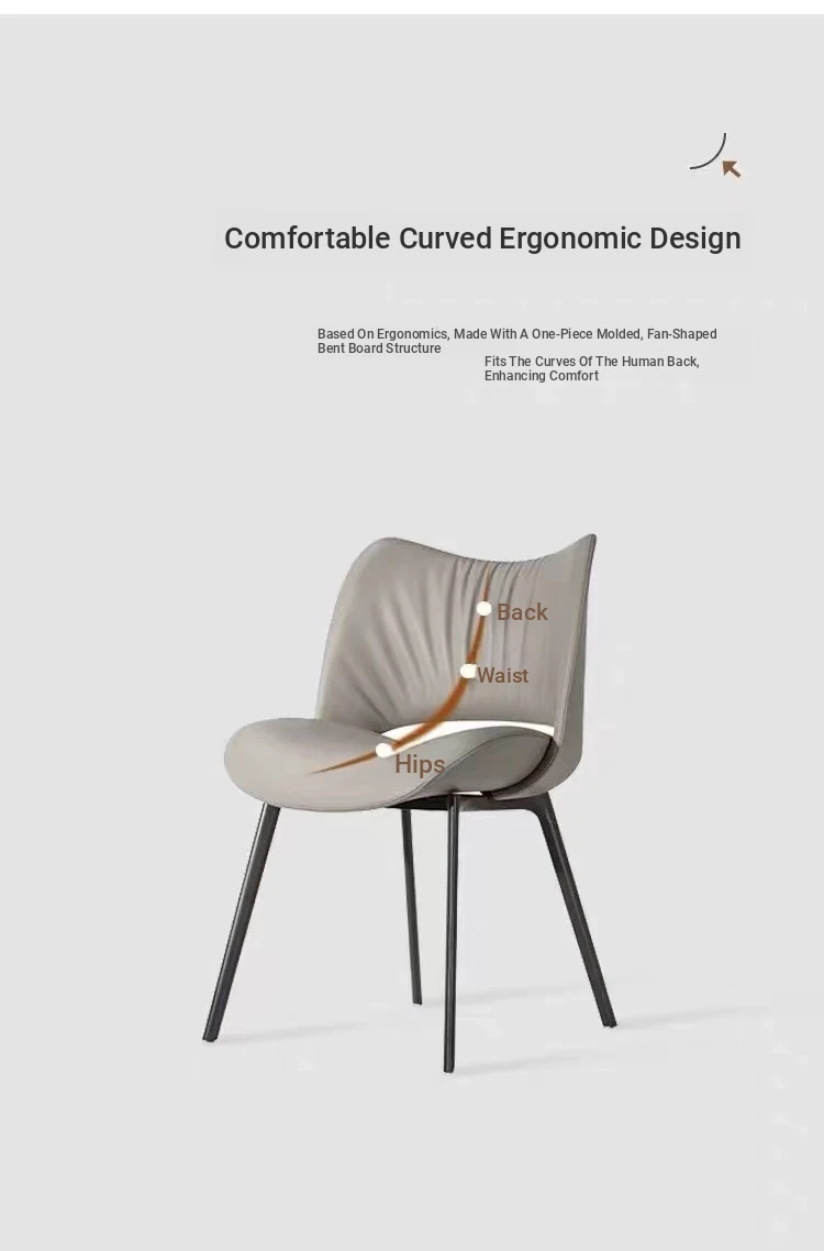 Italian Minimalist Luxury Cream Dining Chair - Designer Style, Comfortable Backrest for Long Sitting, Perfect for Home Use, Trendy and Elegant.