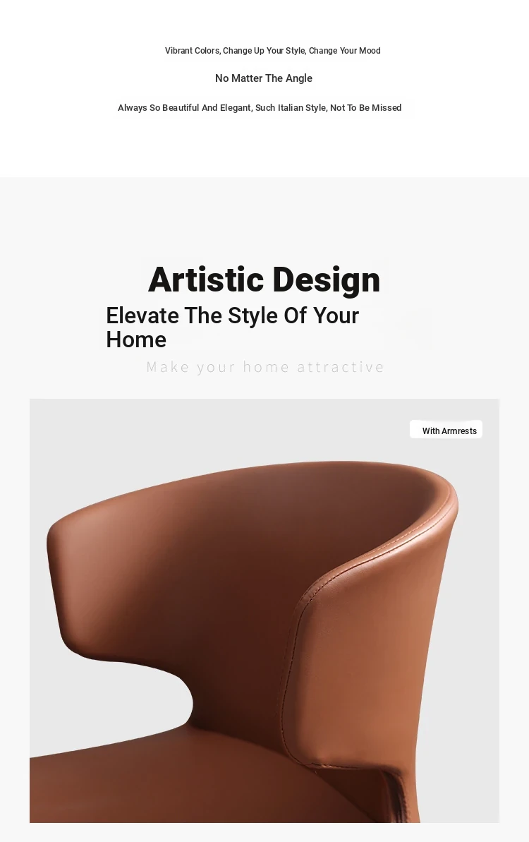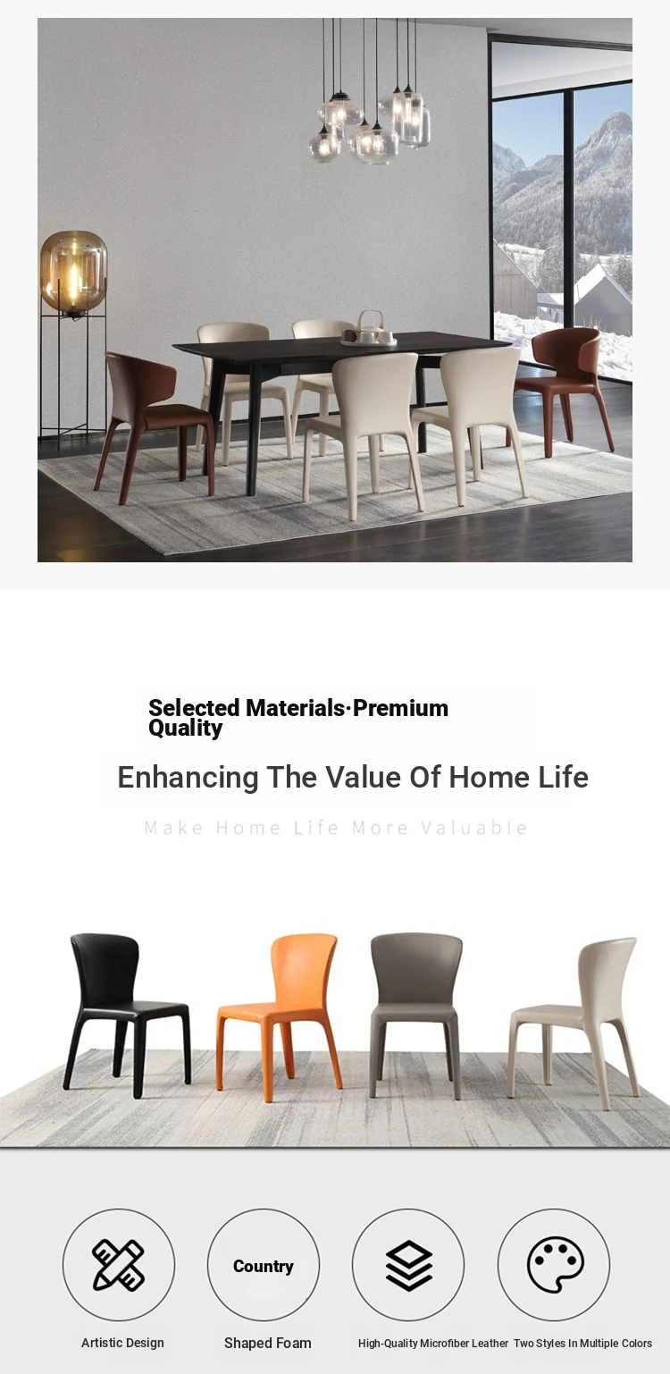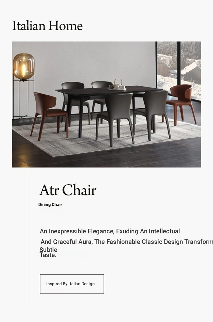 Italian Minimalist Luxury Dining Chair - Modern Home & Restaurant Backrest Stool, Low-Profile Shaped Latex Upholstered High-End Leather Seat for Hotels and Dining Areas.