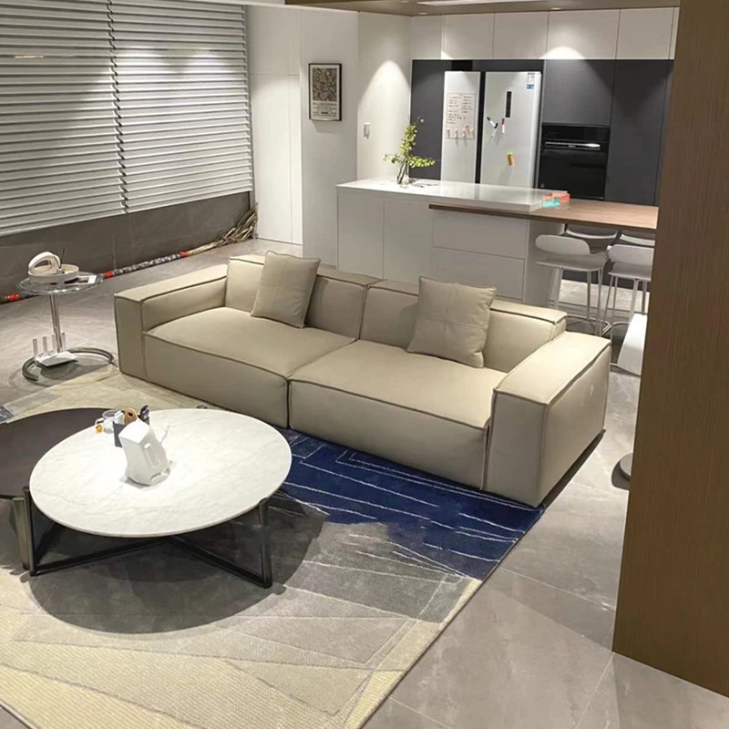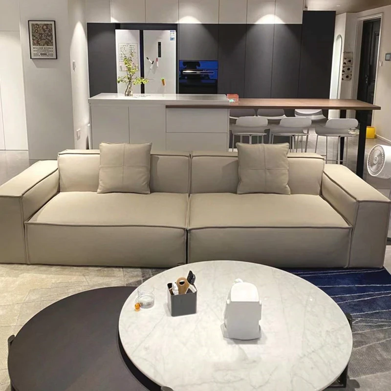 Italian Minimalist Luxury Living Room Sofa - Modern Compact Design with Tech Fabric for Small Spaces - Stylish Tofu Block Sofa for Two to Four People