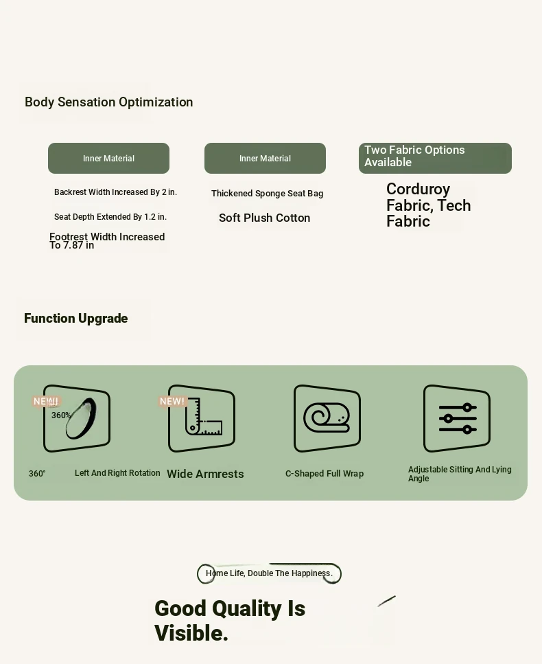 Upgrade 360 Rotate [Comfortable corduroy-5th gear adjustment] Cream White