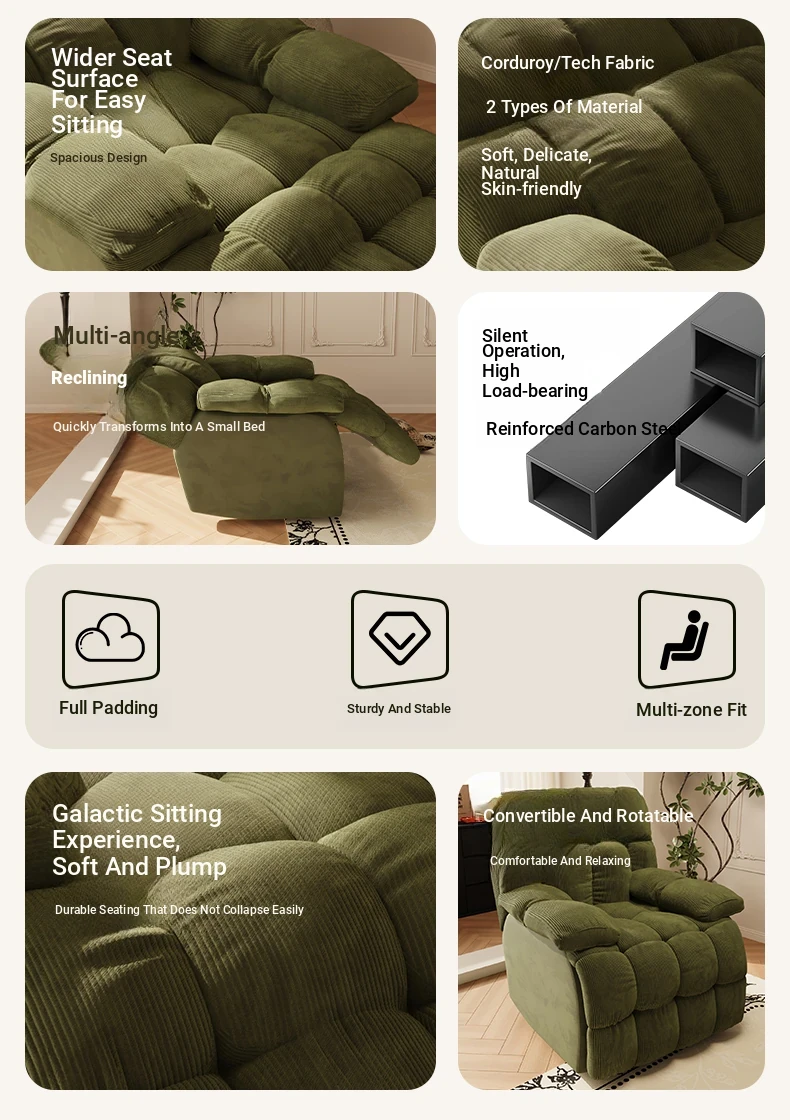 Lazy Sofa Chair - Versatile Single Recliner for Living Room and Bedroom, Compact and Comfortable Lounge Chair with Multi-Functional Swivel Design, Perfect for Relaxation and Napping!