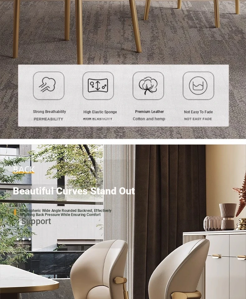 Luxurious Genuine Leather Dining Chair - Designer Home Comfort with Modern Minimalist Design, Top-Grade Cowhide Upholstery for Restaurants and Hotels