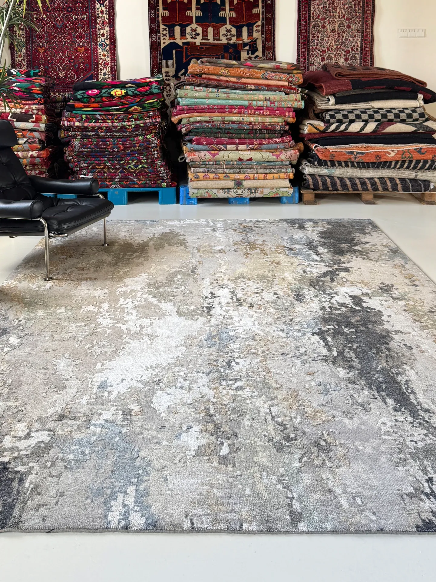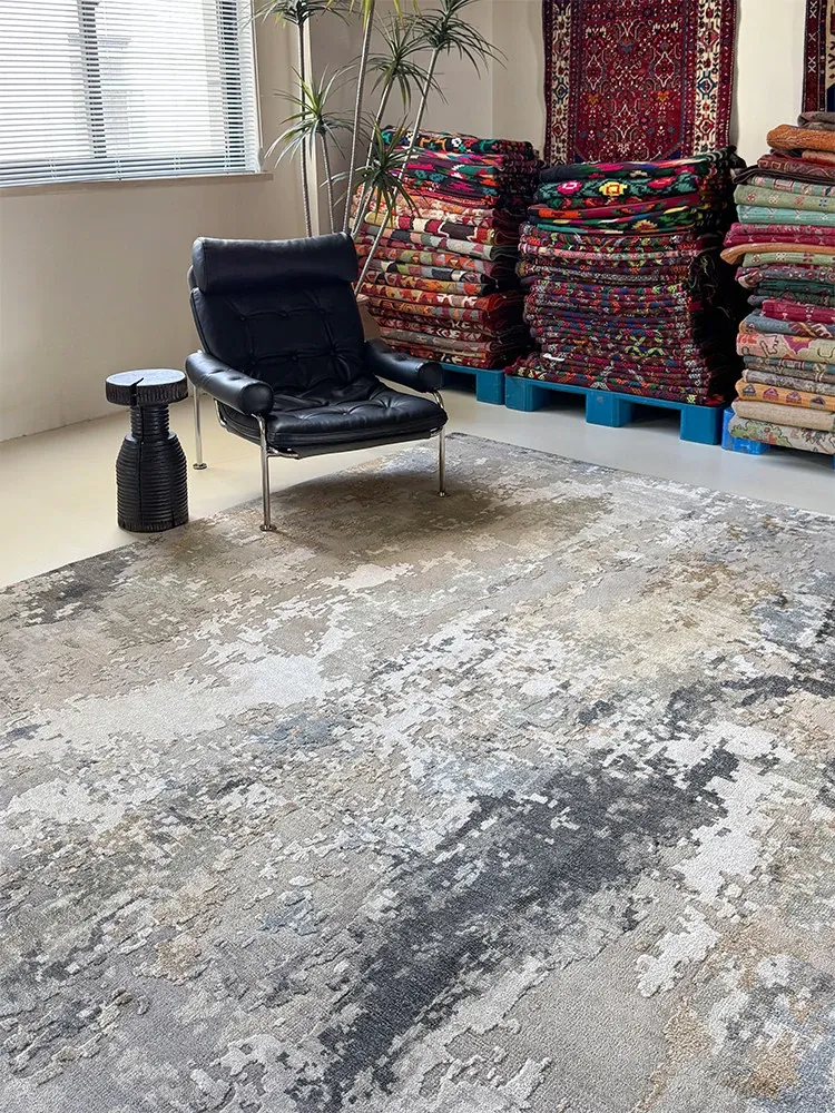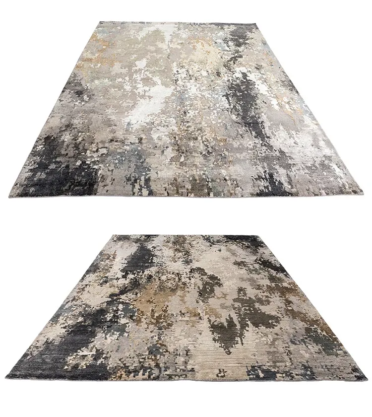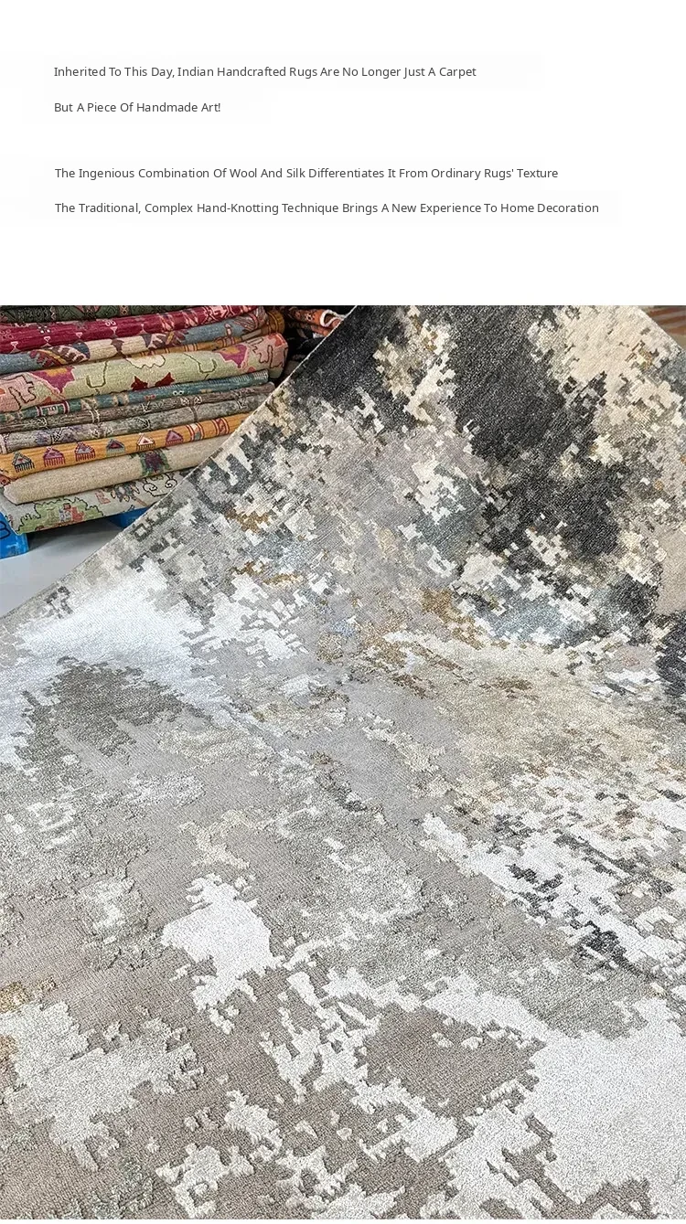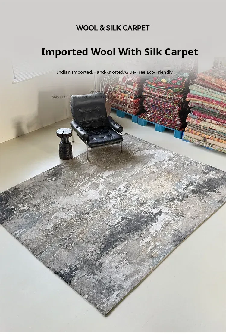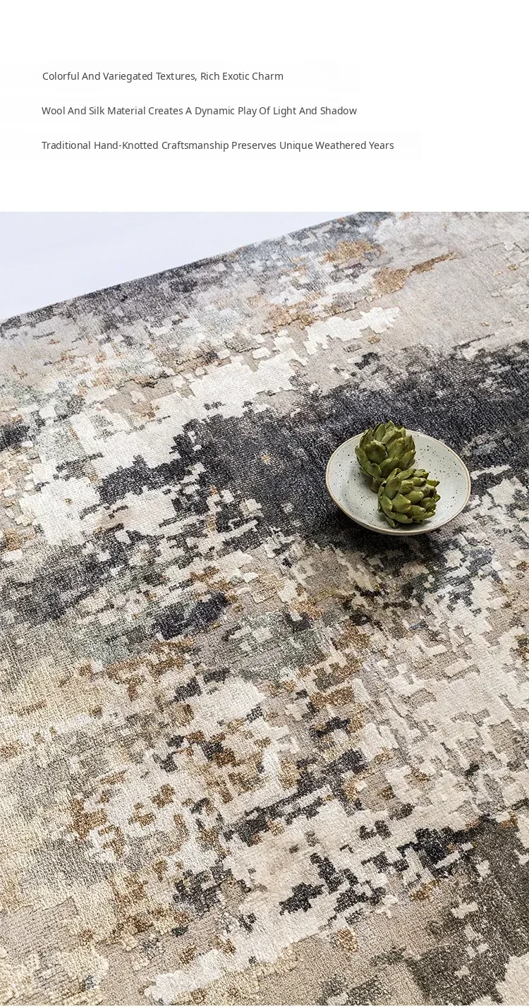 Luxurious Handcrafted Wool and Silk Knotted Carpet - Visual Flavor Imported Villa Style Area Rug for American and Chinese Living Rooms, Perfect for Bedroom Elegance.