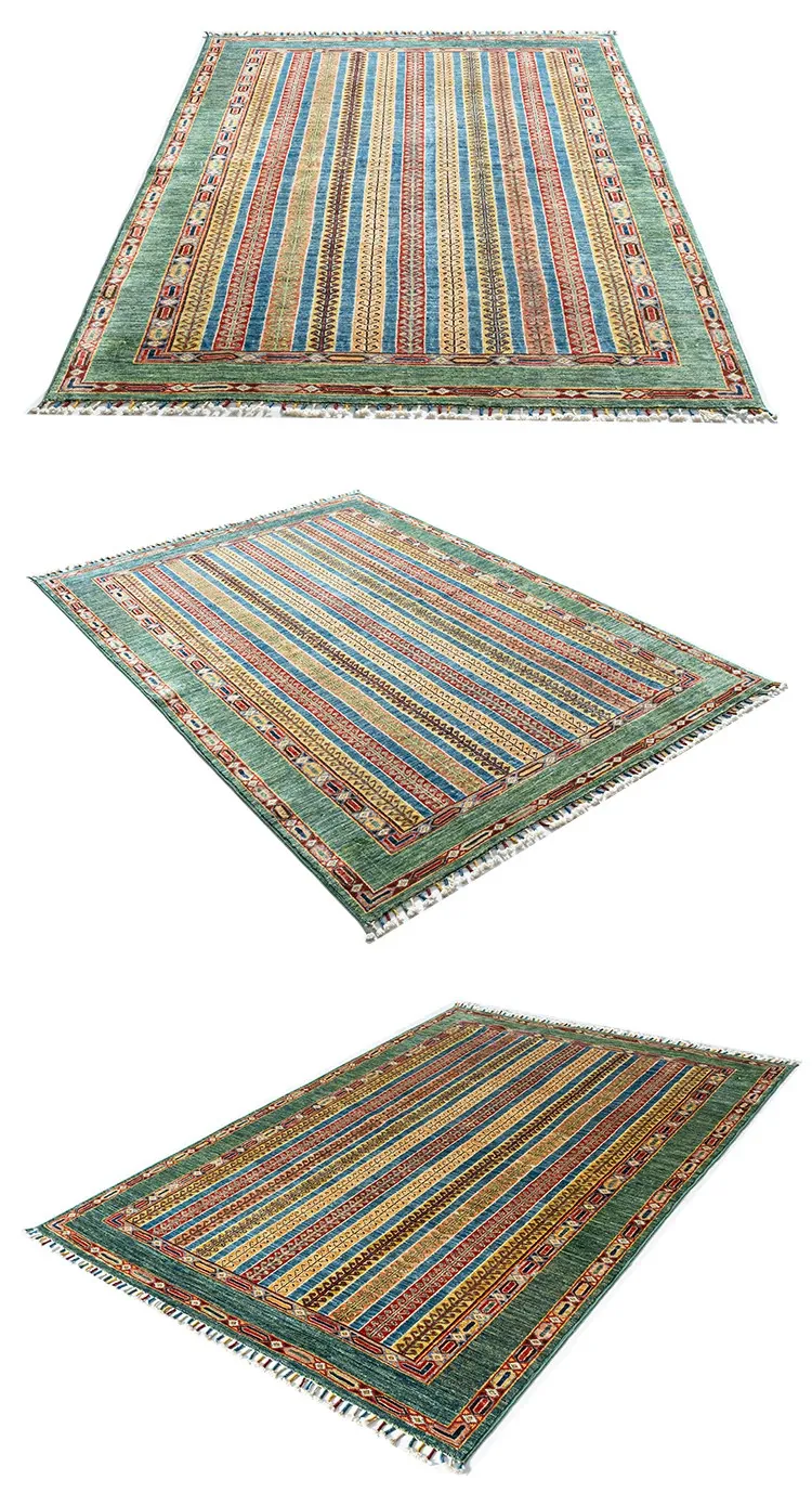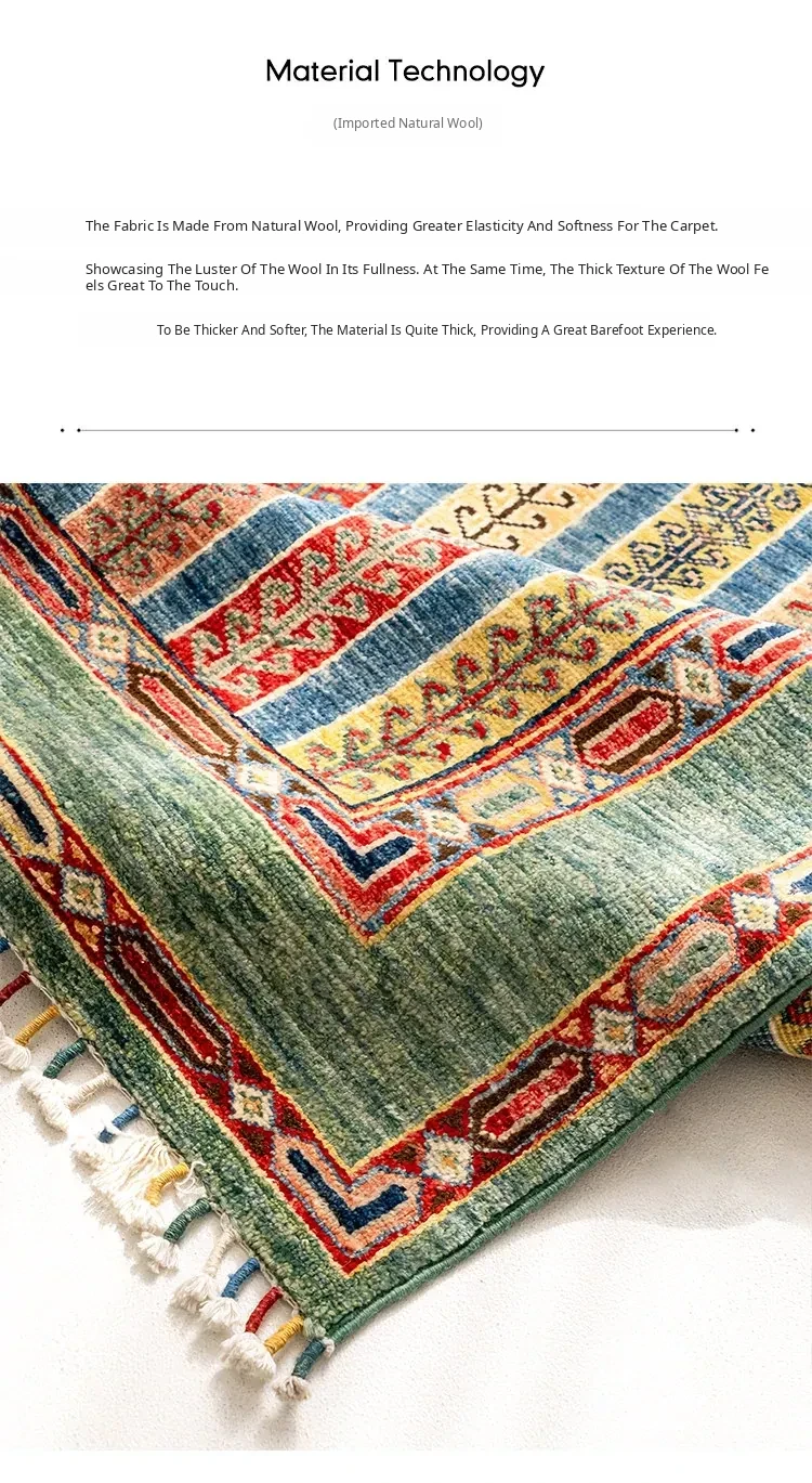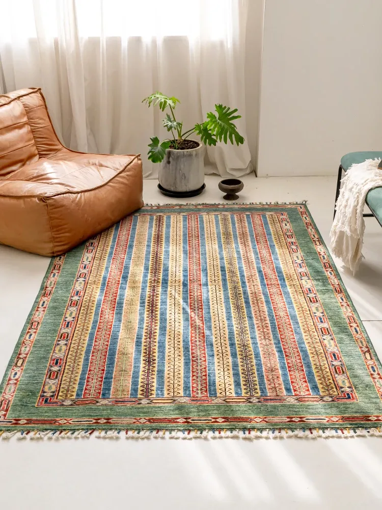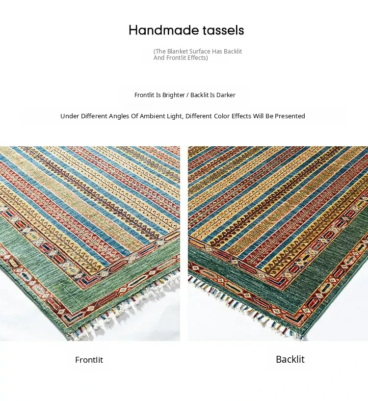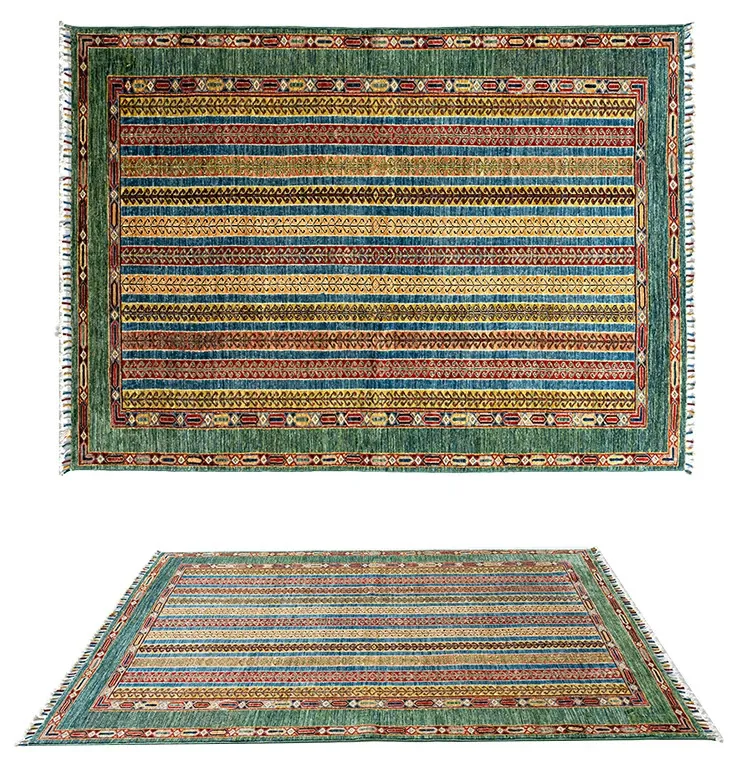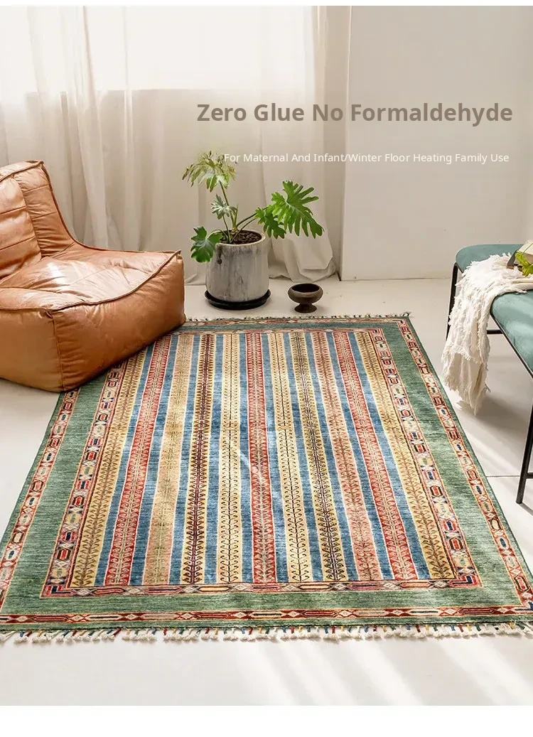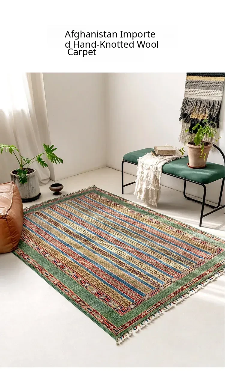 Luxurious Handwoven Afghan Wool Area Rug for Living Room - Eco-Friendly, Glue-Free, and Formaldehyde-Free in Elegant Green Color