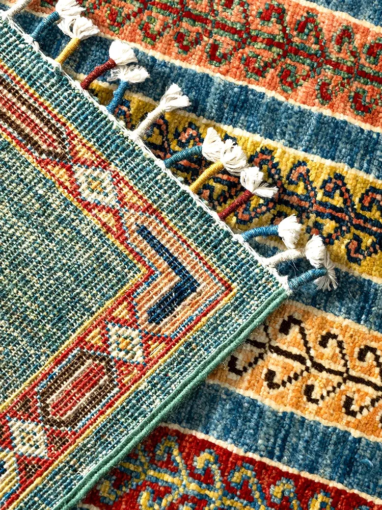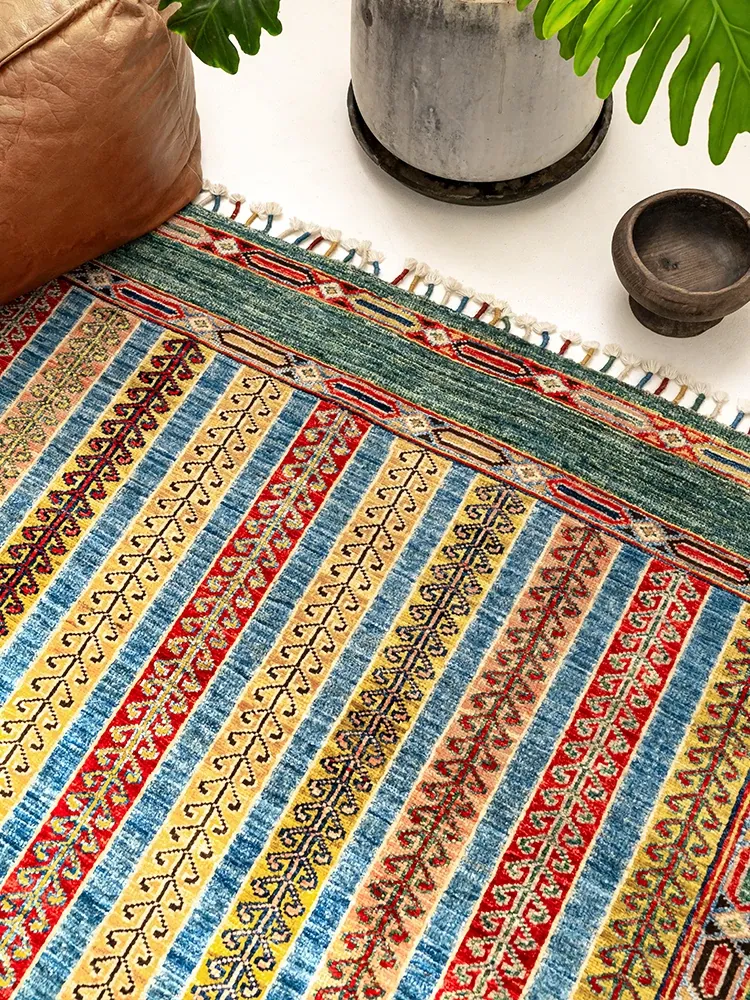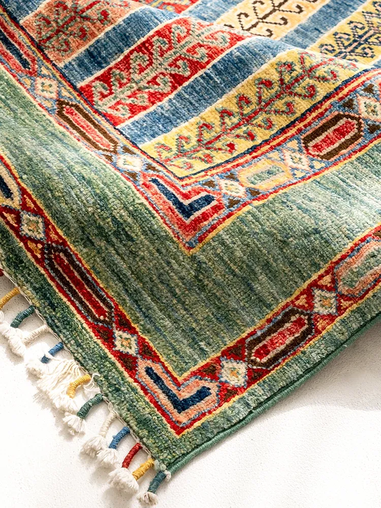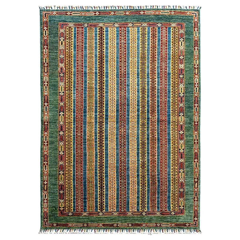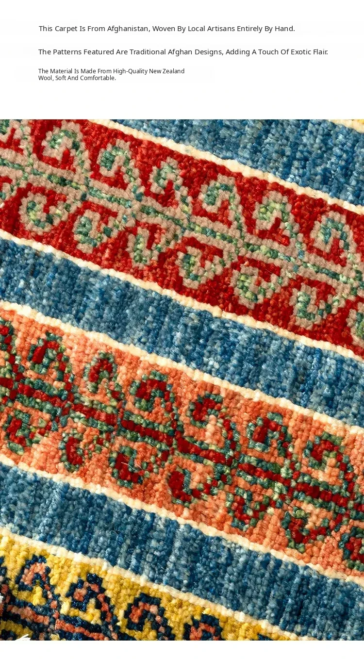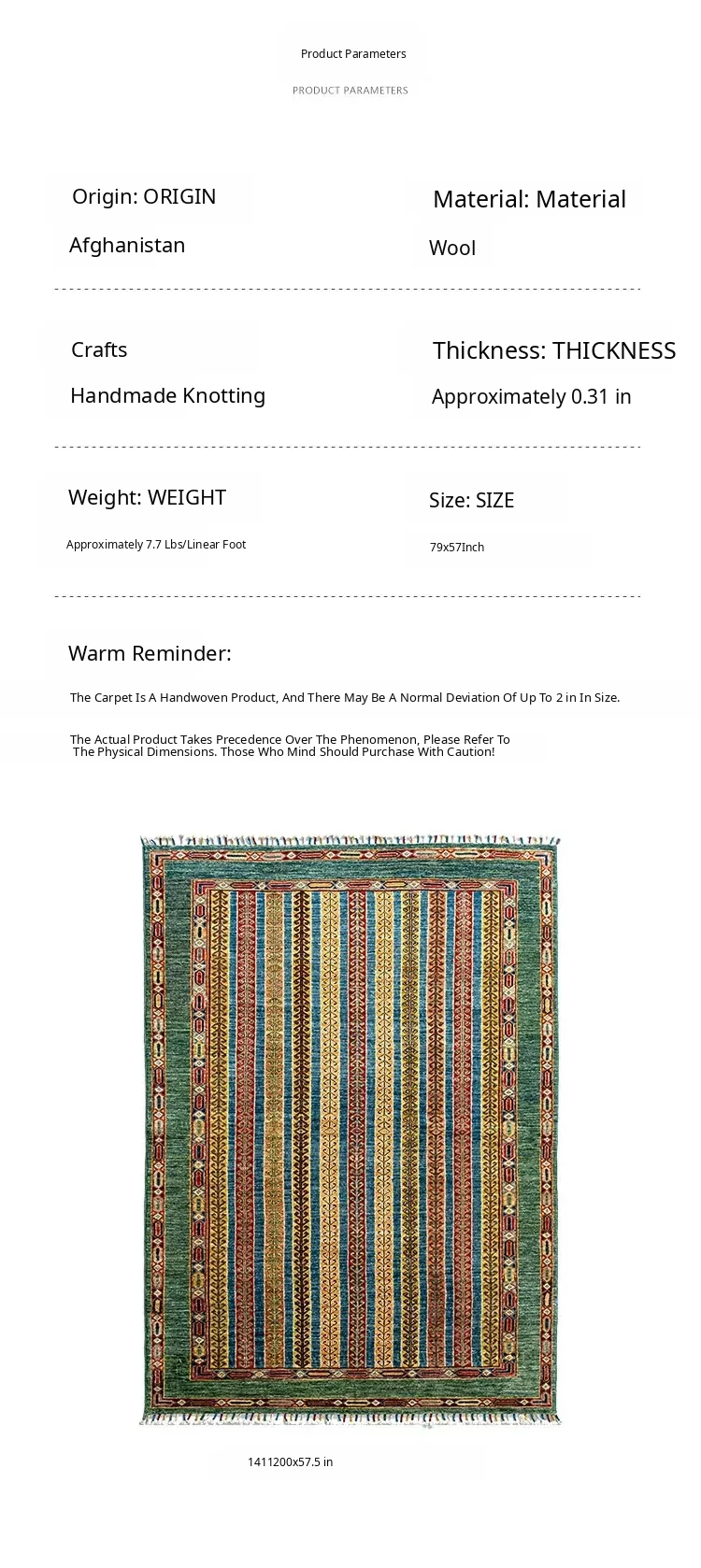 Luxurious Handwoven Afghan Wool Area Rug for Living Room - Eco-Friendly, Glue-Free, and Formaldehyde-Free in Elegant Green Color