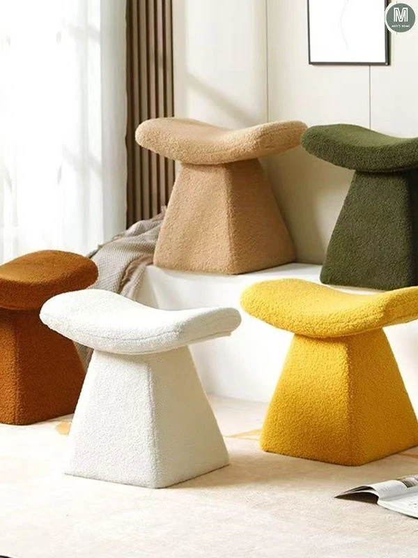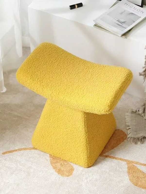 Luxurious Lambswool Vanity Stool - Trendy Makeup Chair for Bedroom, Entryway, or Living Room - Perfect for Dressing Tables and Shoe Changing - Stylish and Comfortable Small Stool