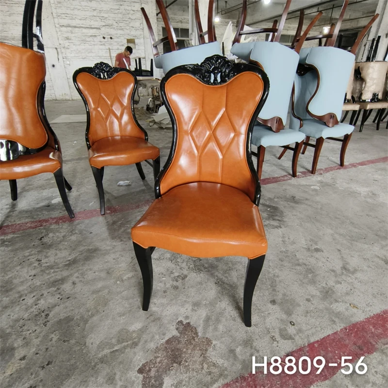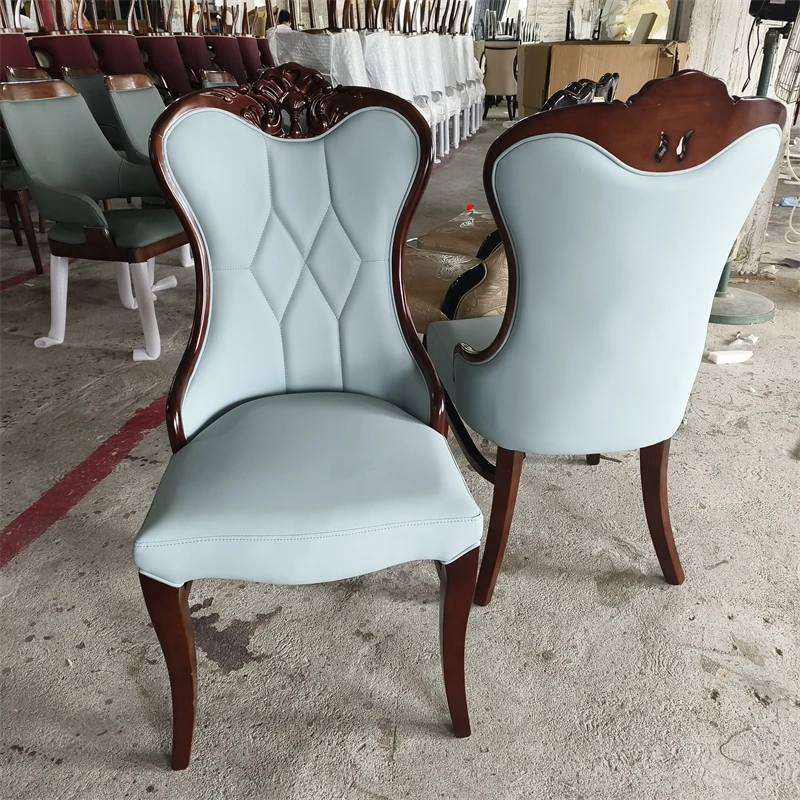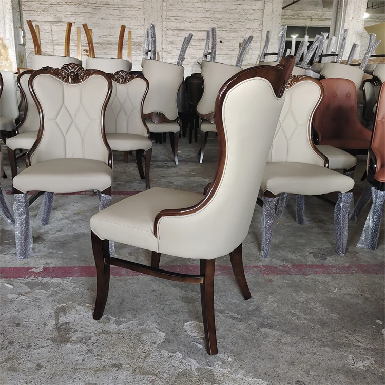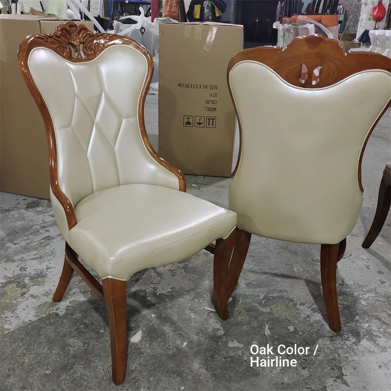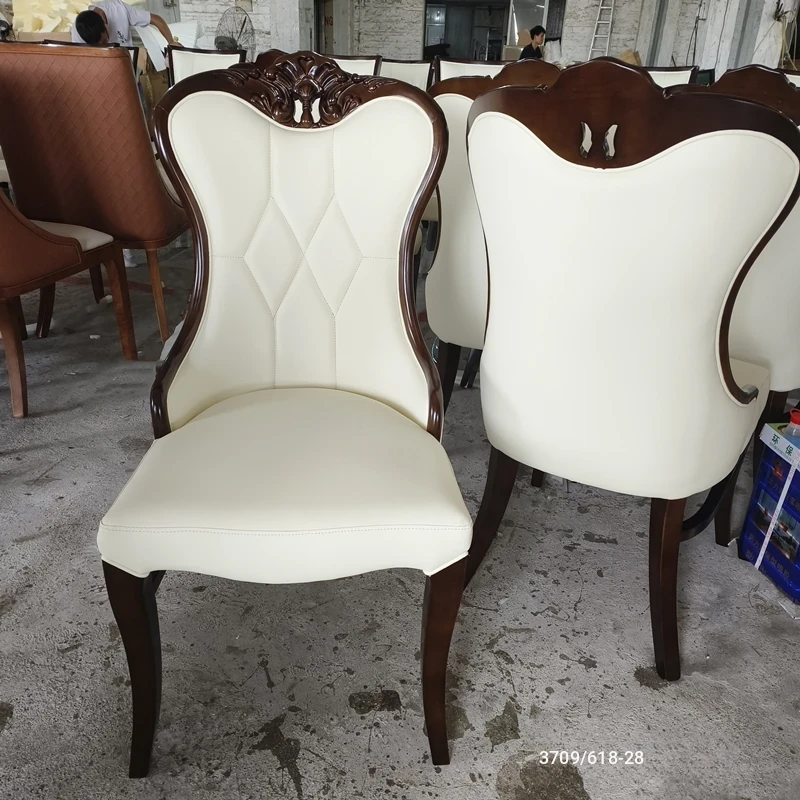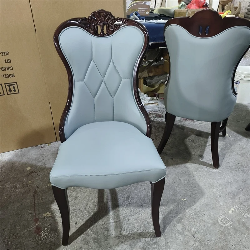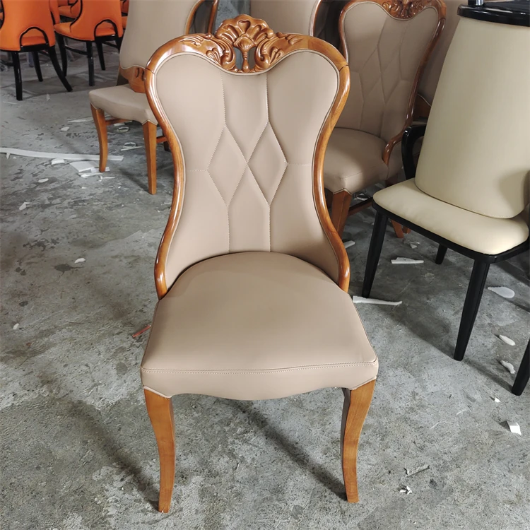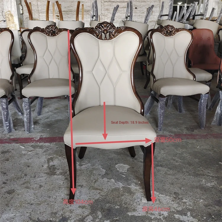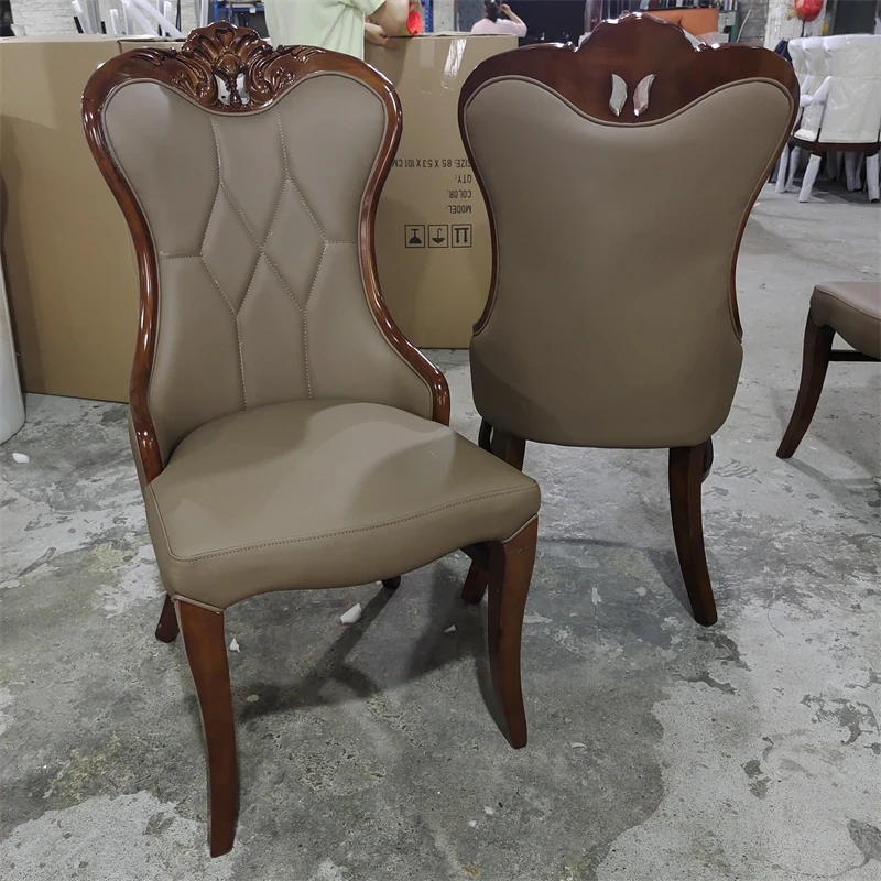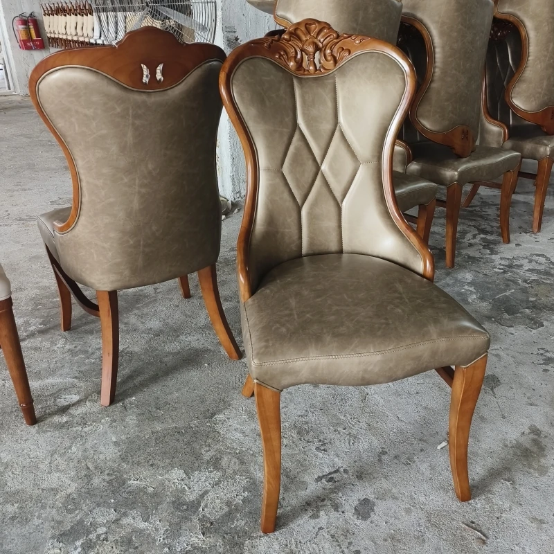 Luxury American-Style Carved Solid Wood Dining Chair with Soft Backrest - Perfect for Home, Hotels, and Restaurants - Durable PU Leather Upholstery for Comfort and Elegance