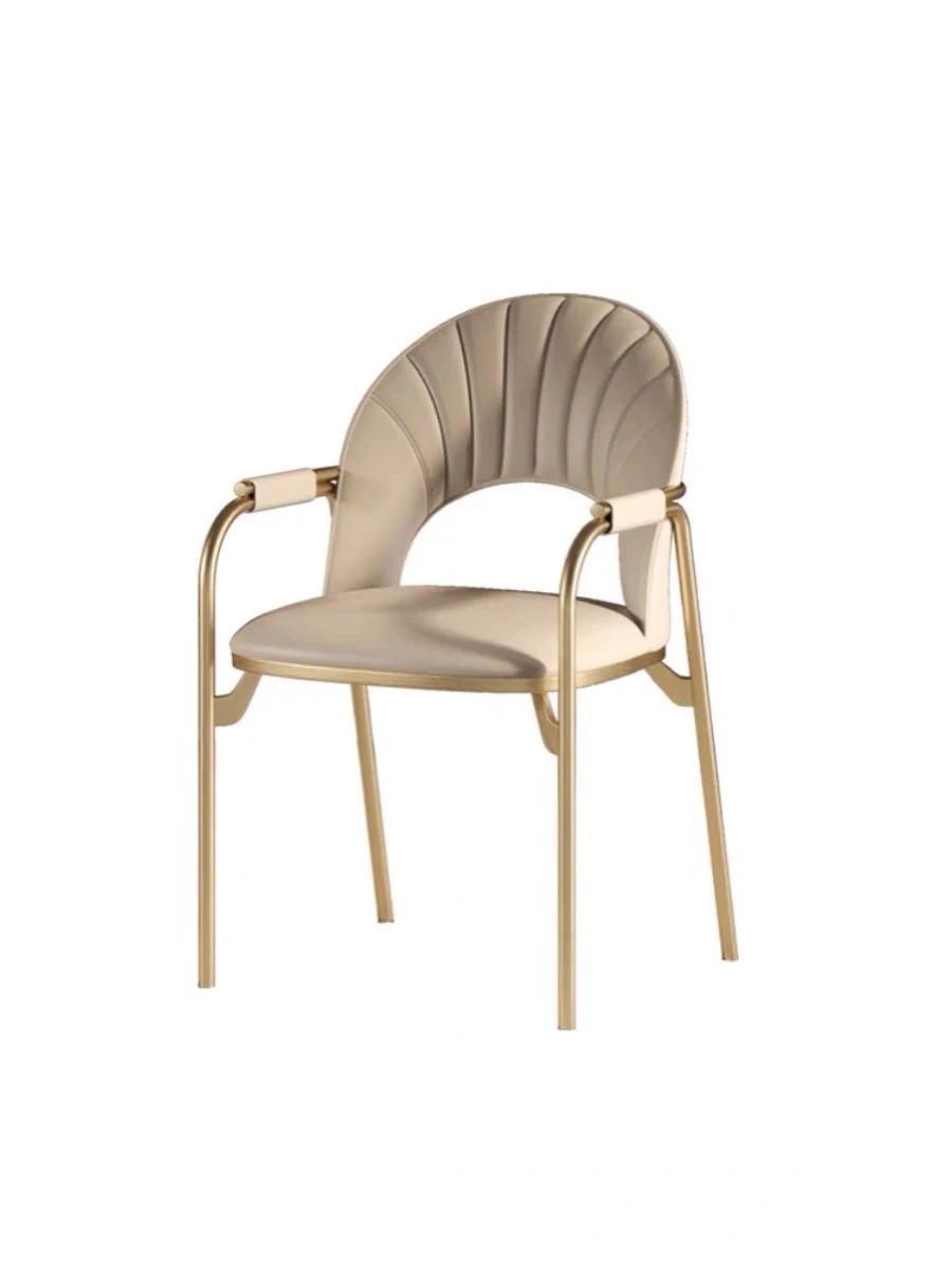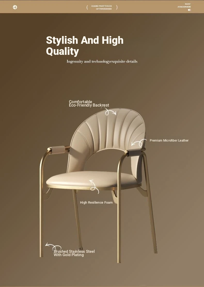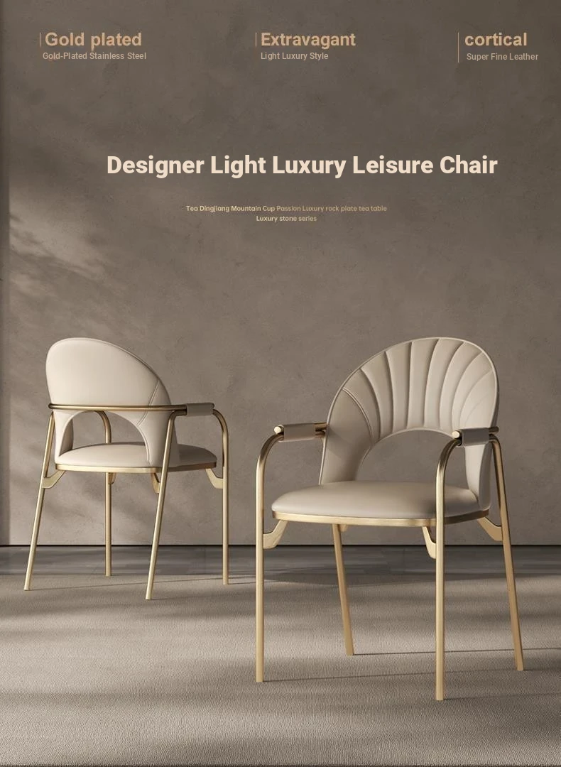Luxury Designer Tea Table Armchair - Elegant Real Leather Tea Chair for Office, Villa, and Dining Room with Stainless Steel Frame and Armrests. Perfect Blend of Comfort and Style!