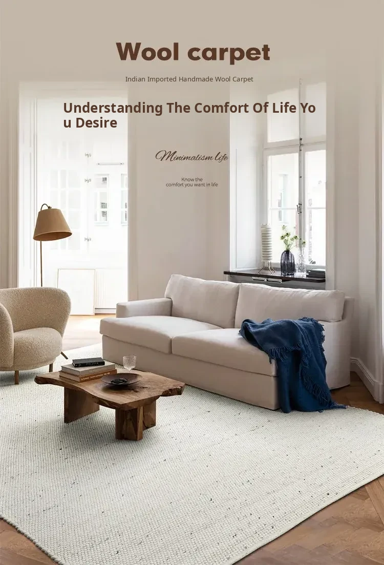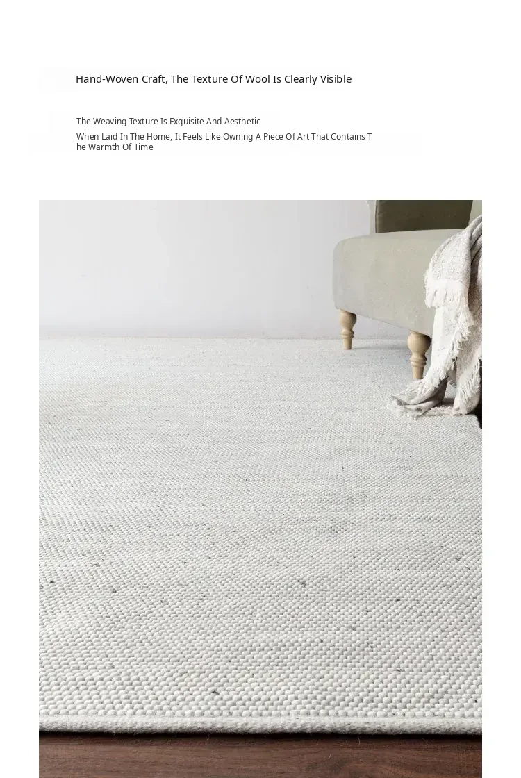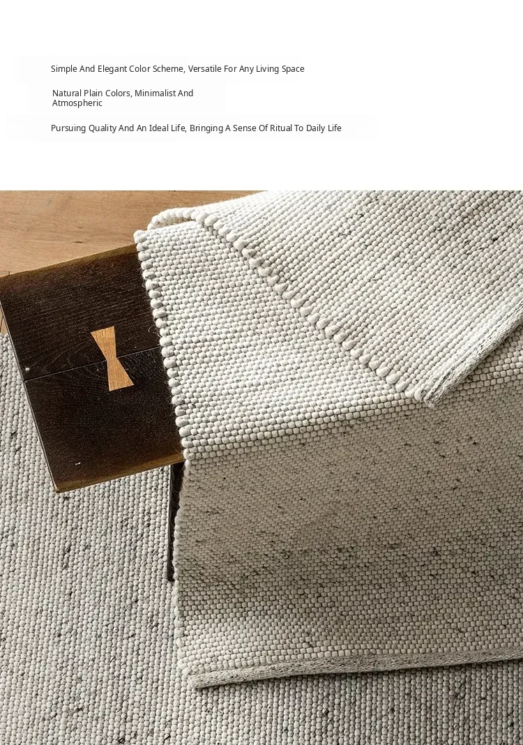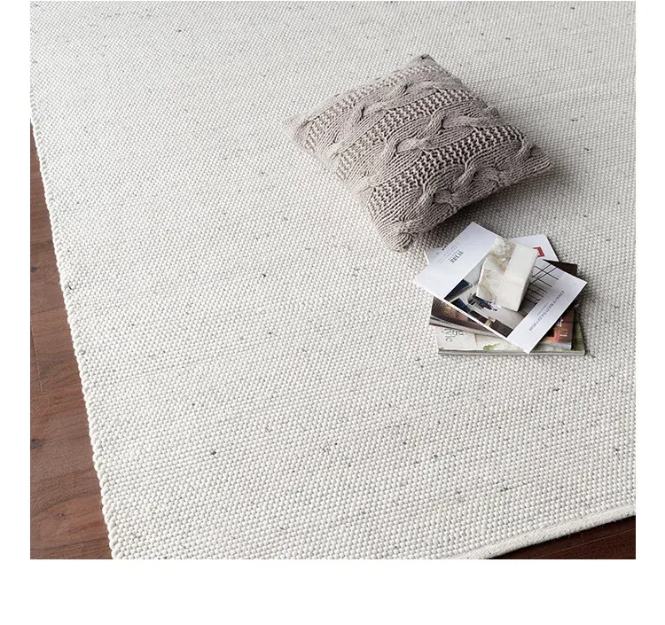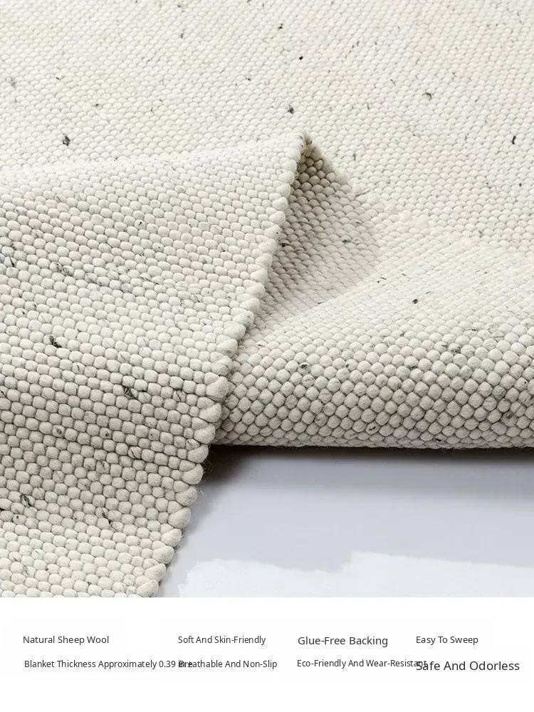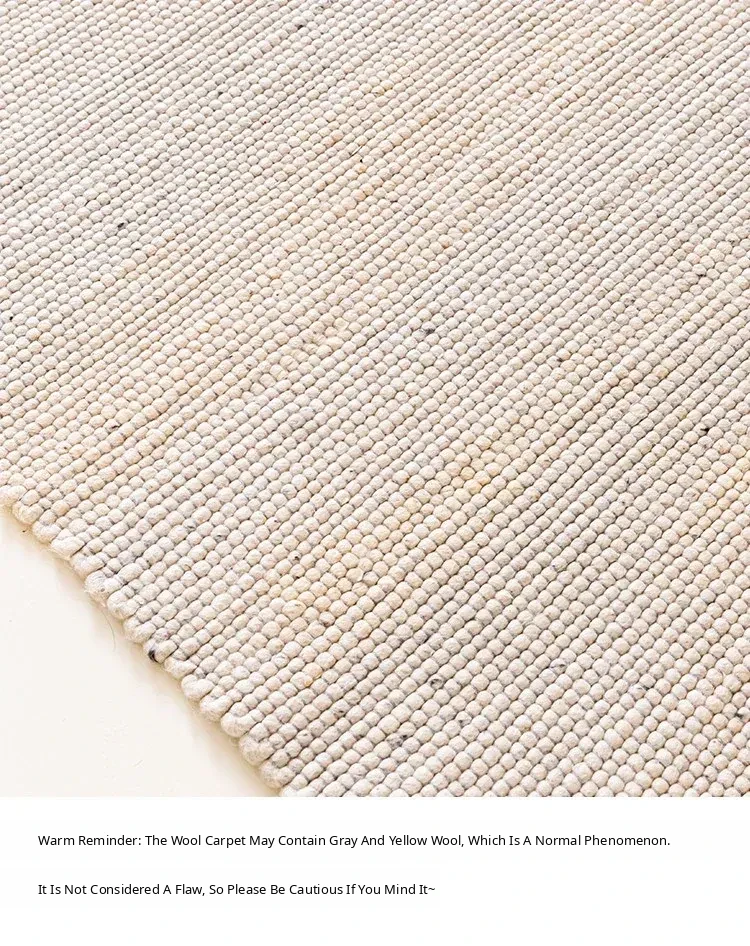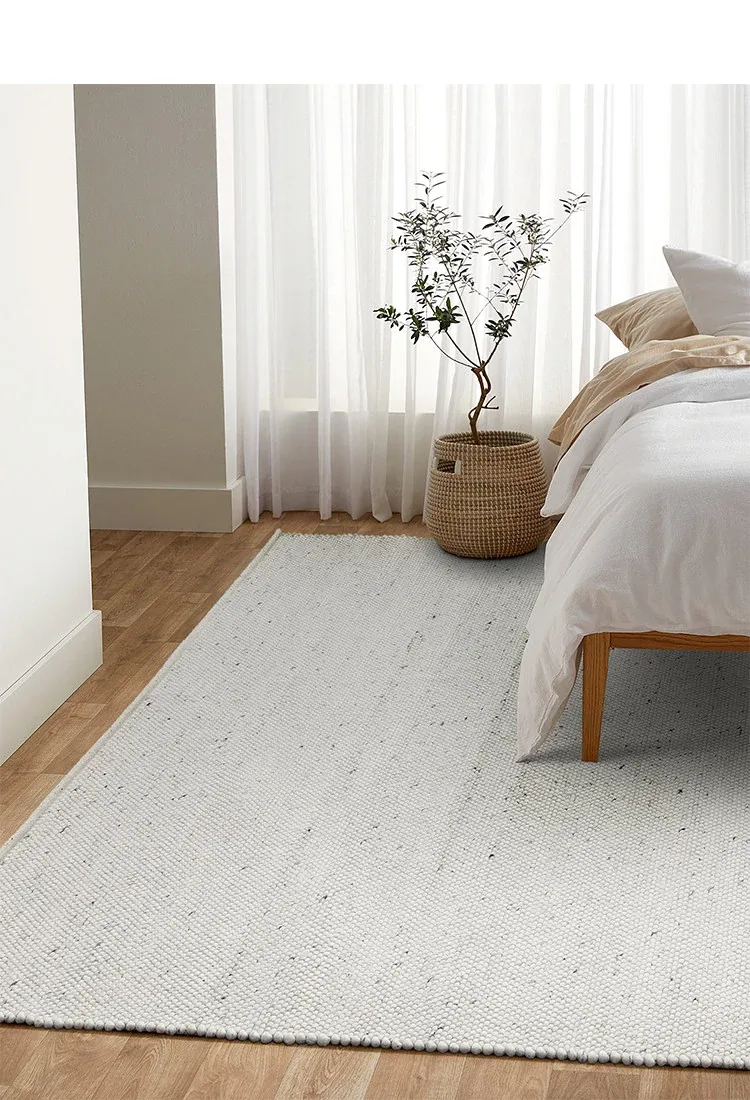 Modern Handmade White Wool Carpet - Japanese Style, No Glue, Creamy Aesthetic for Living Room & Bedroom, Perfect for Cozy Bedside Decor