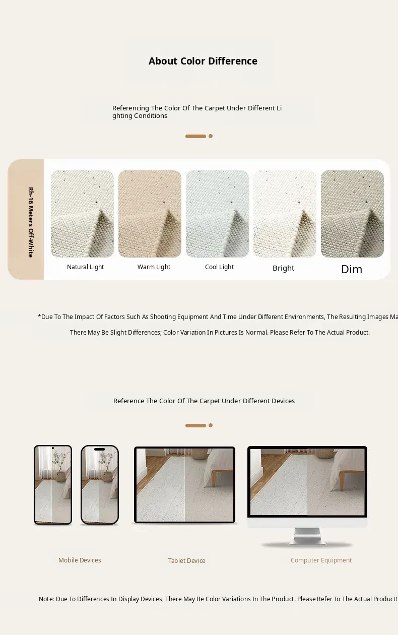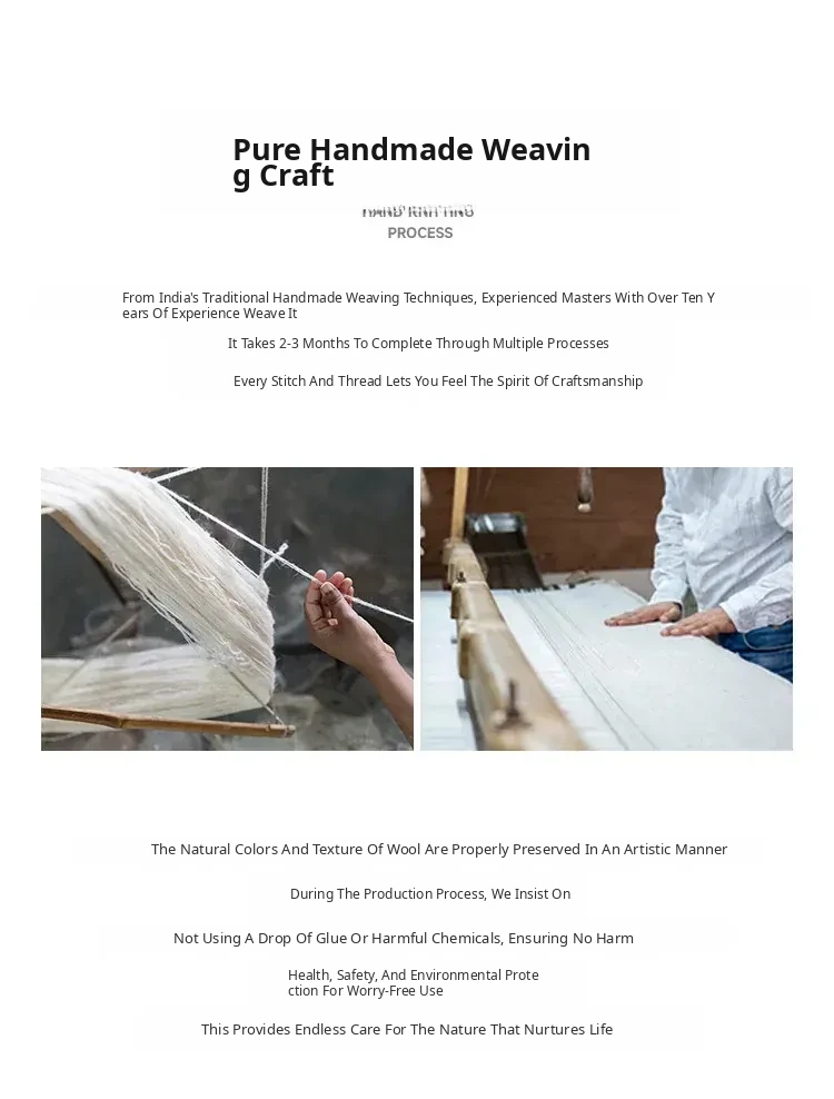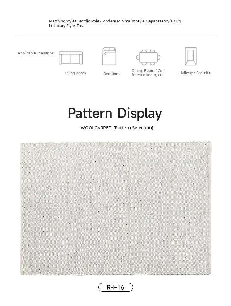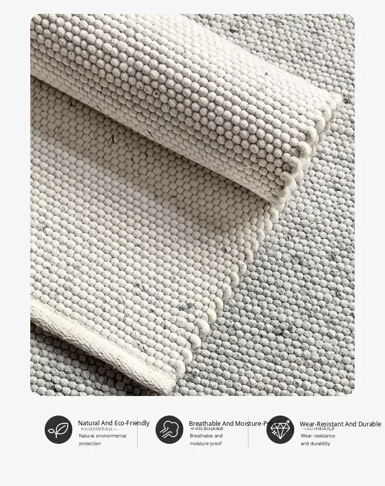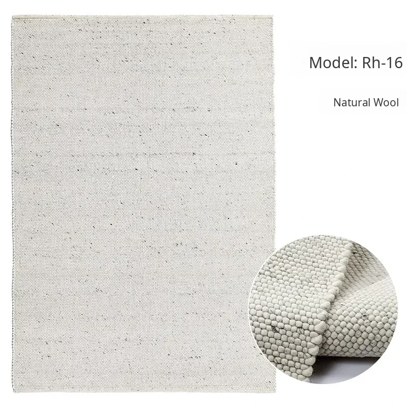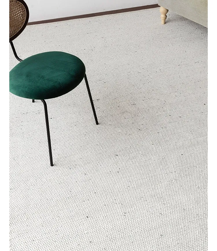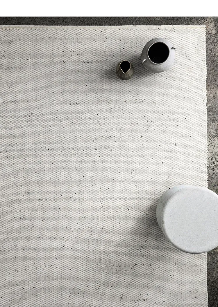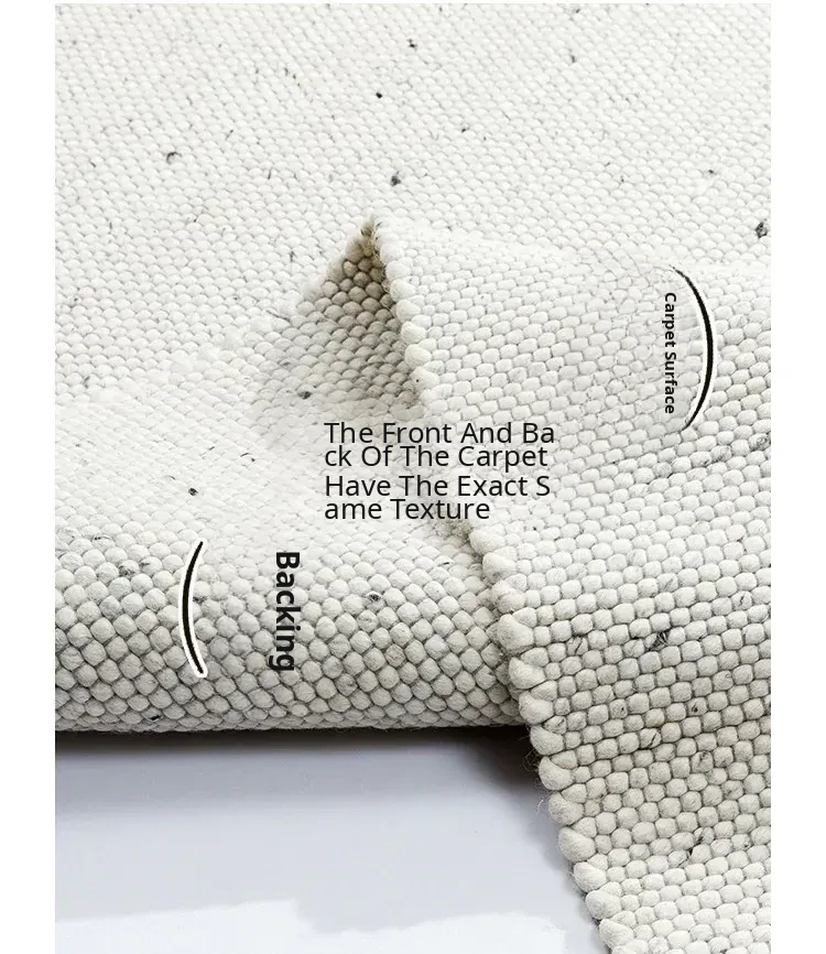 Modern Handmade White Wool Carpet - Japanese Style, No Glue, Creamy Aesthetic for Living Room & Bedroom, Perfect for Cozy Bedside Decor