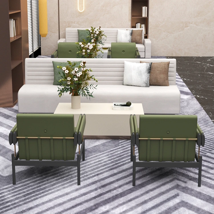 Modern Luxury Double-Sided Backrest Sofa Set with Coffee Table for Real Estate Sales Office - Stylish Lobby Armchair for Hotels and Offices