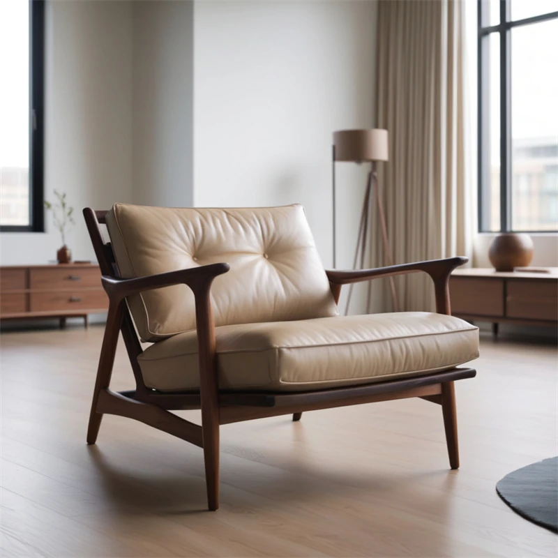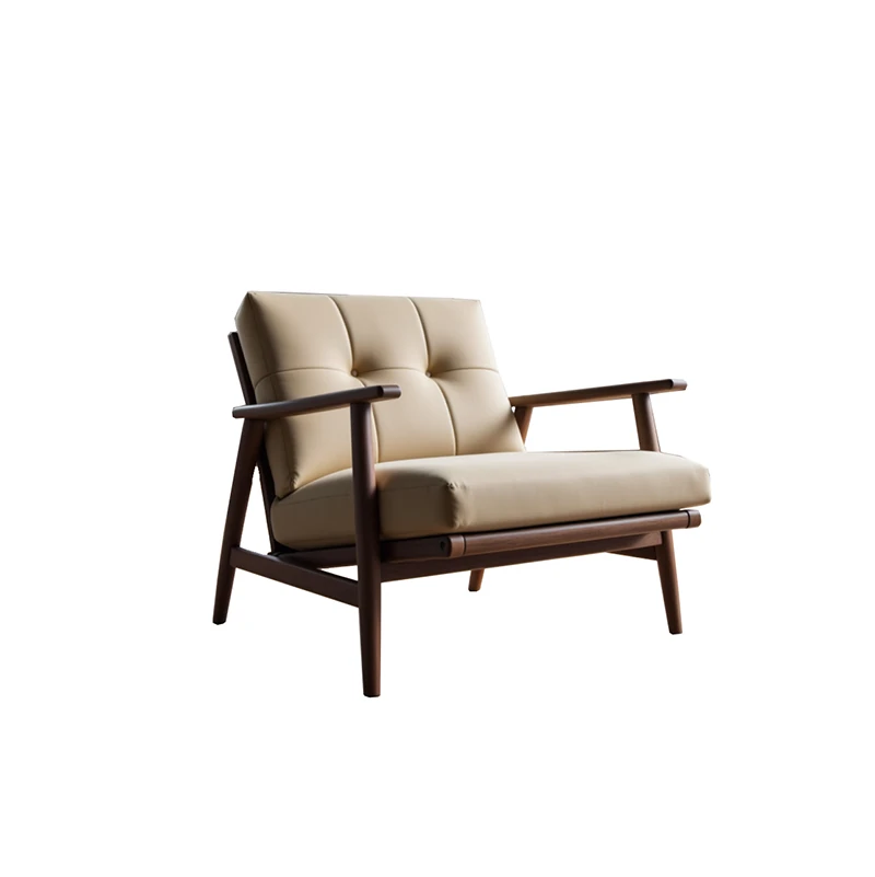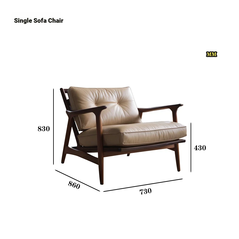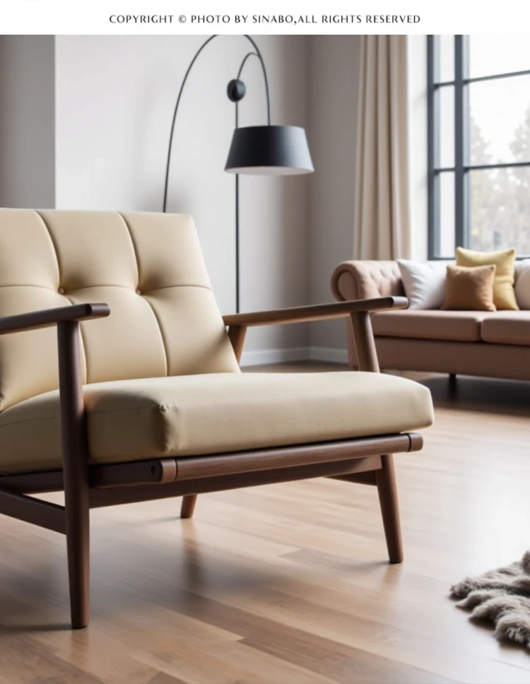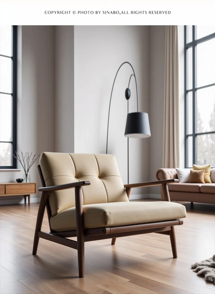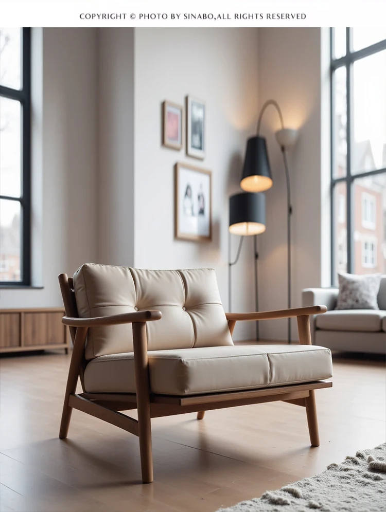 Modern Luxury Genuine Leather Sofa - Single Armchair in North American Ash Wood, Solid Wood for Living Room and Balcony Reception