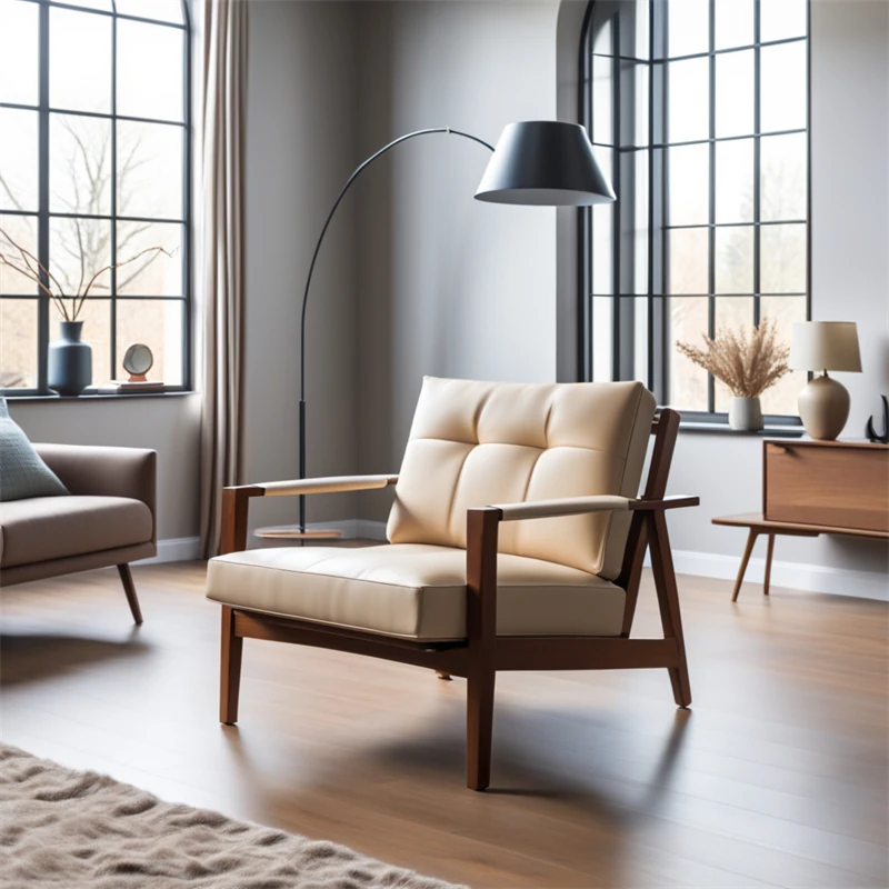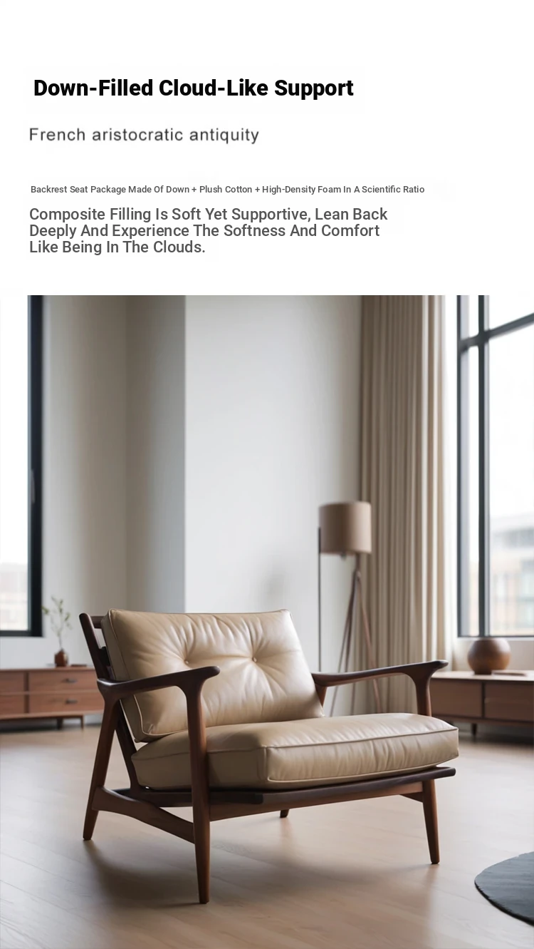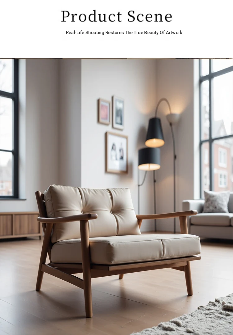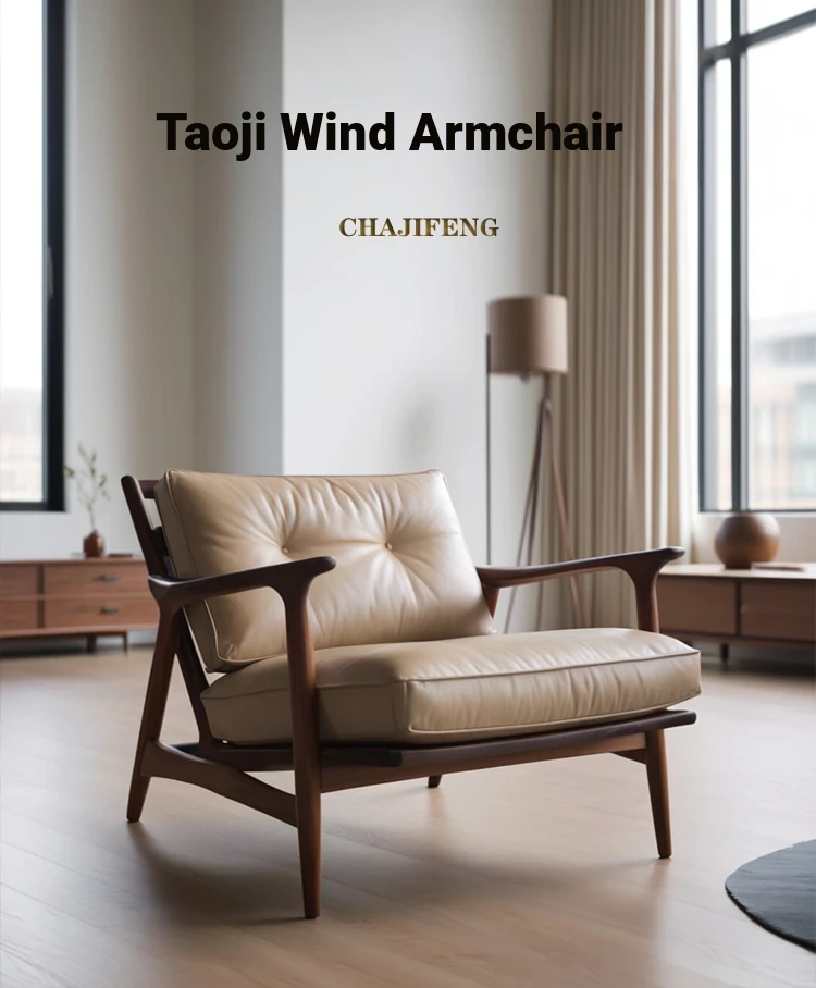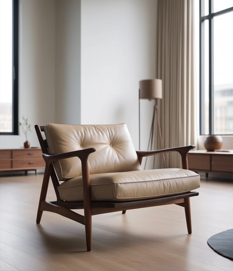 Modern Luxury Genuine Leather Sofa - Single Armchair in North American Ash Wood, Solid Wood for Living Room and Balcony Reception