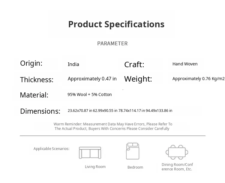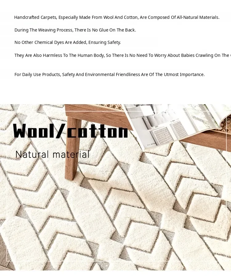 Modern Luxury Imported Wool Area Rug - Handwoven Premium Carpet for Living Room, Coffee Table, Sofa, Bedroom, and Bedside Decor.