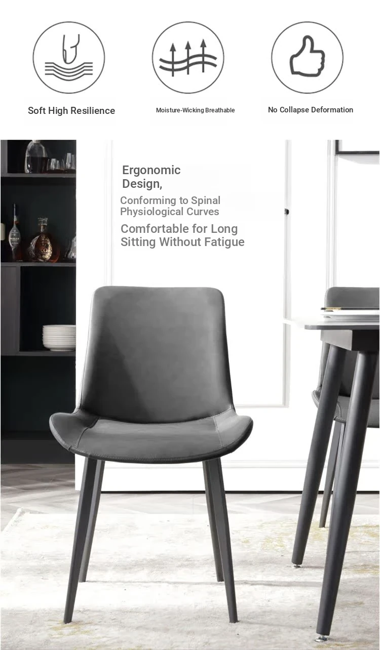 Modern Minimalist Dining Chair - Stylish Home and Restaurant Stool with Backrest, Designer Recommended for Hotels and Cafés, Affordable Leather Seat