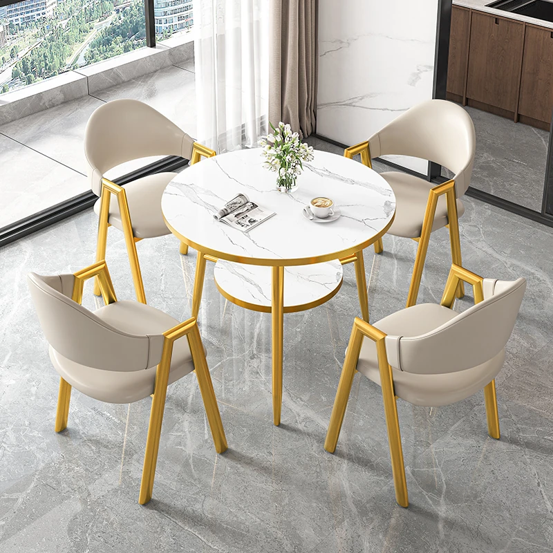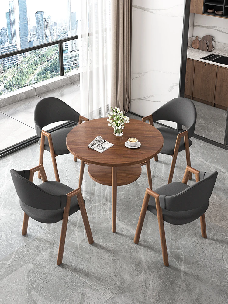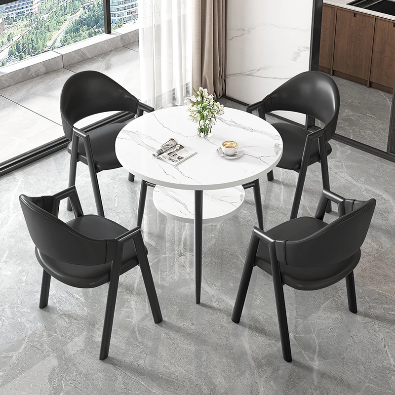 Modern Minimalist Leisure Reception Table and Chair Set - Perfect for Coffee Shops, Milk Tea Shops, Apartments, and Balconies. Compact Round Dining Table for Cozy Gatherings.