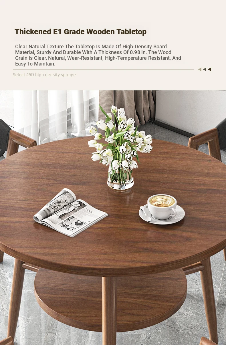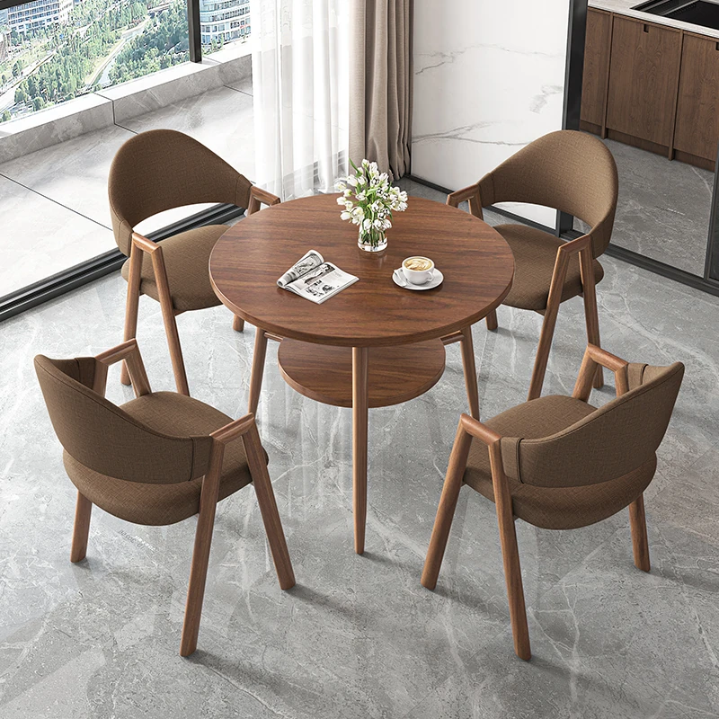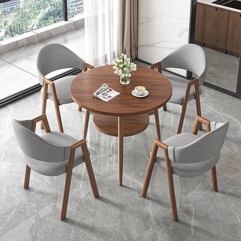 80 Round Table +4 Khaki Chair-Walnut Foot