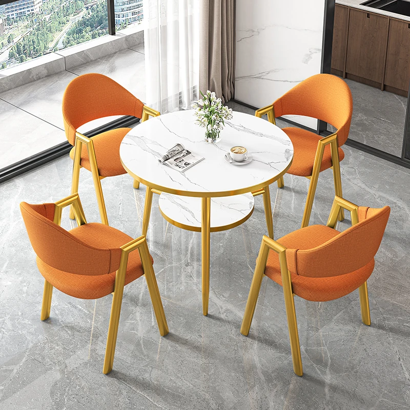 80 Round Table +4 Orange Cloth Chair-Golden Feet