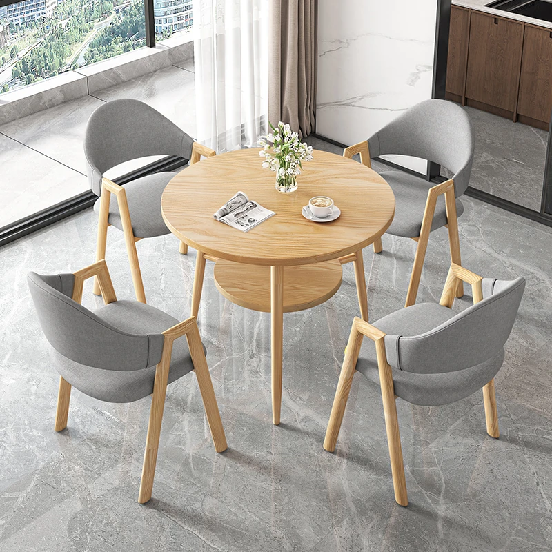 80 Round Table +4 light gray Cloth Chair-Log Color Feet