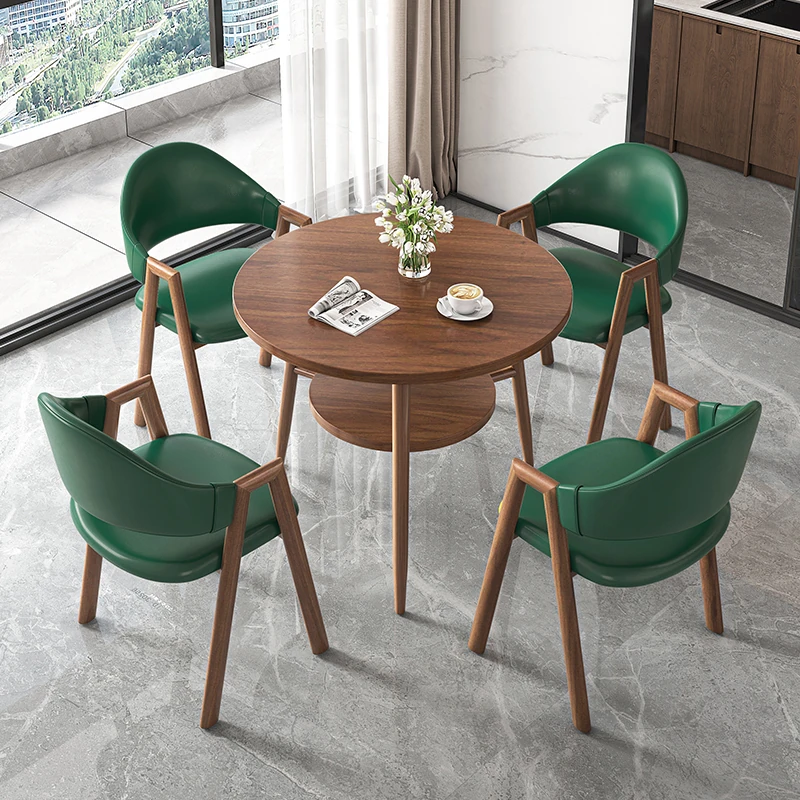 80 Round Table +4 Bean Green Leather Chair-Walnut Foot