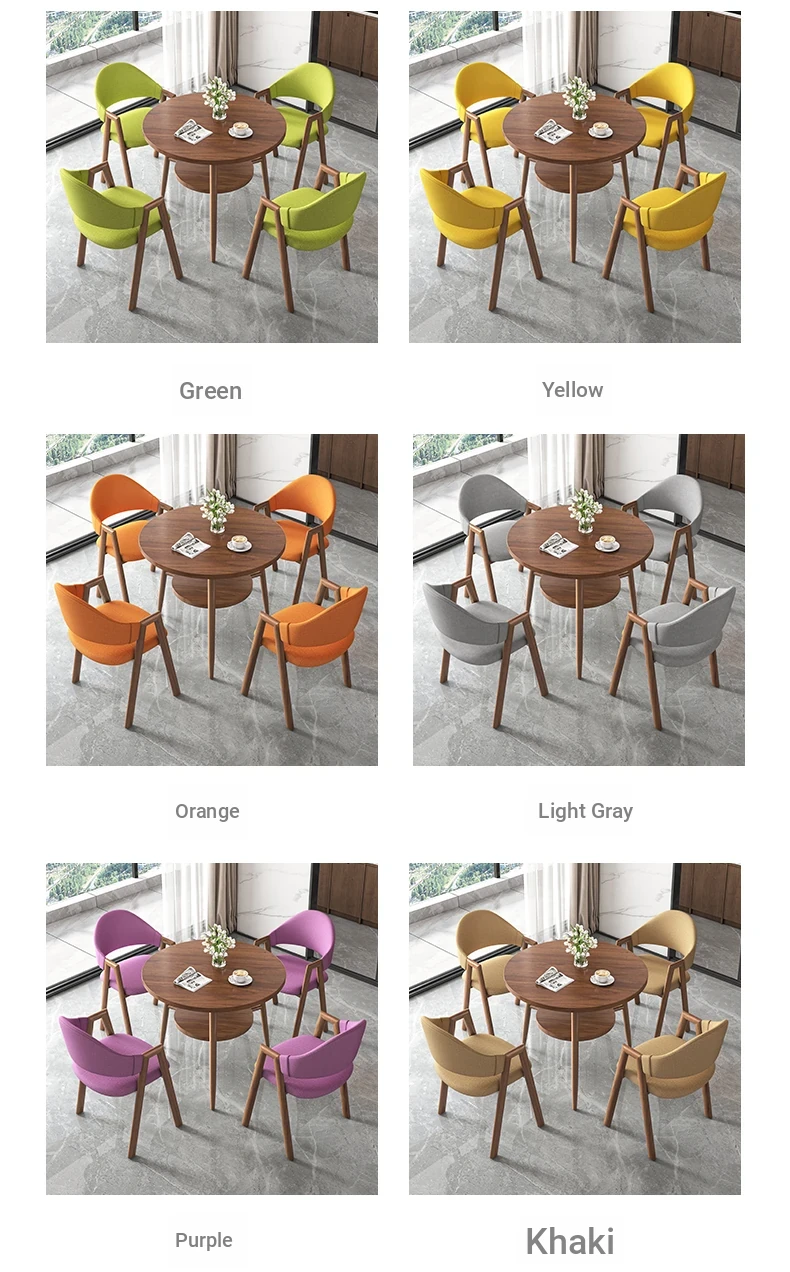 80 Round Table +4 Yellow Cloth Chair-Log Color Foot