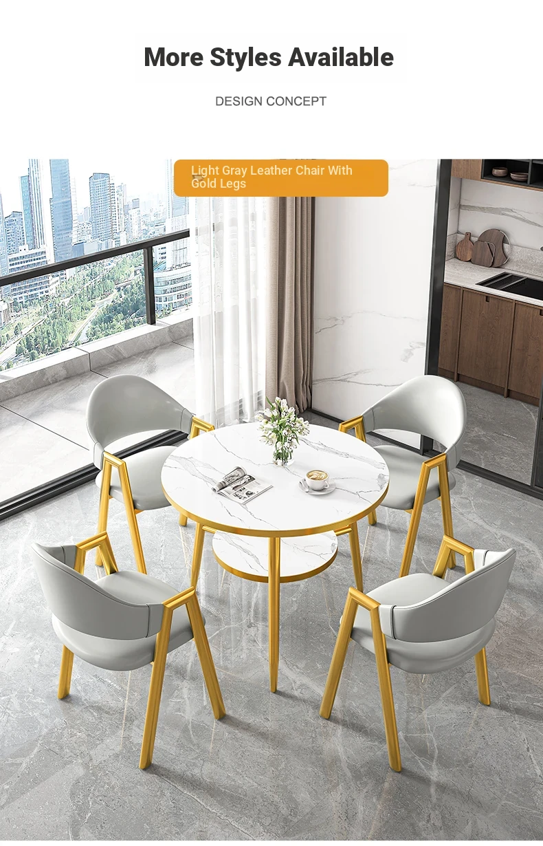 80 Round Table +4 light gray Leather Chair-Gold Feet