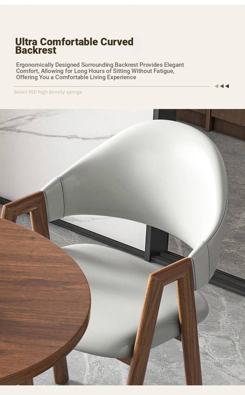 80 Round Table +4 White Leather Chair-Walnut Foot