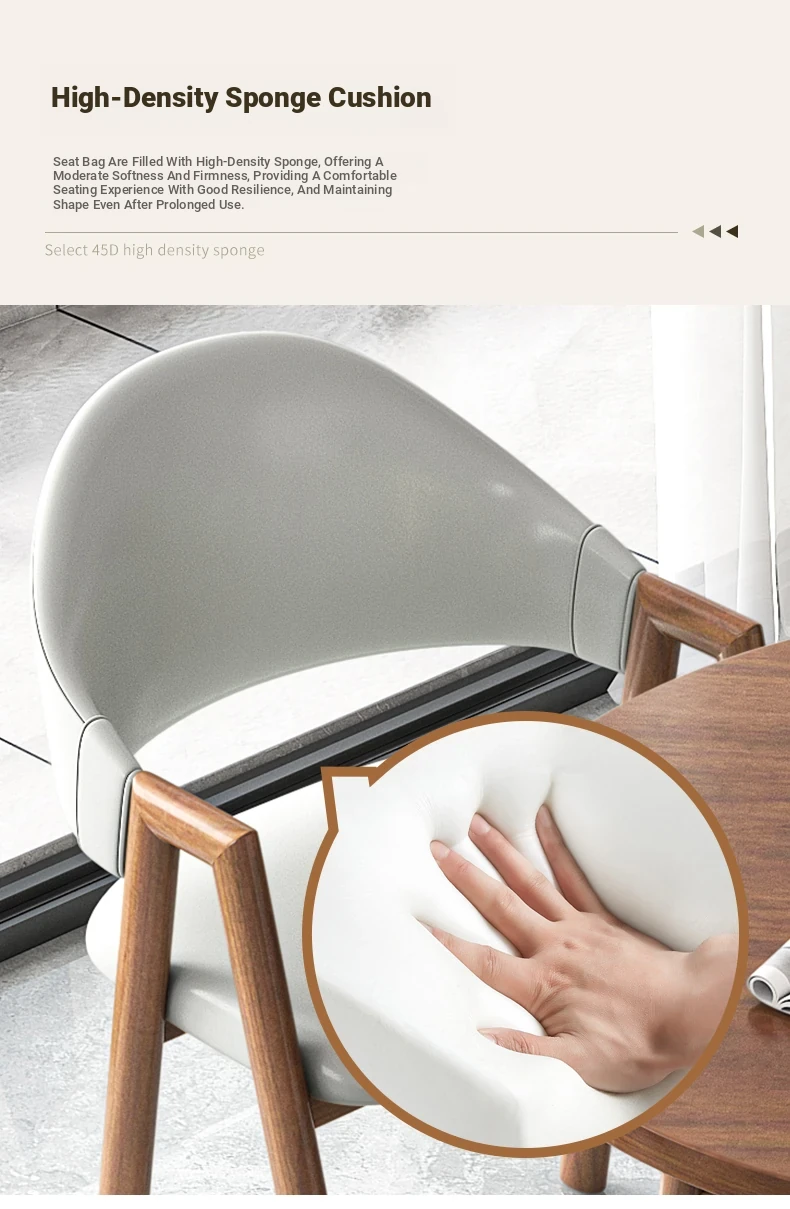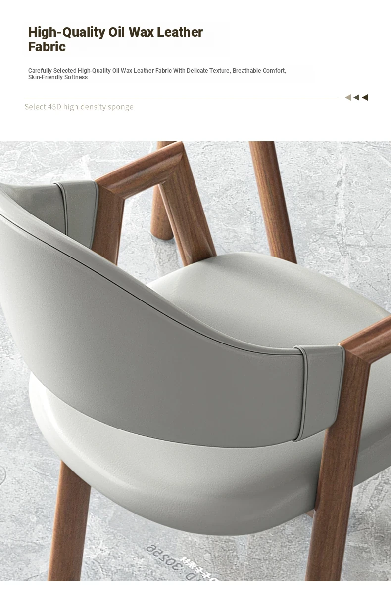 80 Round Table +4 light gray Leather Chair-Walnut Foot