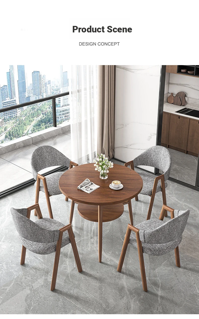 80 Round Table +4 dark gray Cloth Chair-Walnut Foot