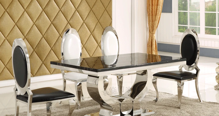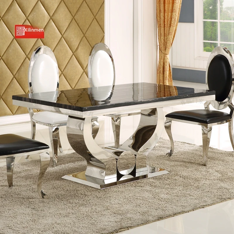Modern Minimalist Marble Dining Table Set for 4-6 People - Rectangular Design, Perfect for Home and Hotel Use, Nordic Style with Durable Stainless Steel Frame