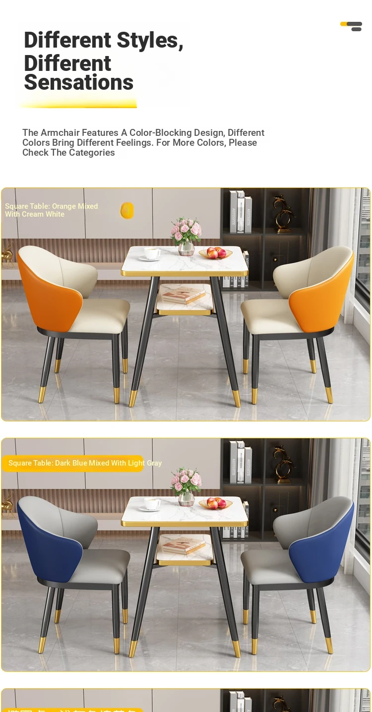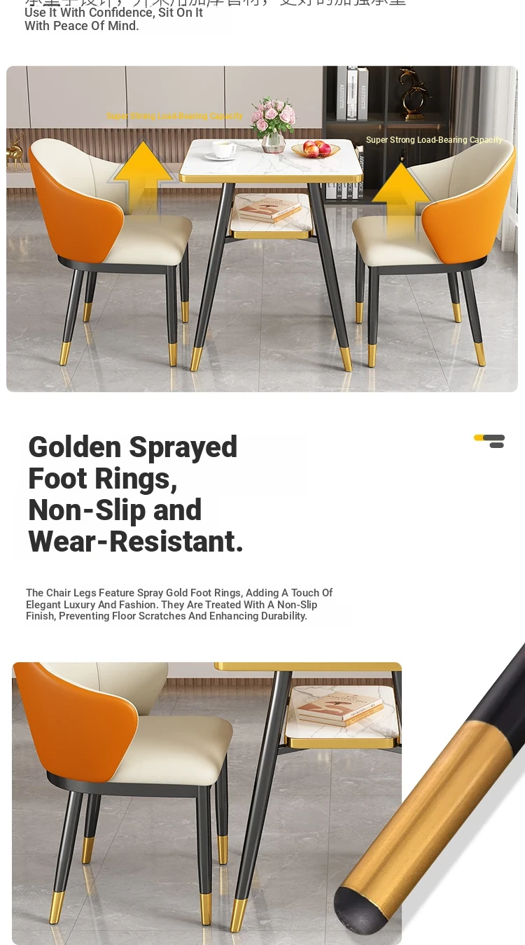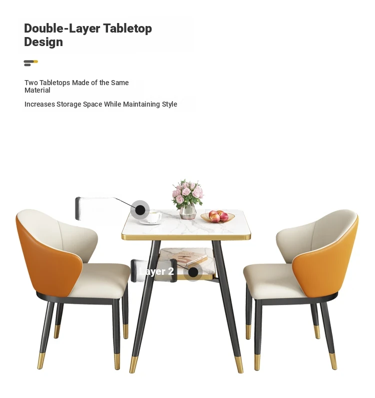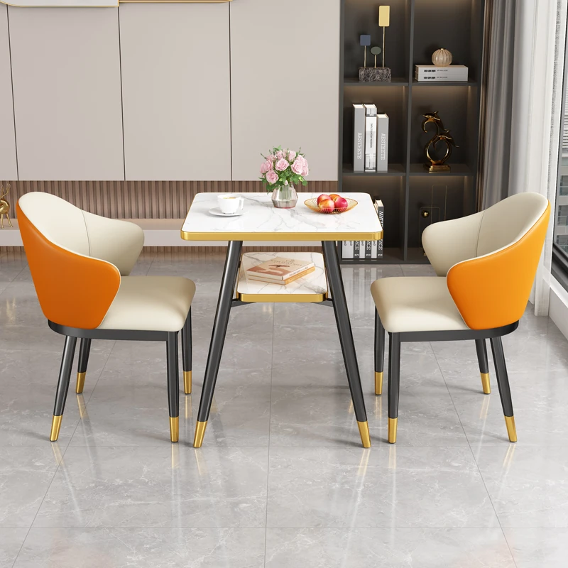 Orange Beige 80 Rock Plate Square Table +2 Leather Chair