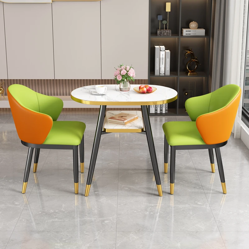Green Orange 80x 60 imitation marble oval table +2 leather chair