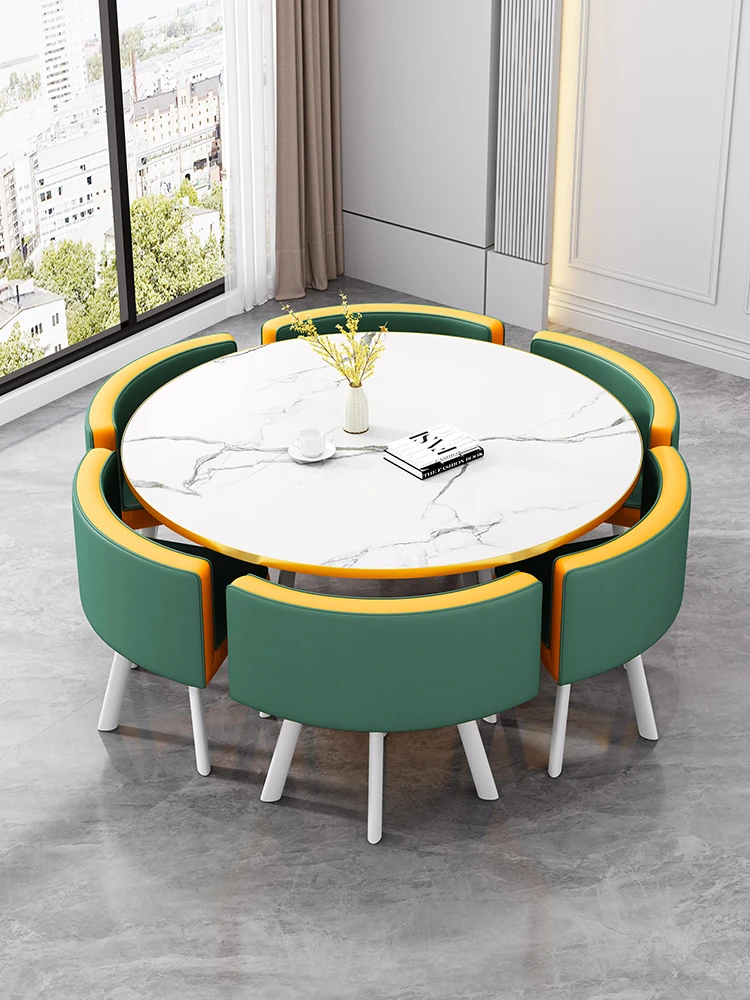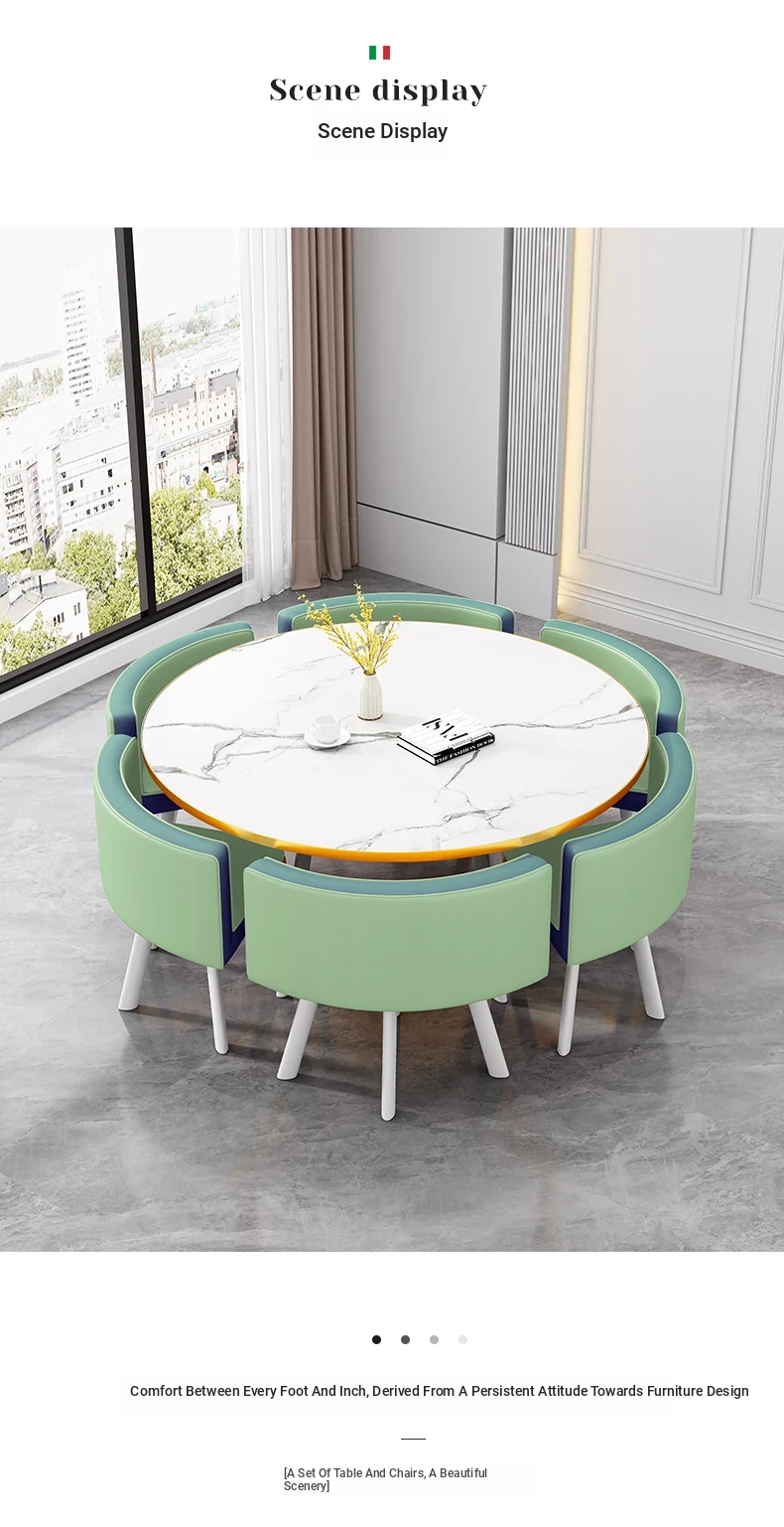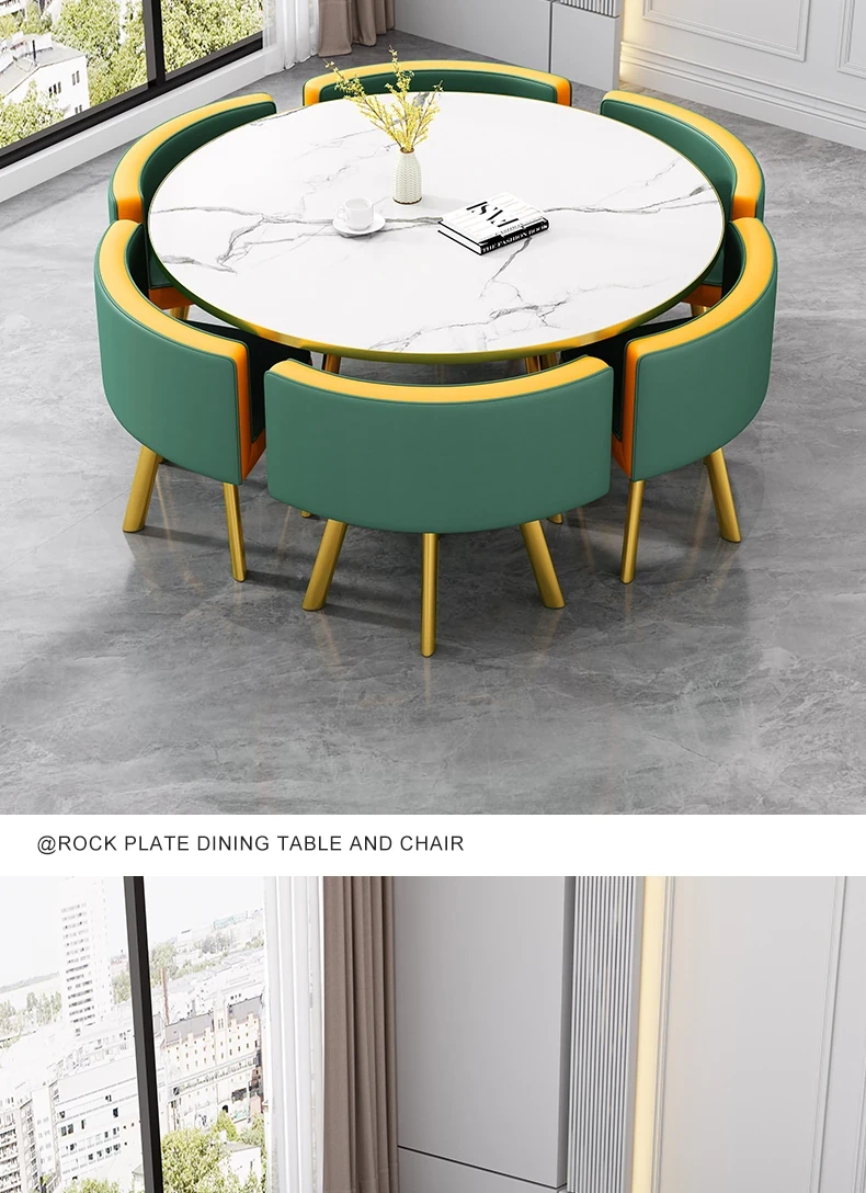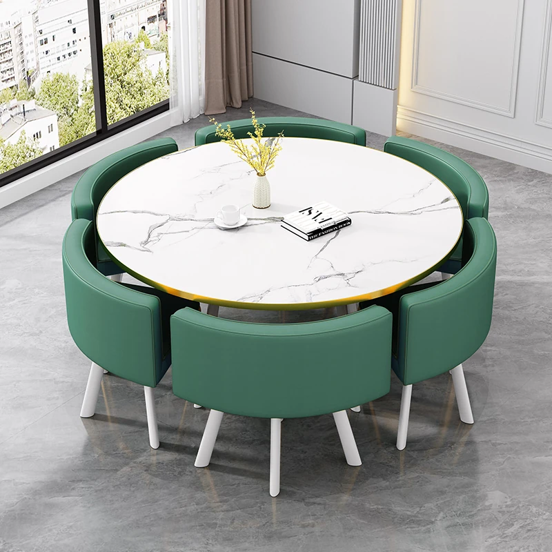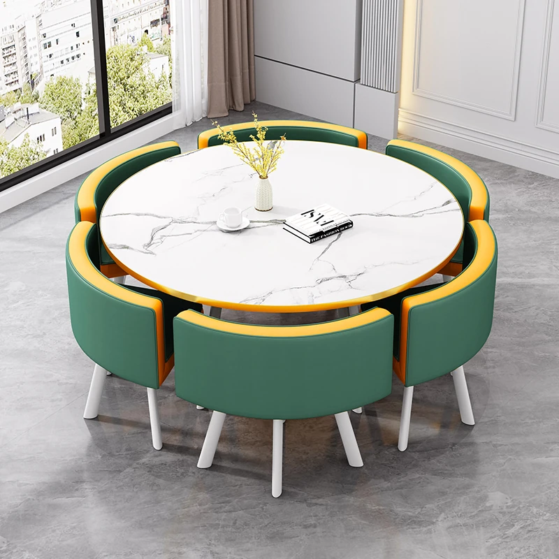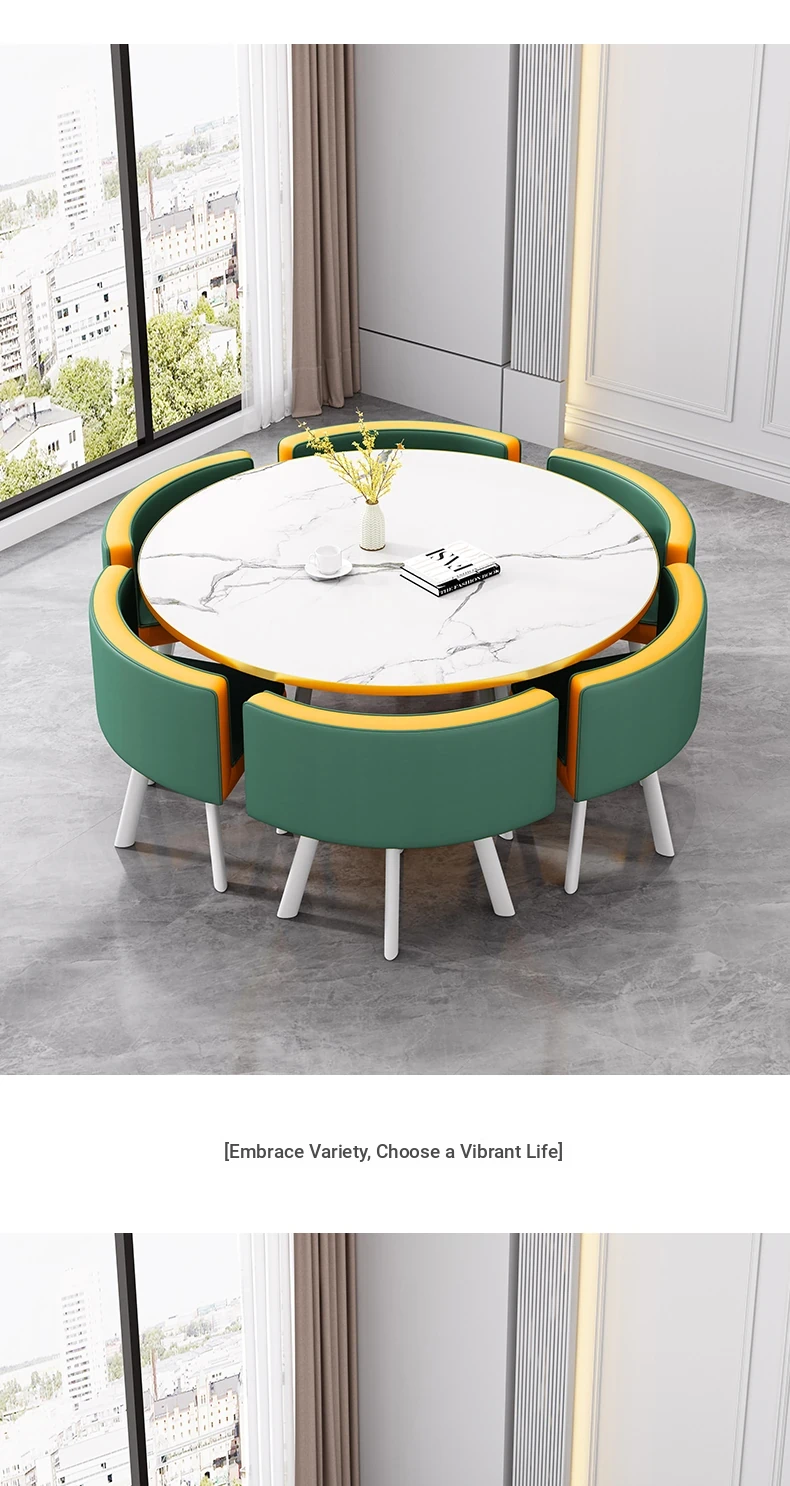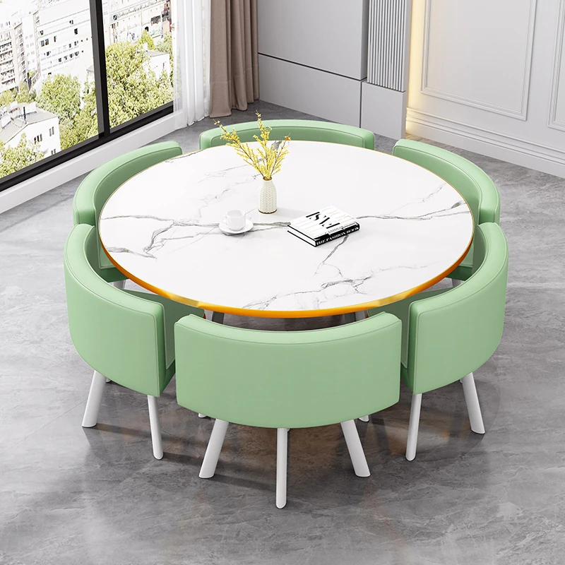 Fluorescent green white 47.24in table +6 nappa leather chair