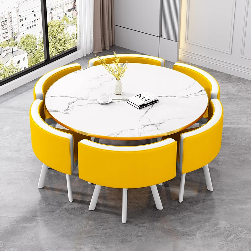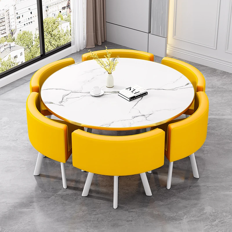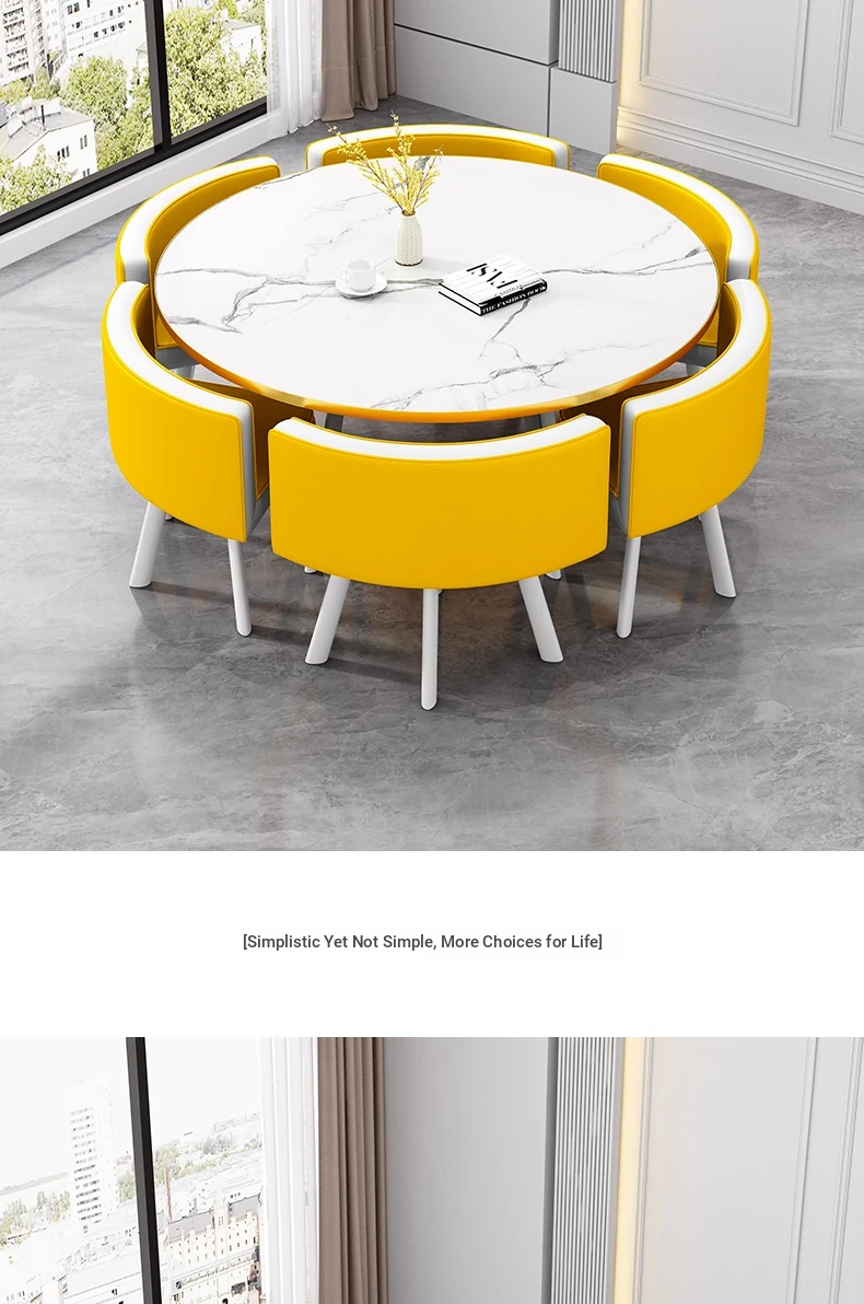 Light gray spell yellow 47.24in table +6 nappa leather chair