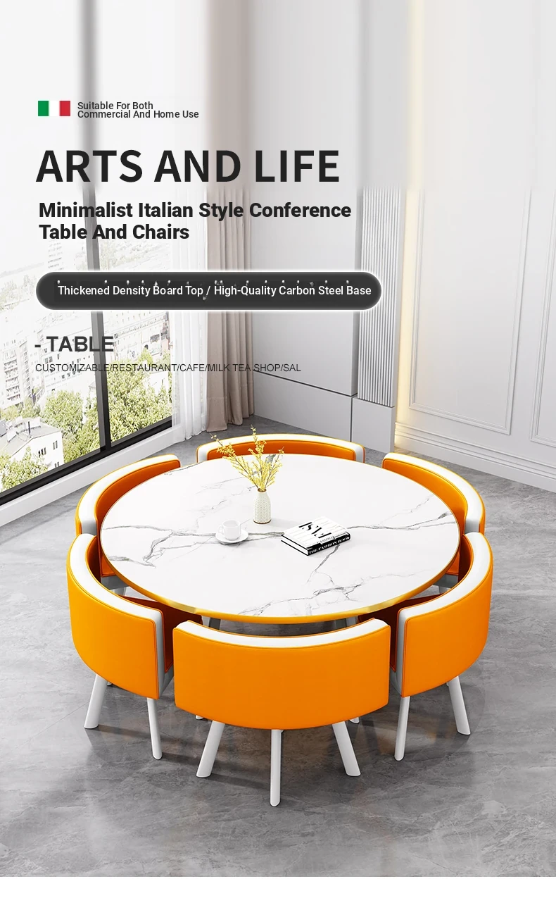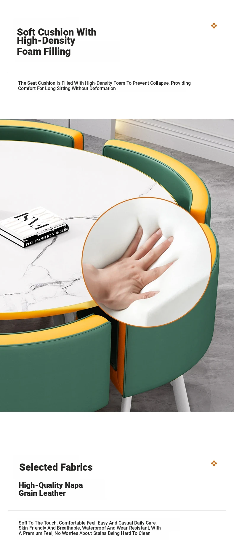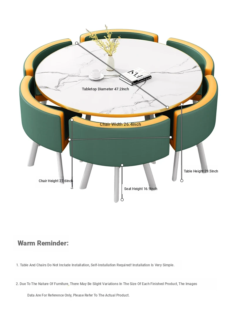 Dark Green Orange 47.24in table +6 nappa leather chair