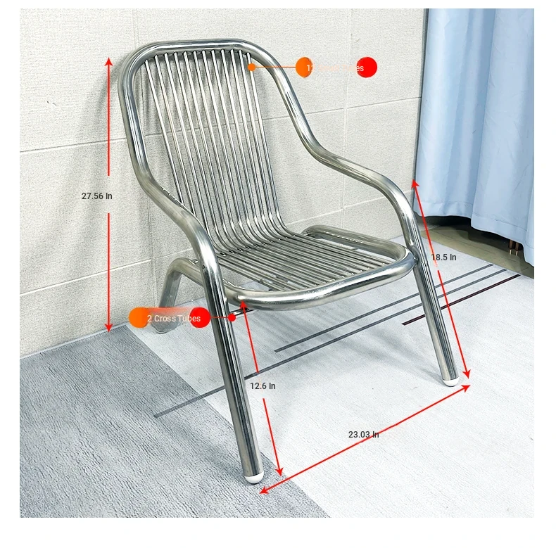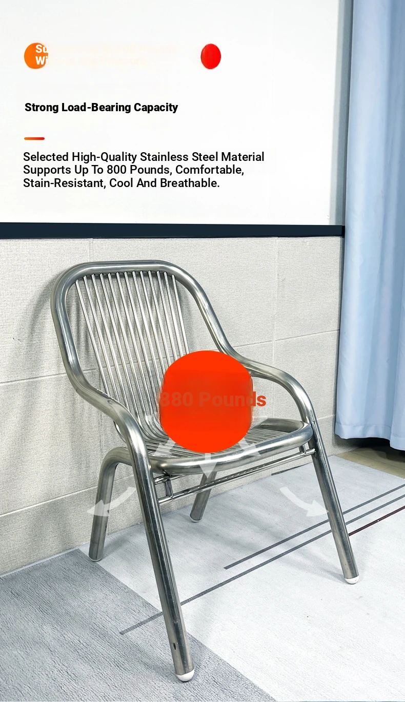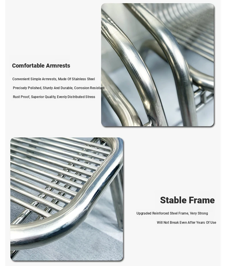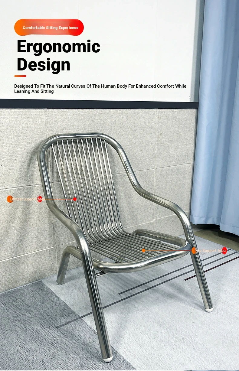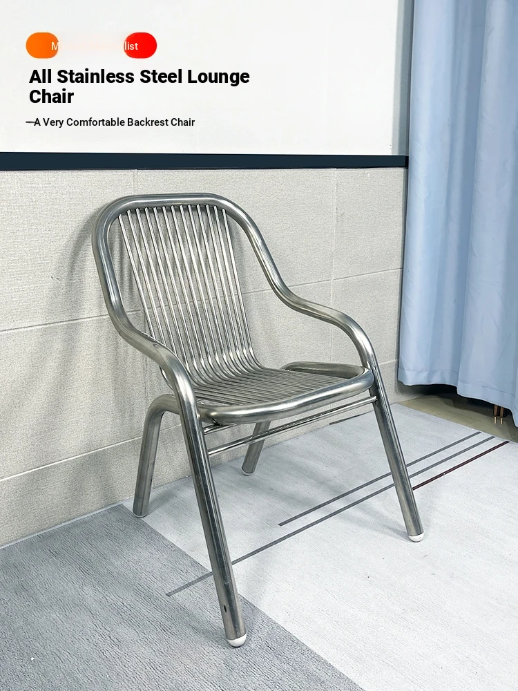Modern Minimalist Stainless Steel Outdoor Armchair - Comfortable Adult Dining Chair, Leisure Beach Recliner, Perfect for Home Use, Single Seat