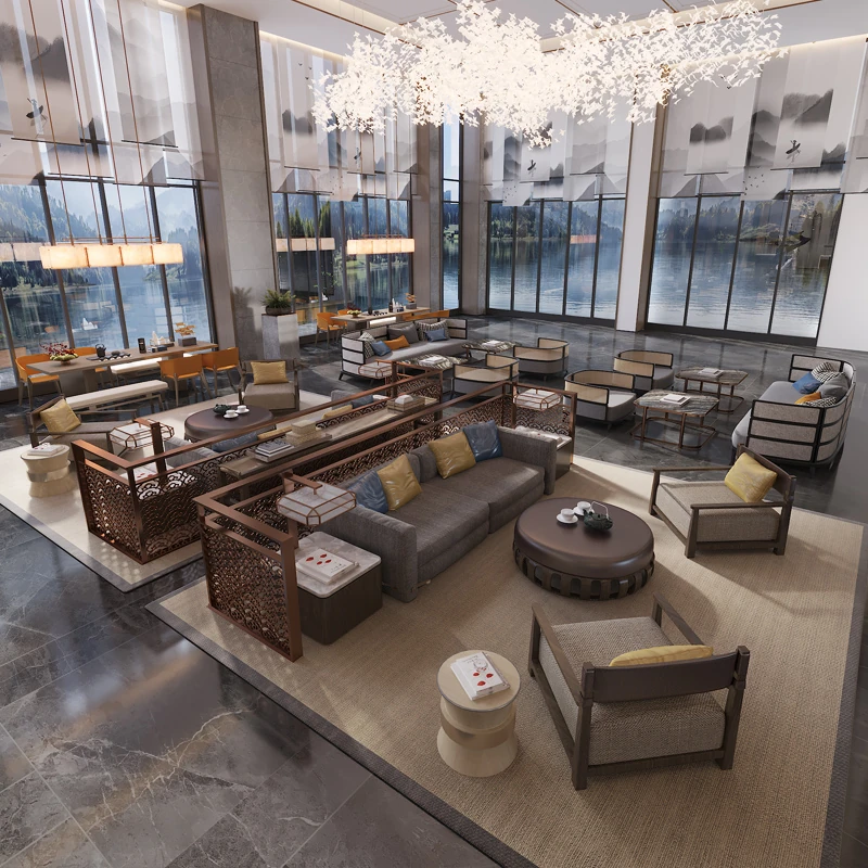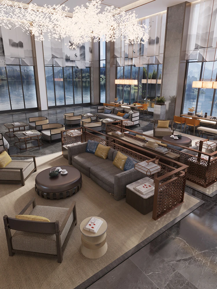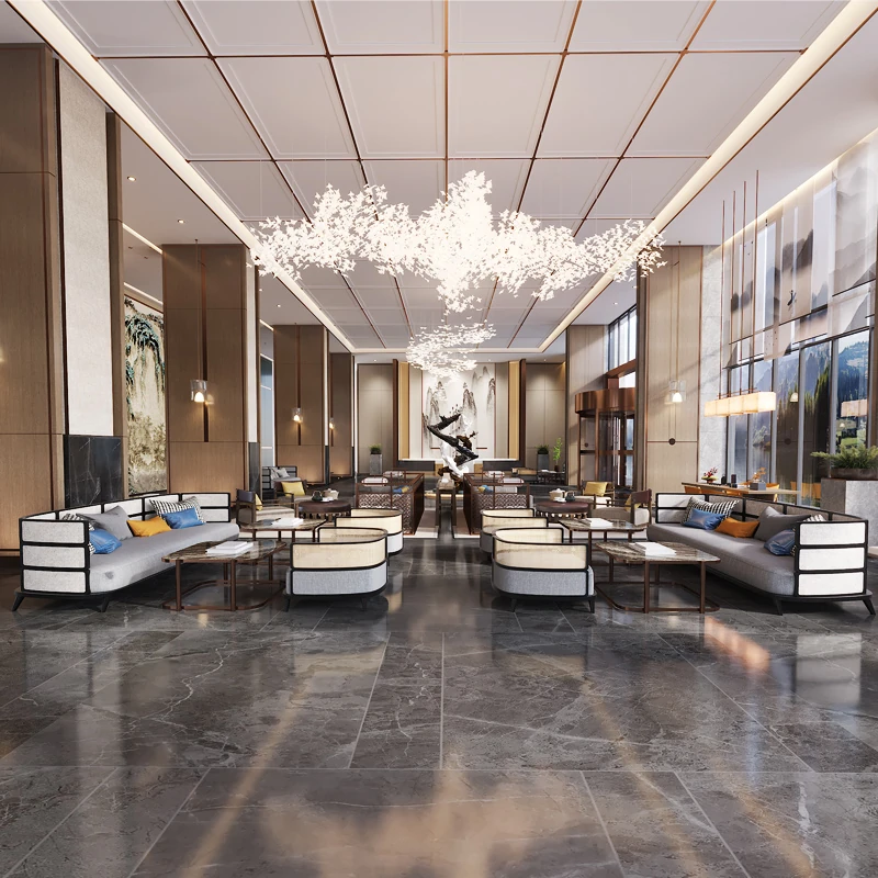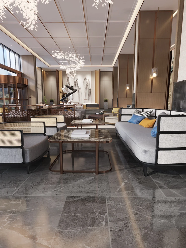 Modern New Chinese Style Sofa and Coffee Table Set for Sales Office - Elegant Light Luxury Reception Area Furniture for Hotels and Showrooms