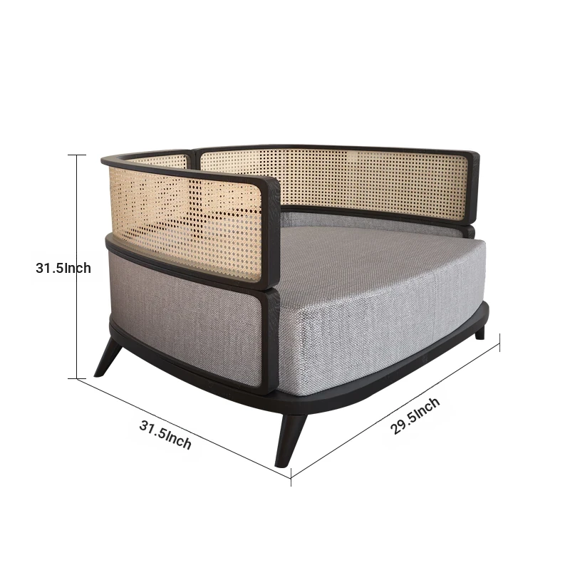 94.49 in Solid Wood Rattan Sofa
