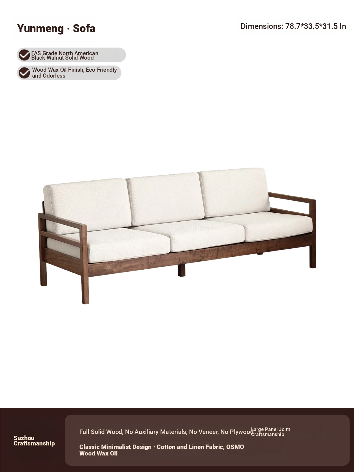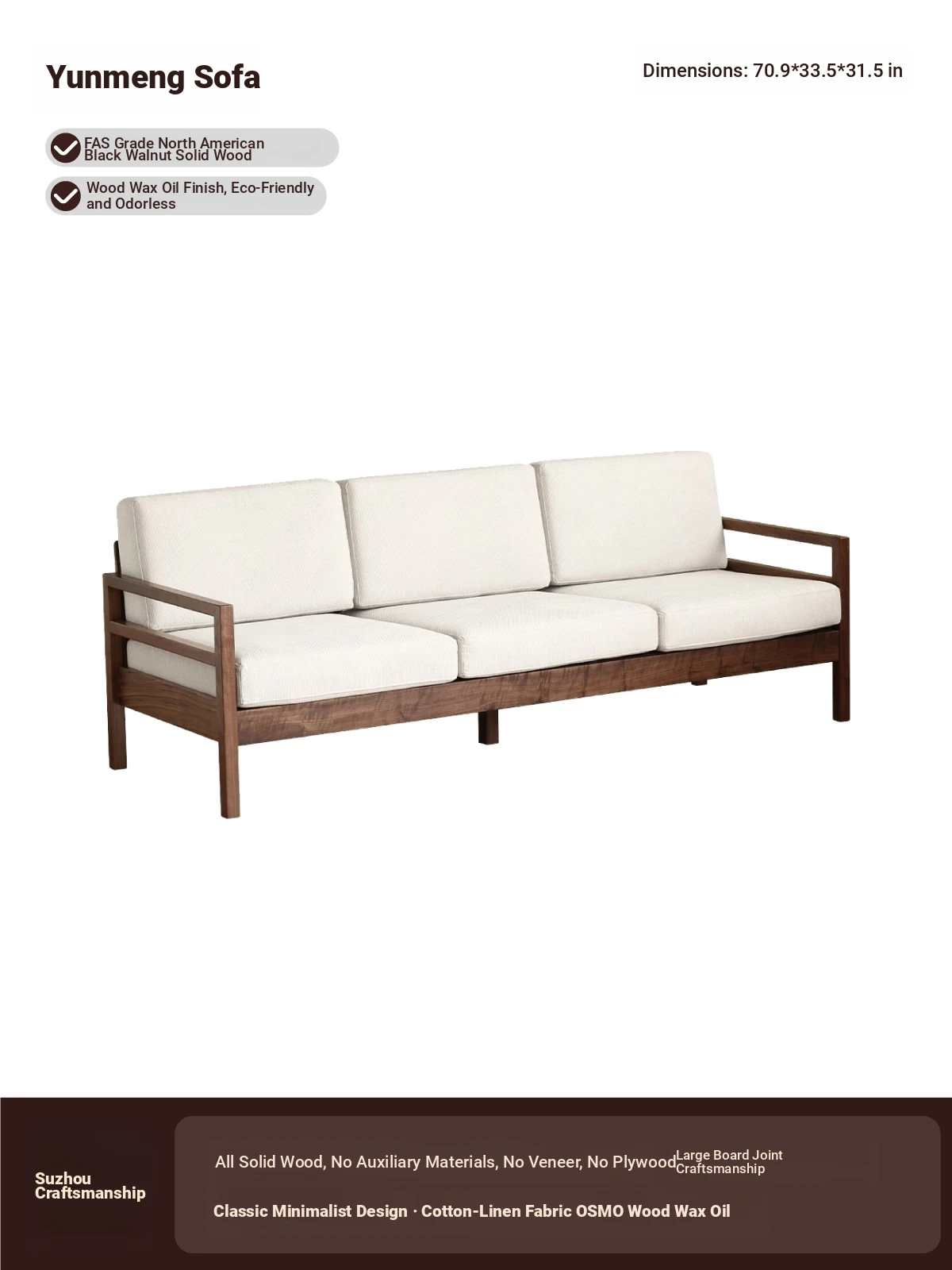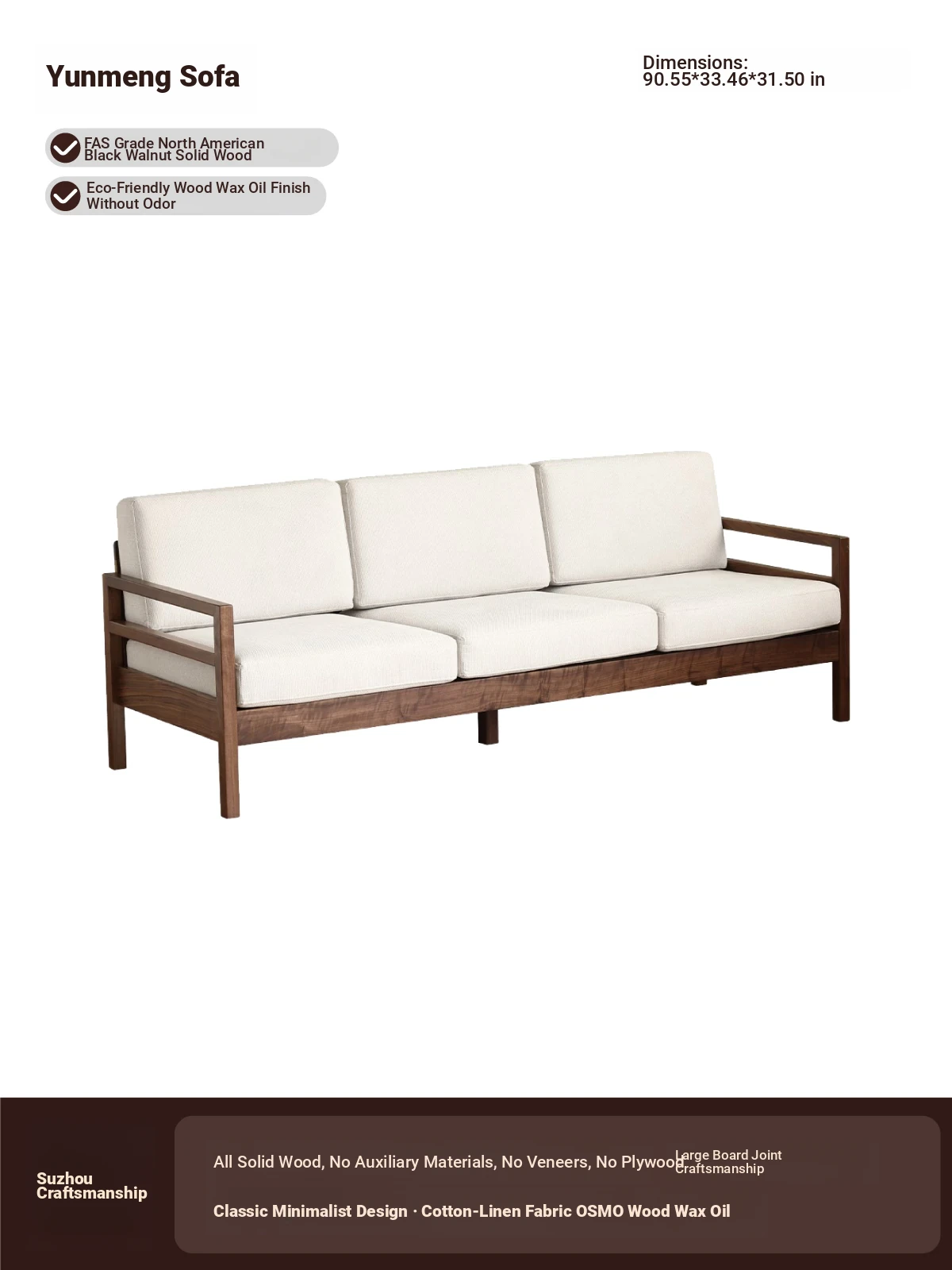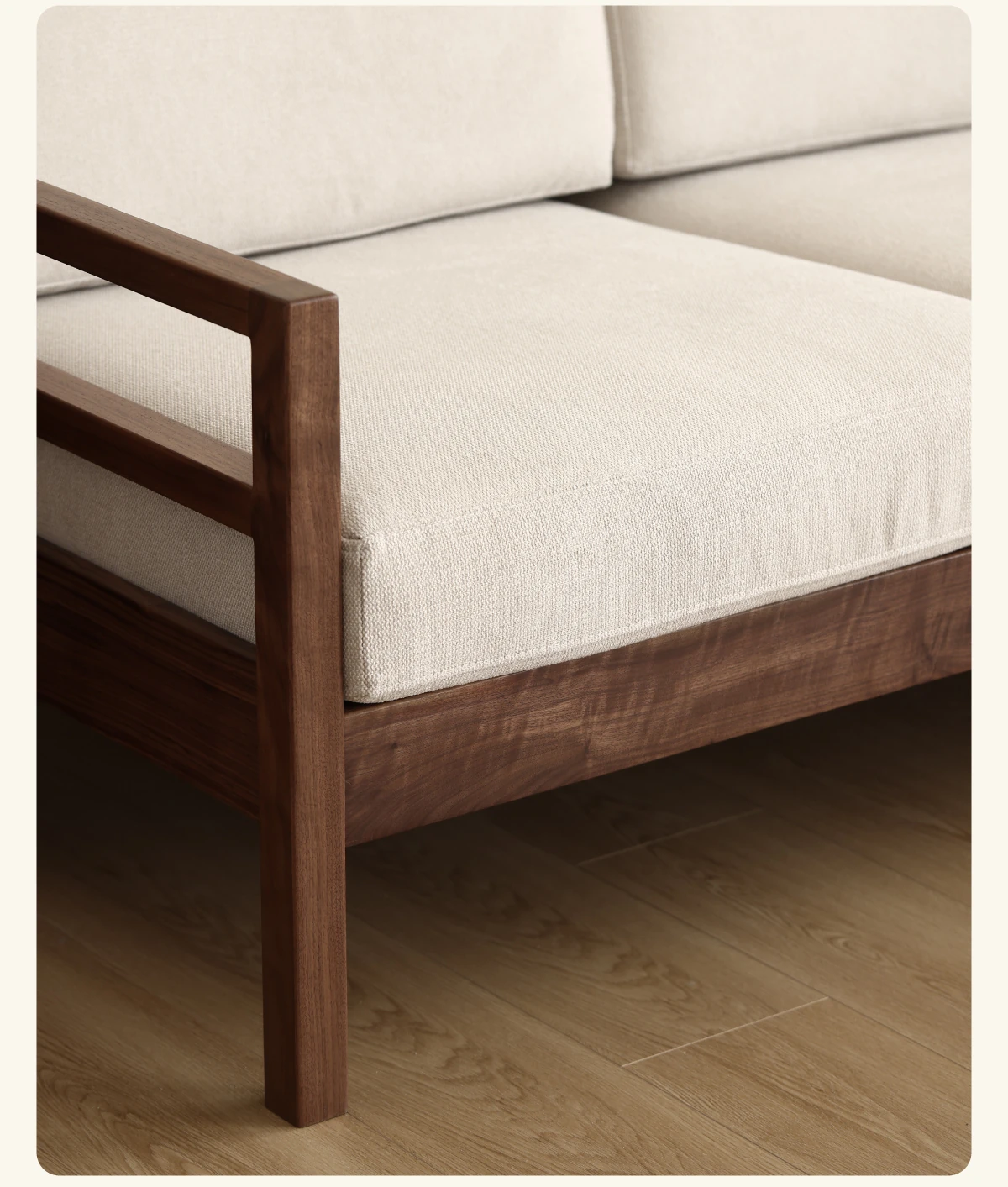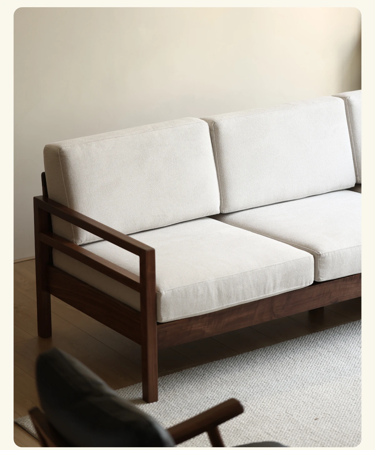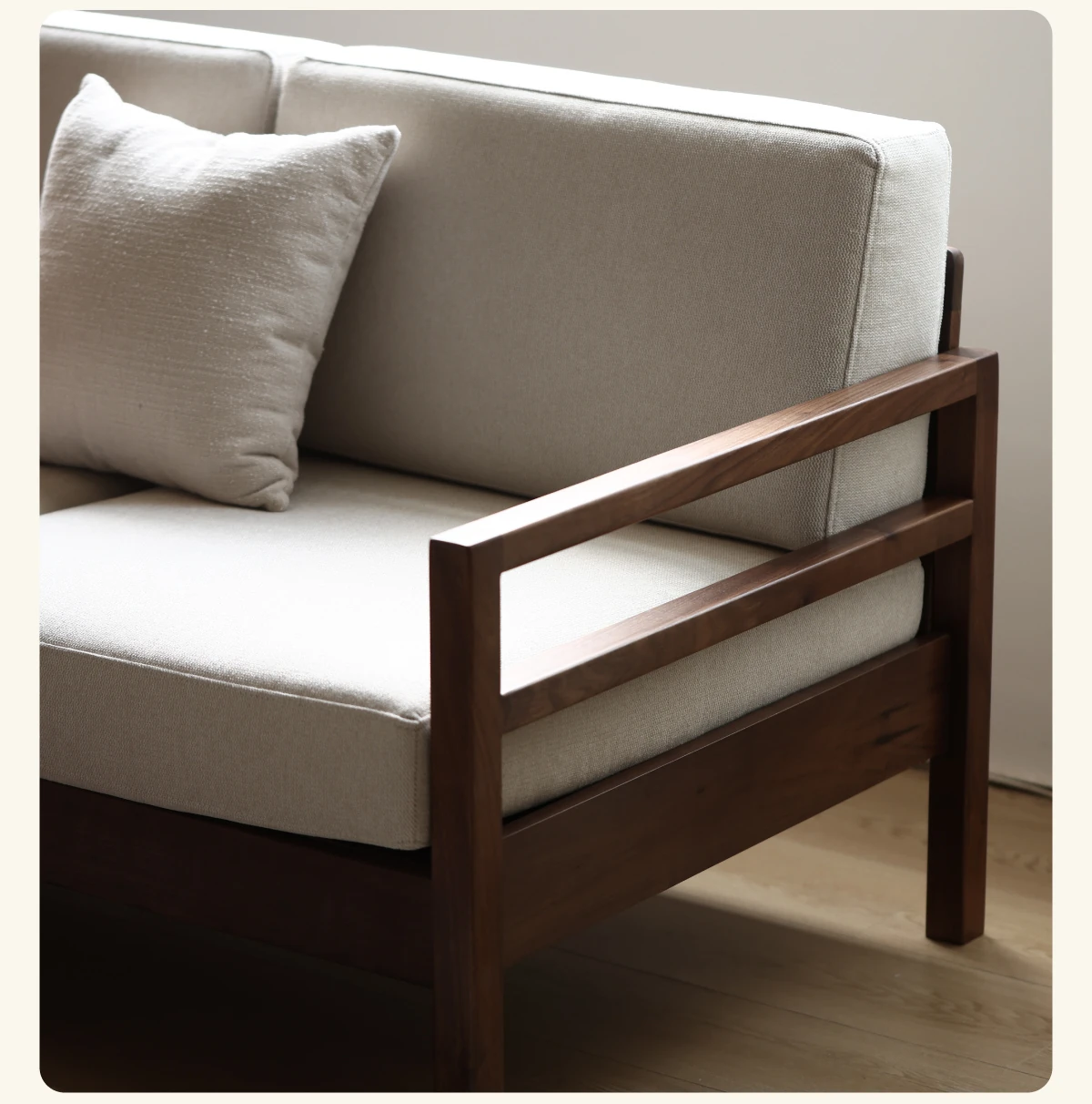 Modern Nordic Solid Wood Sofa in North American Black Walnut - Minimalist Design for Small Spaces, Perfect for Year-Round Comfort!
