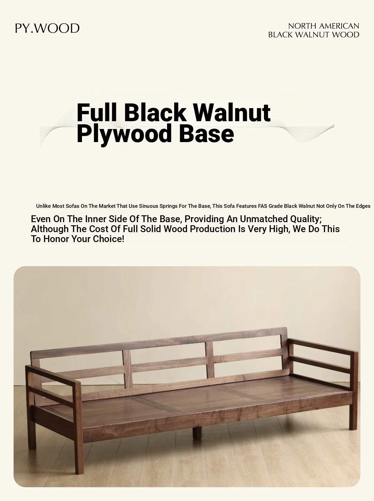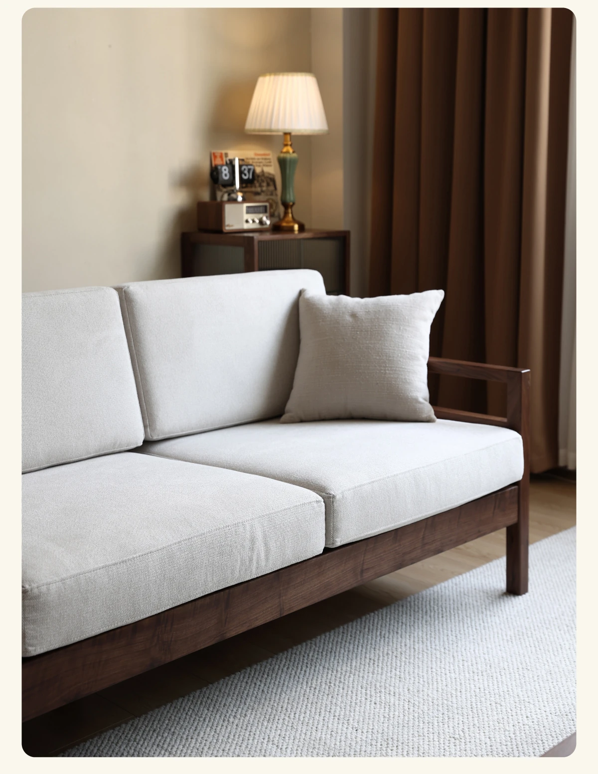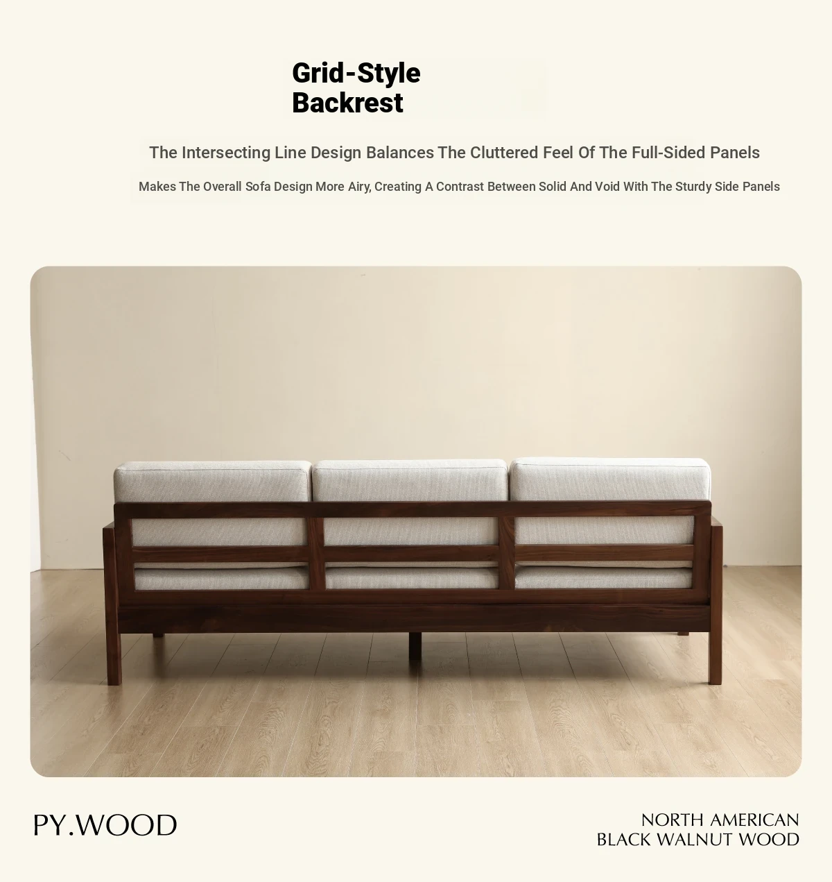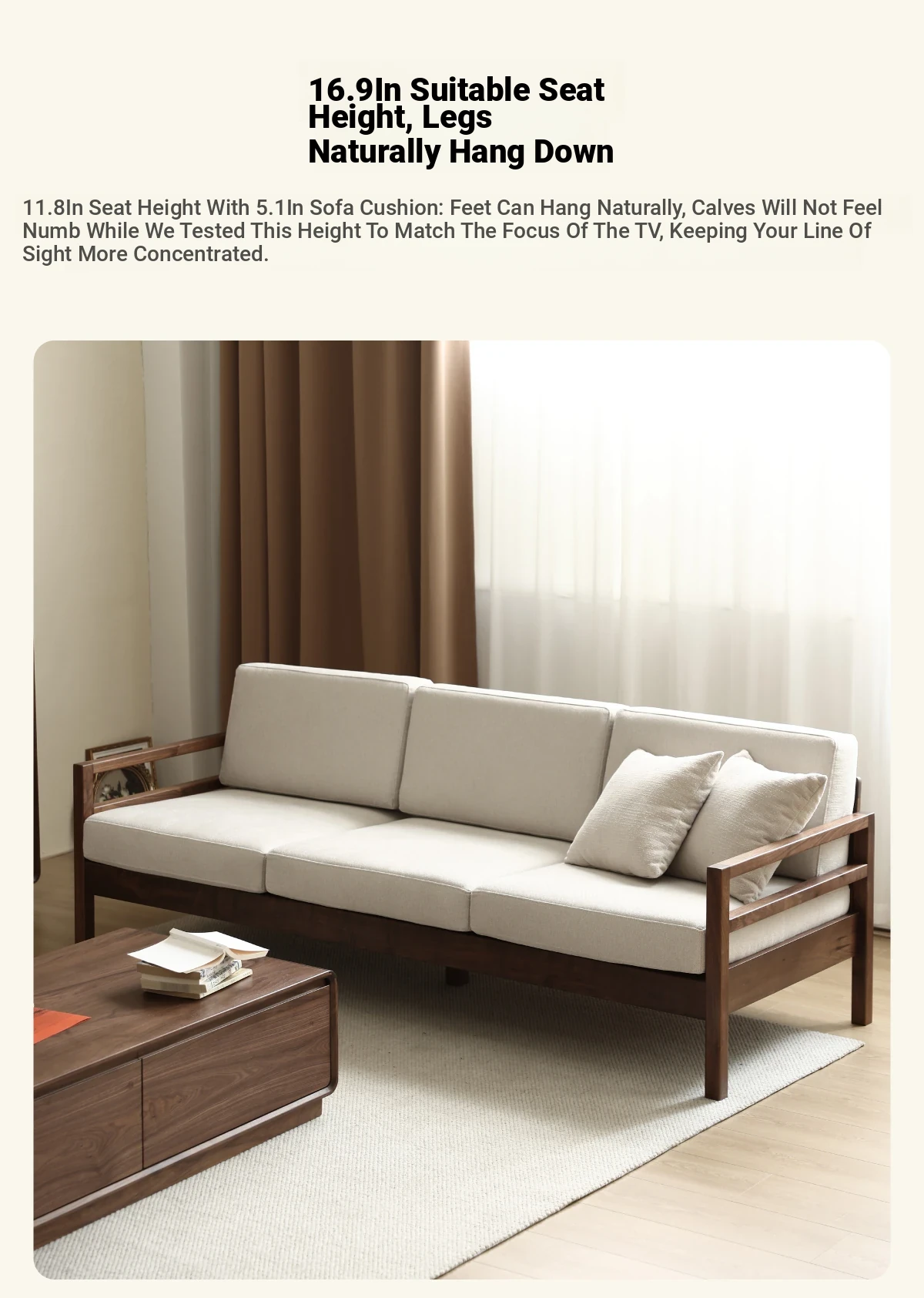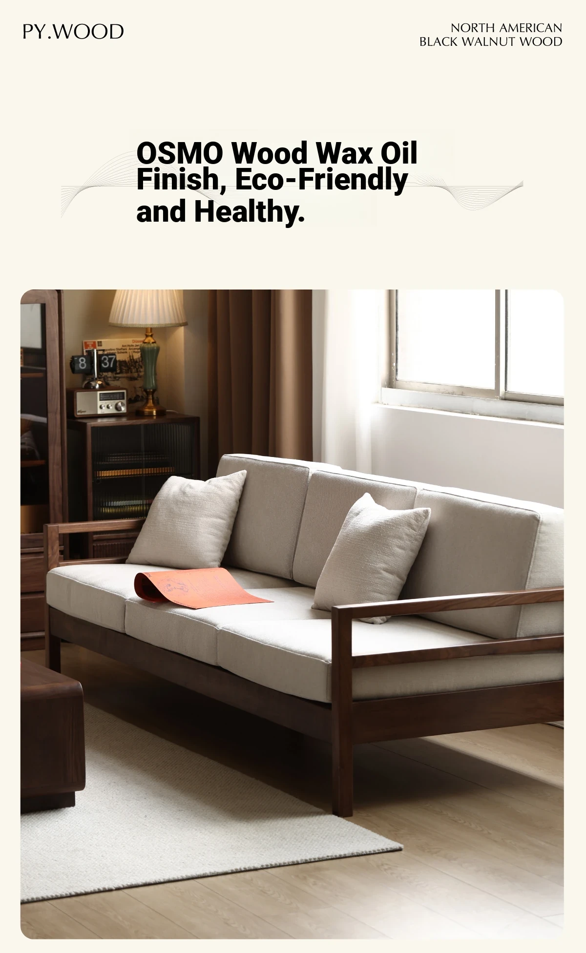 Modern Nordic Solid Wood Sofa in North American Black Walnut - Minimalist Design for Small Spaces, Perfect for Year-Round Comfort!