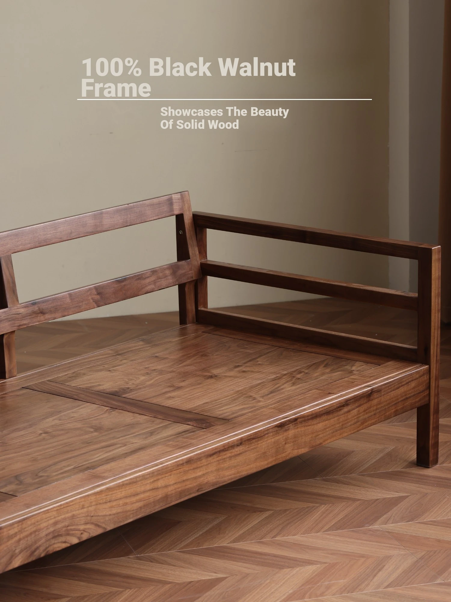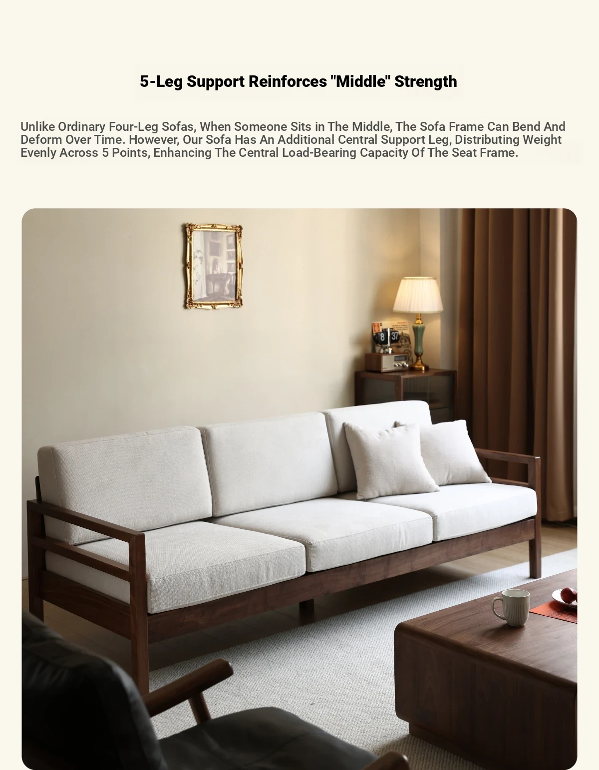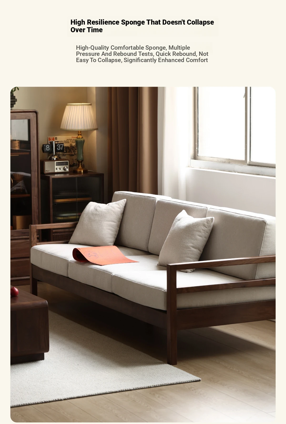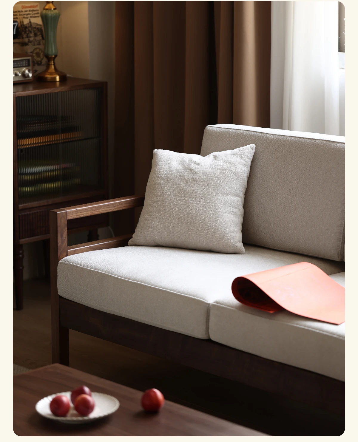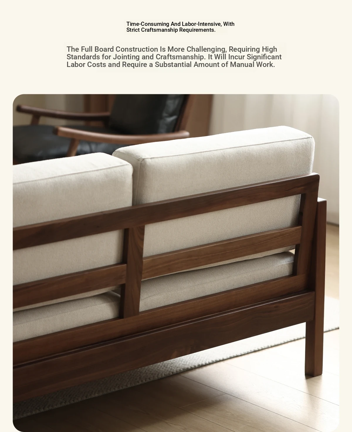 Modern Nordic Solid Wood Sofa in North American Black Walnut - Minimalist Design for Small Spaces, Perfect for Year-Round Comfort!