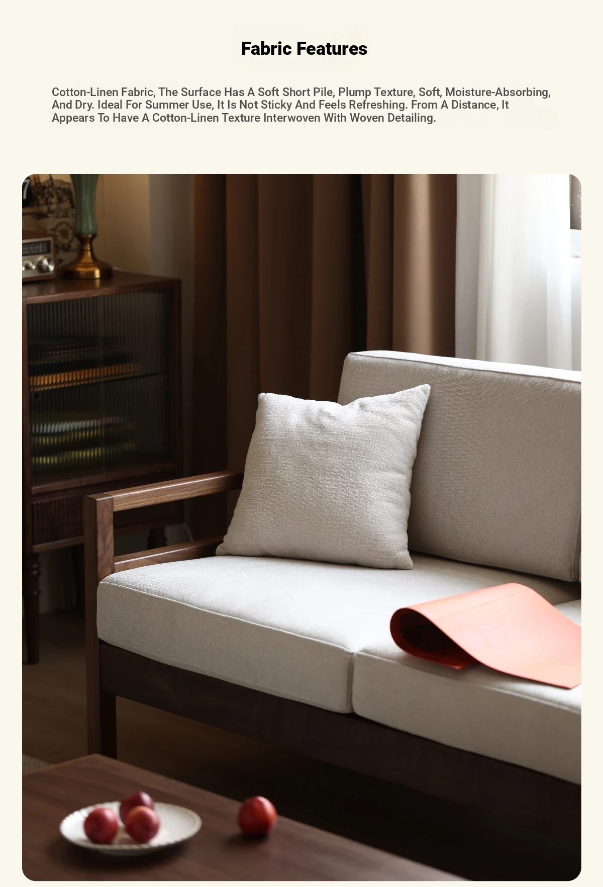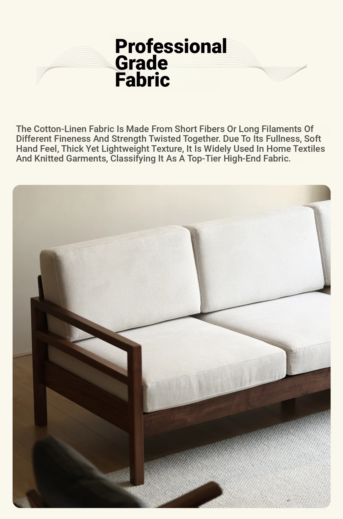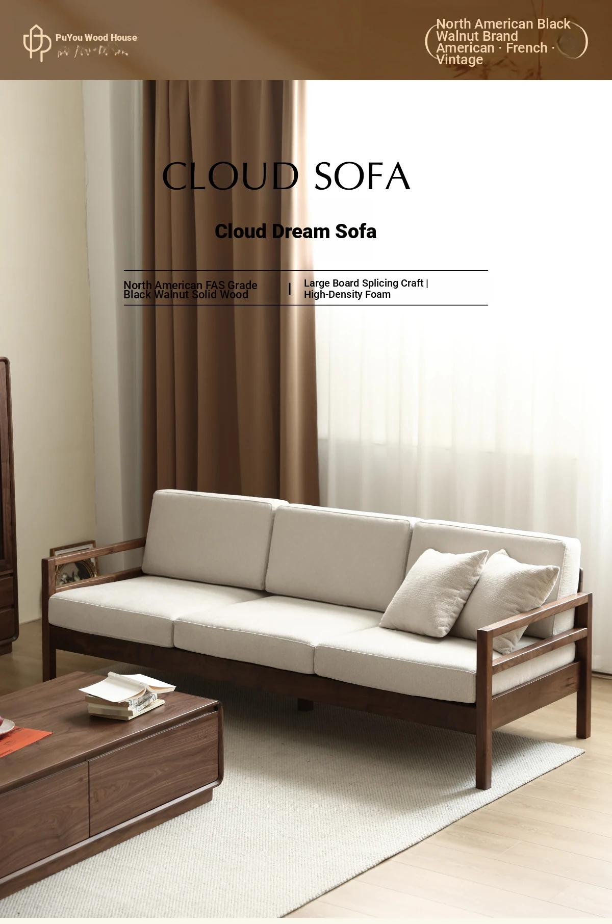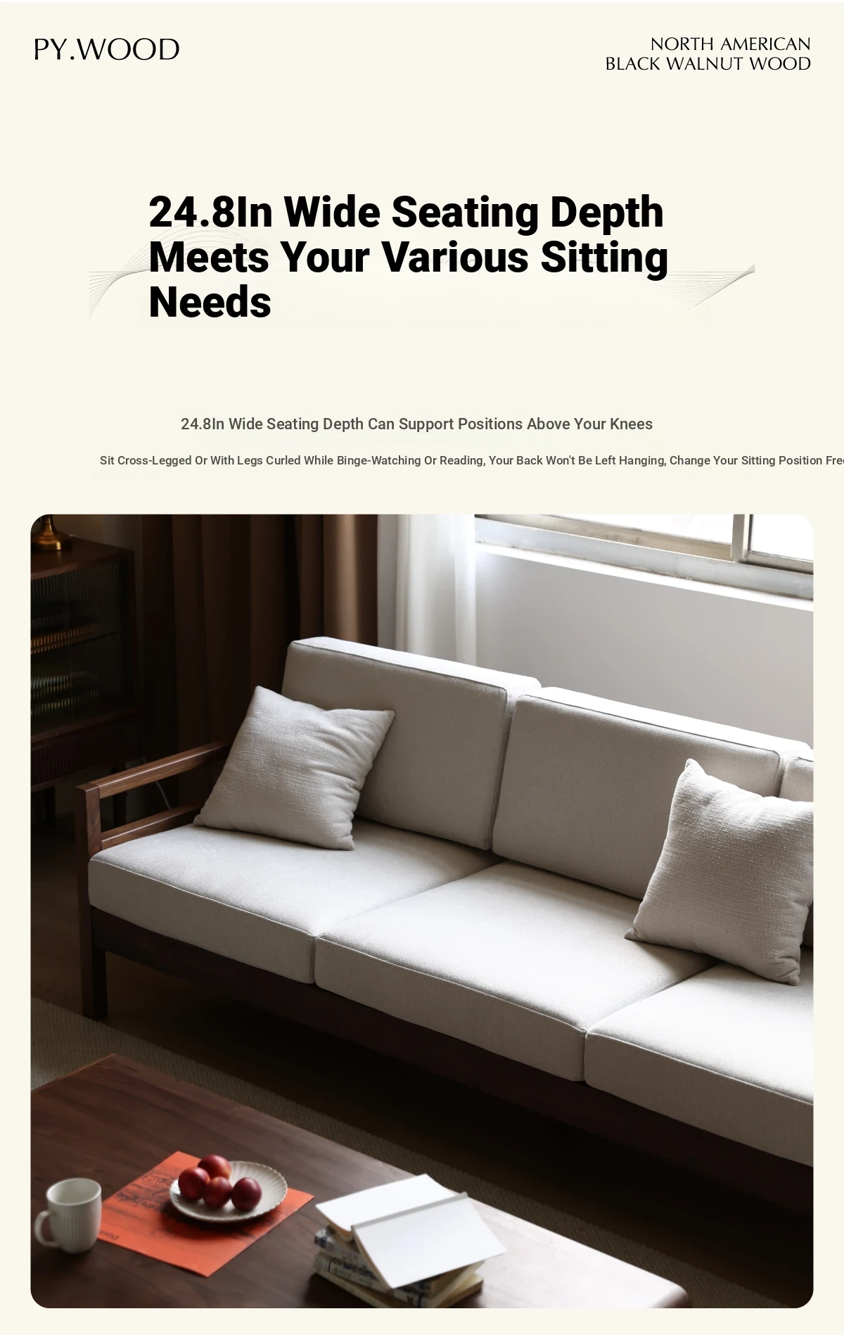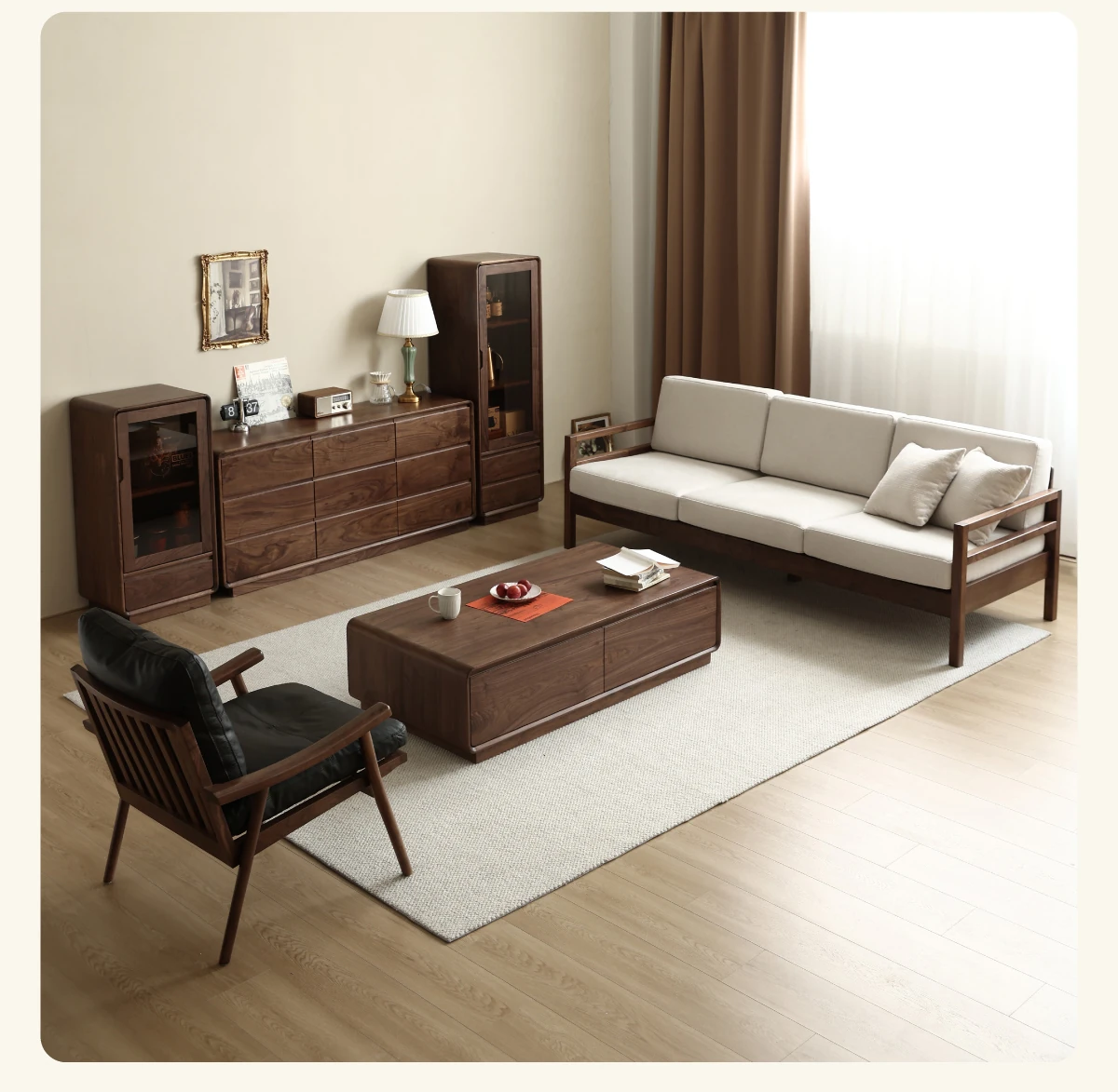 Modern Nordic Solid Wood Sofa in North American Black Walnut - Minimalist Design for Small Spaces, Perfect for Year-Round Comfort!