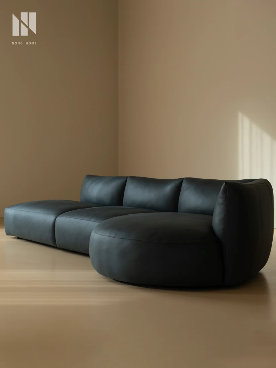 Nongju Bauhaus Imported Top Layer Cowhide Sofa – Modern Retro Modular Leather Sofa for Home Living Room