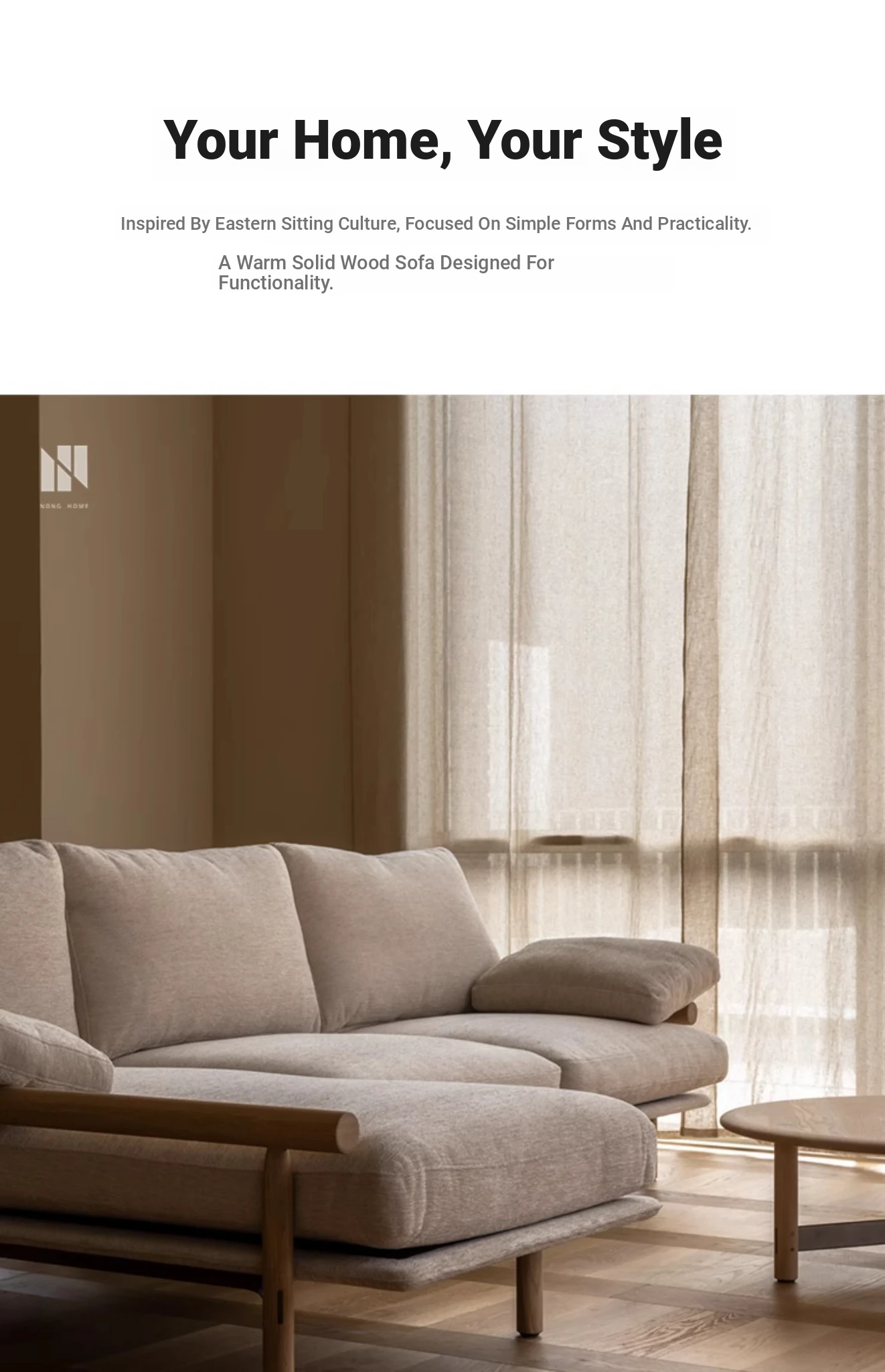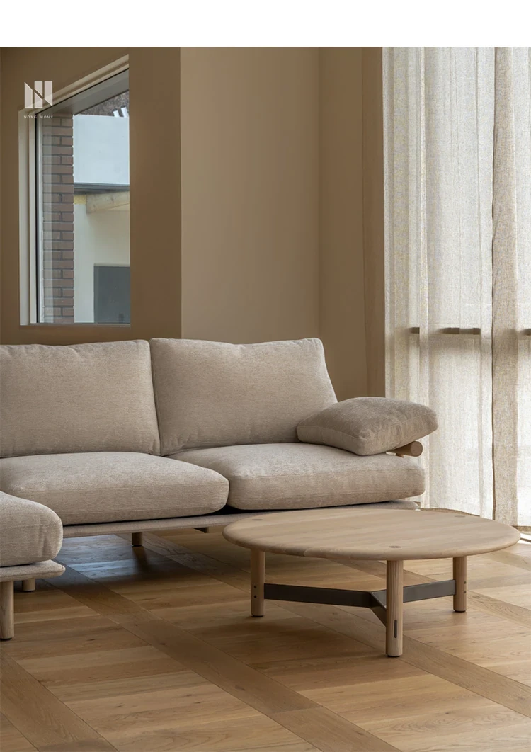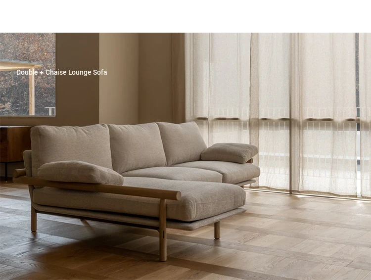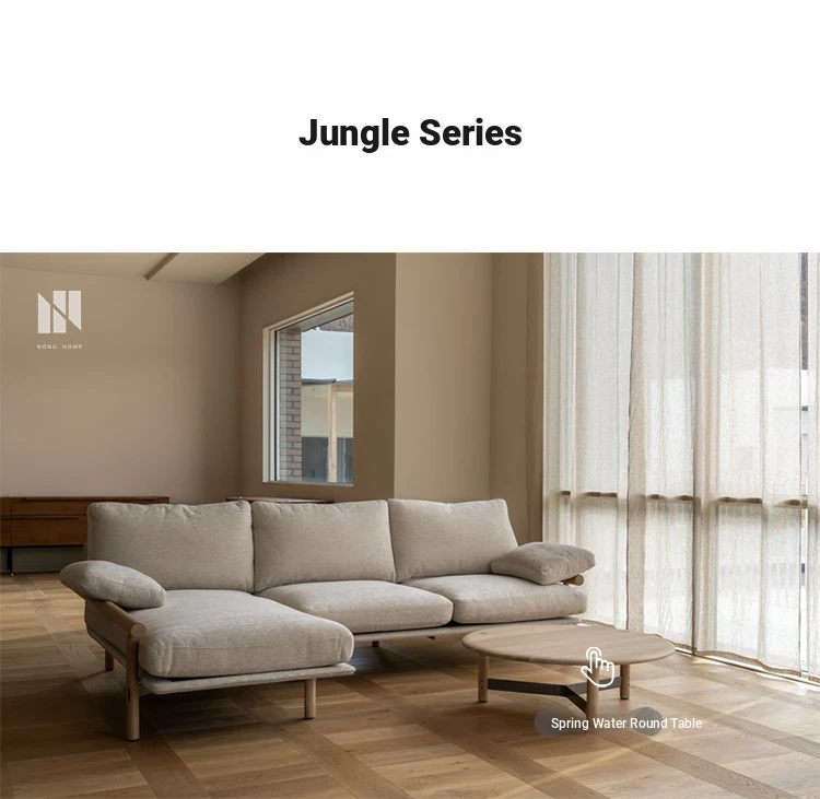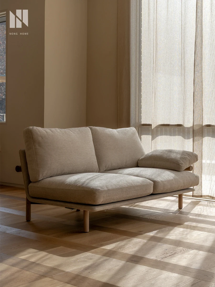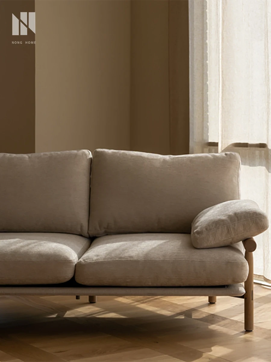 Nongju Retro Solid Wood Sofa - Stylish Three-Seater Fabric Sofa for Living Room, Japanese Minimalist L-Shaped Design in Natural Wood Finish