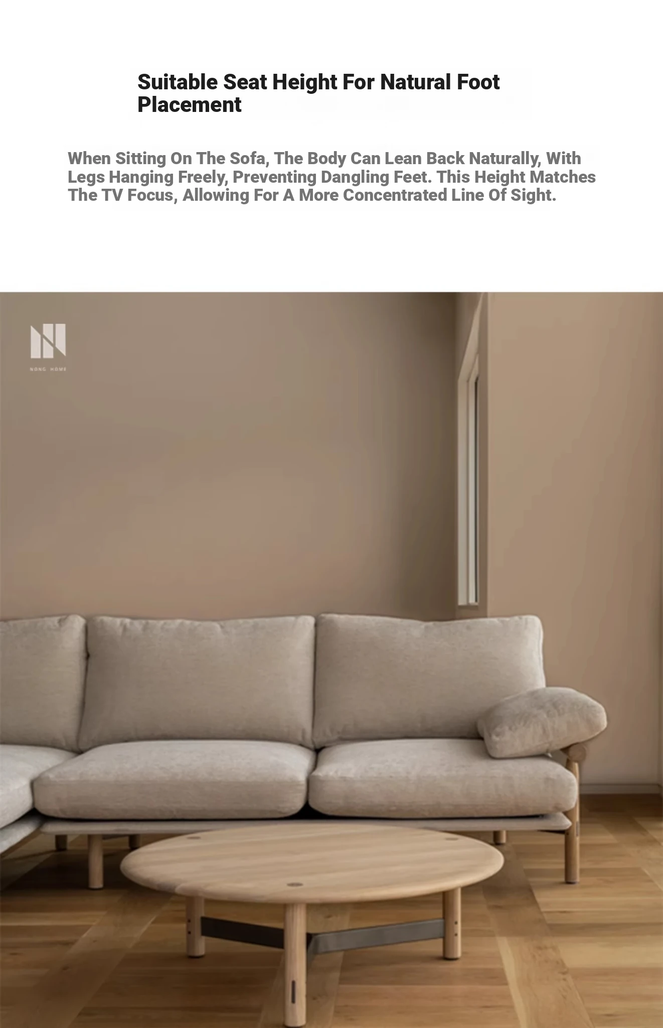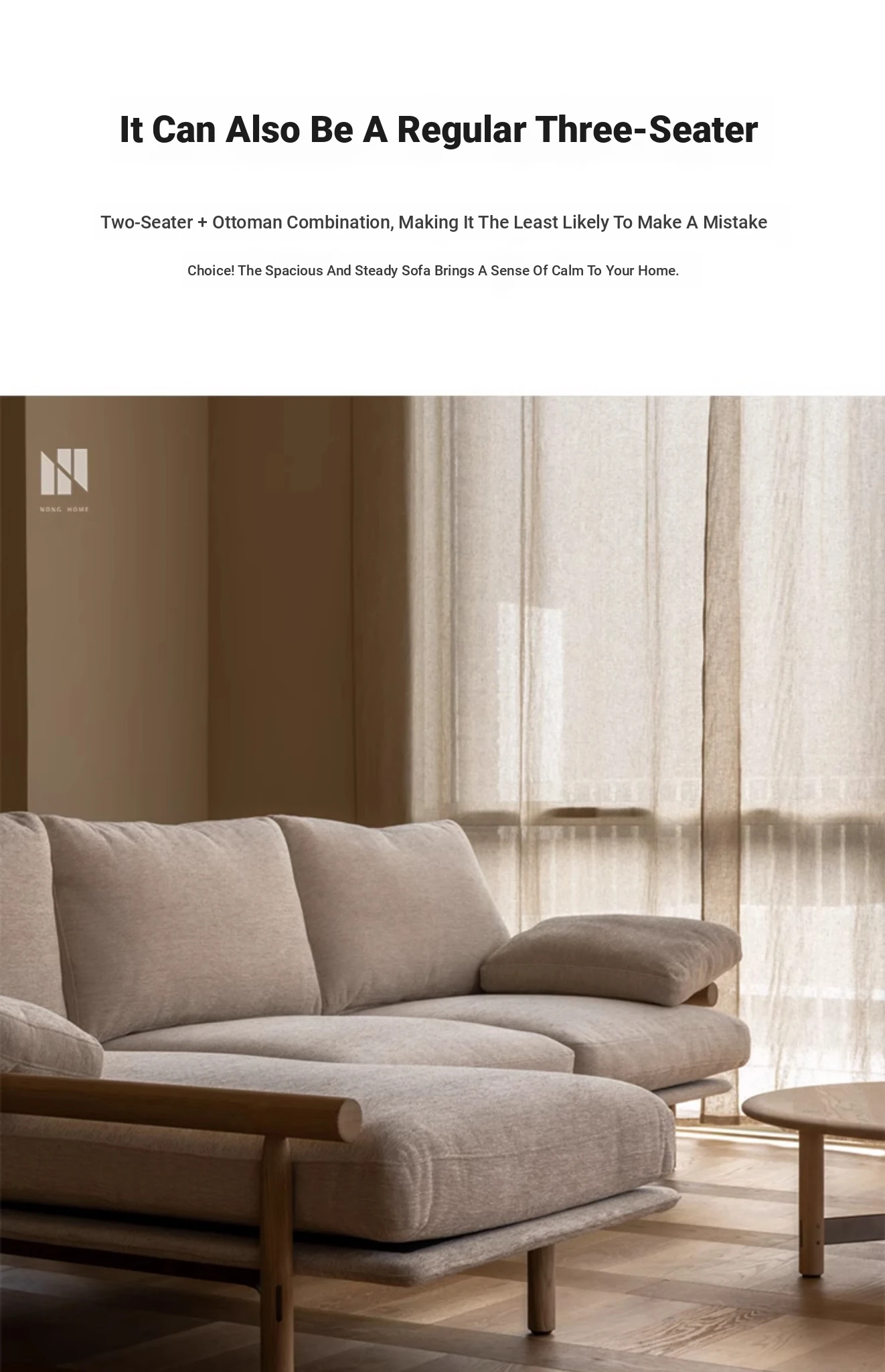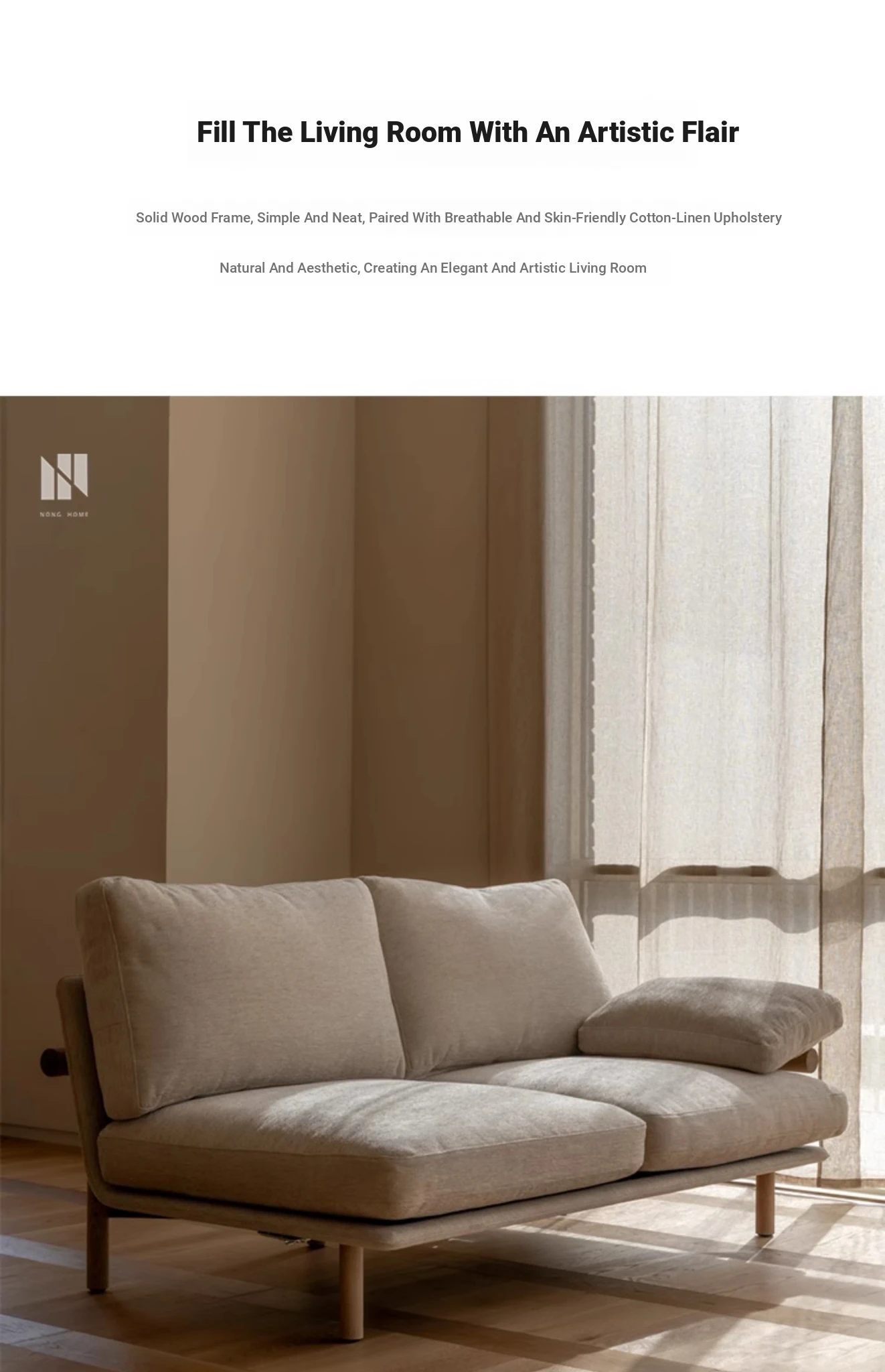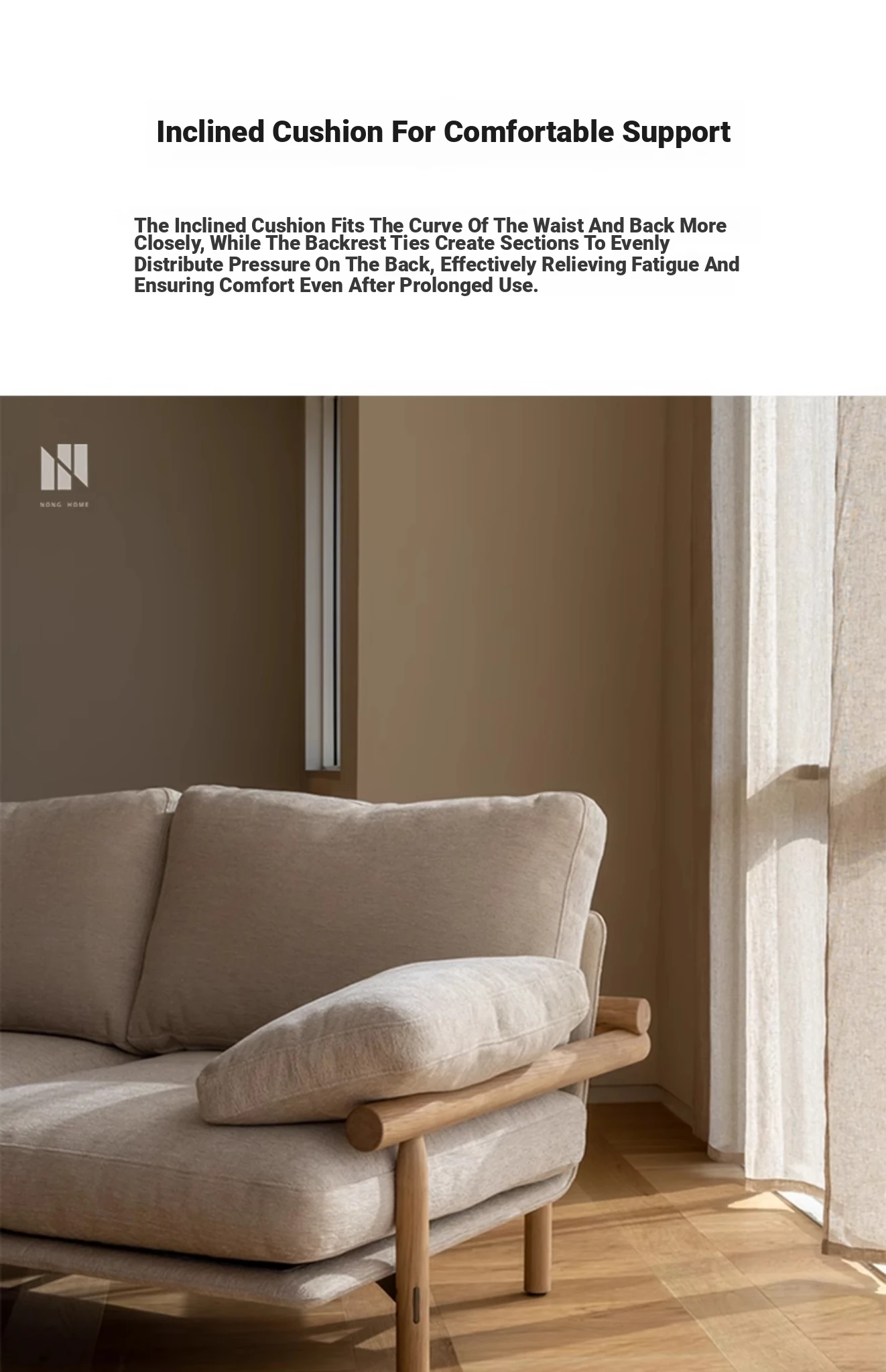 Nongju Retro Solid Wood Sofa - Stylish Three-Seater Fabric Sofa for Living Room, Japanese Minimalist L-Shaped Design in Natural Wood Finish