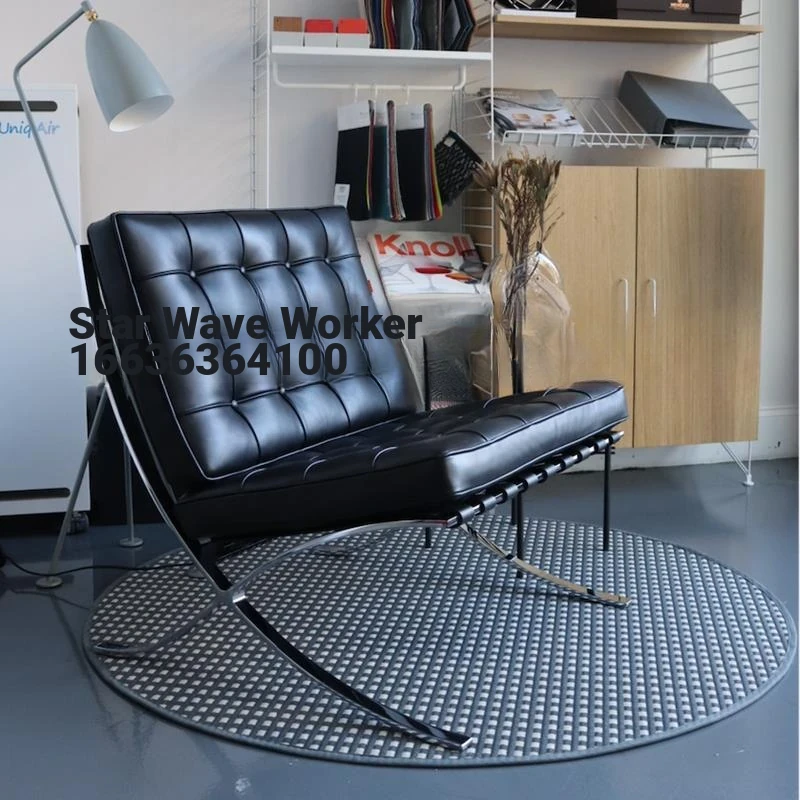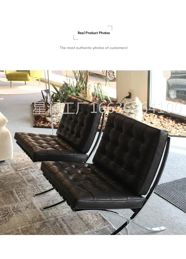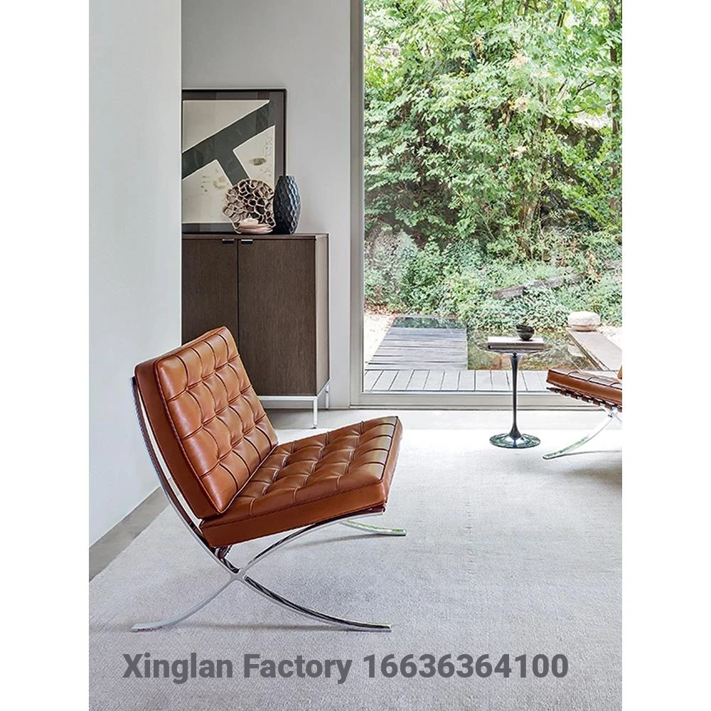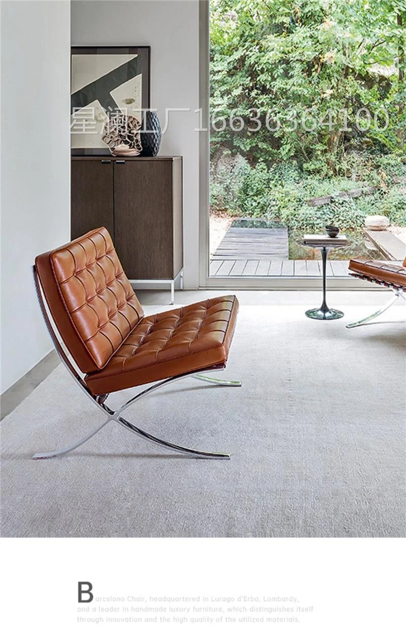 Nordic Barcelona Chair - Modern Genuine Leather Single Sofa, Designer Lounge Chair for Stylish Living Spaces