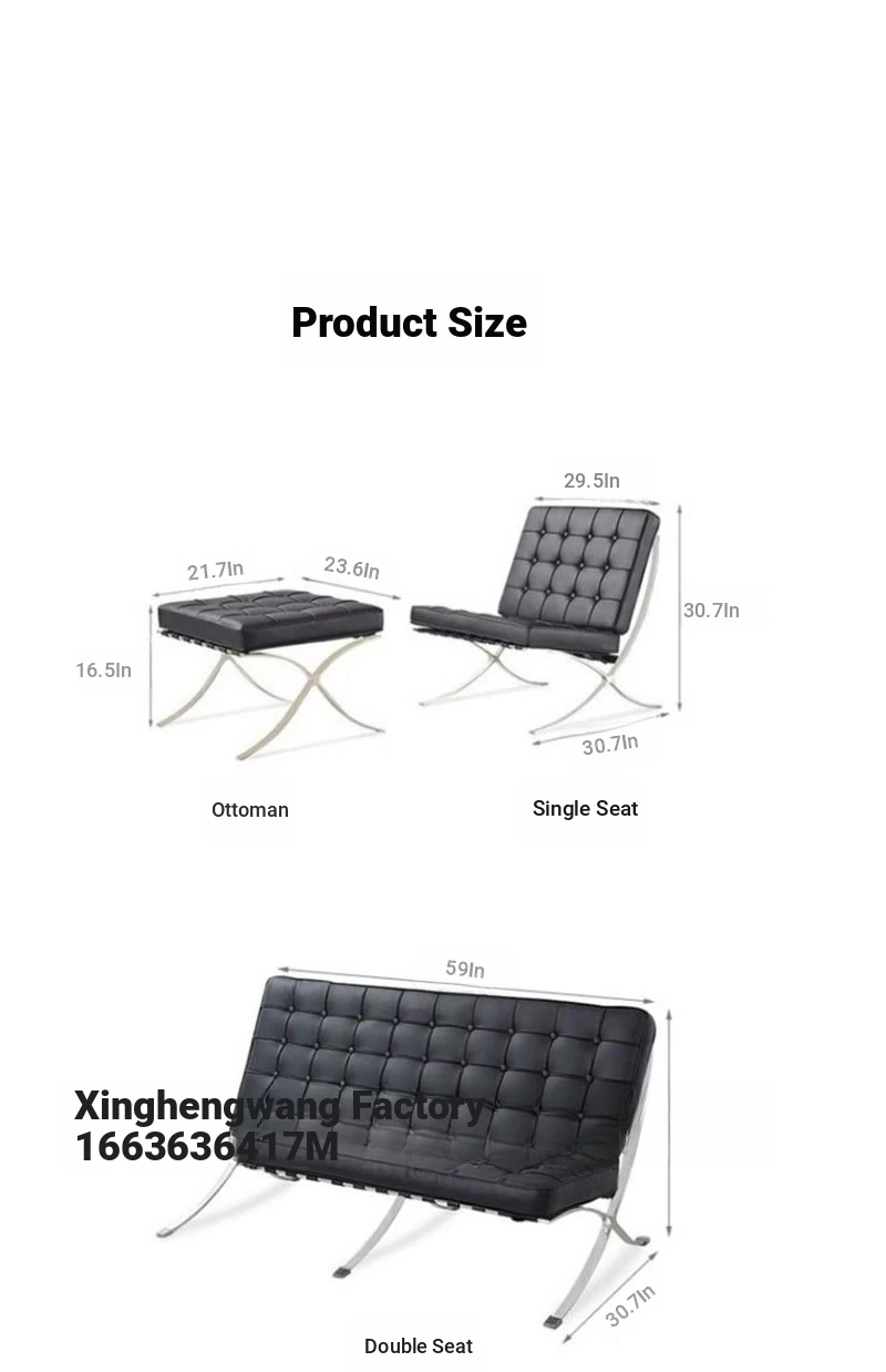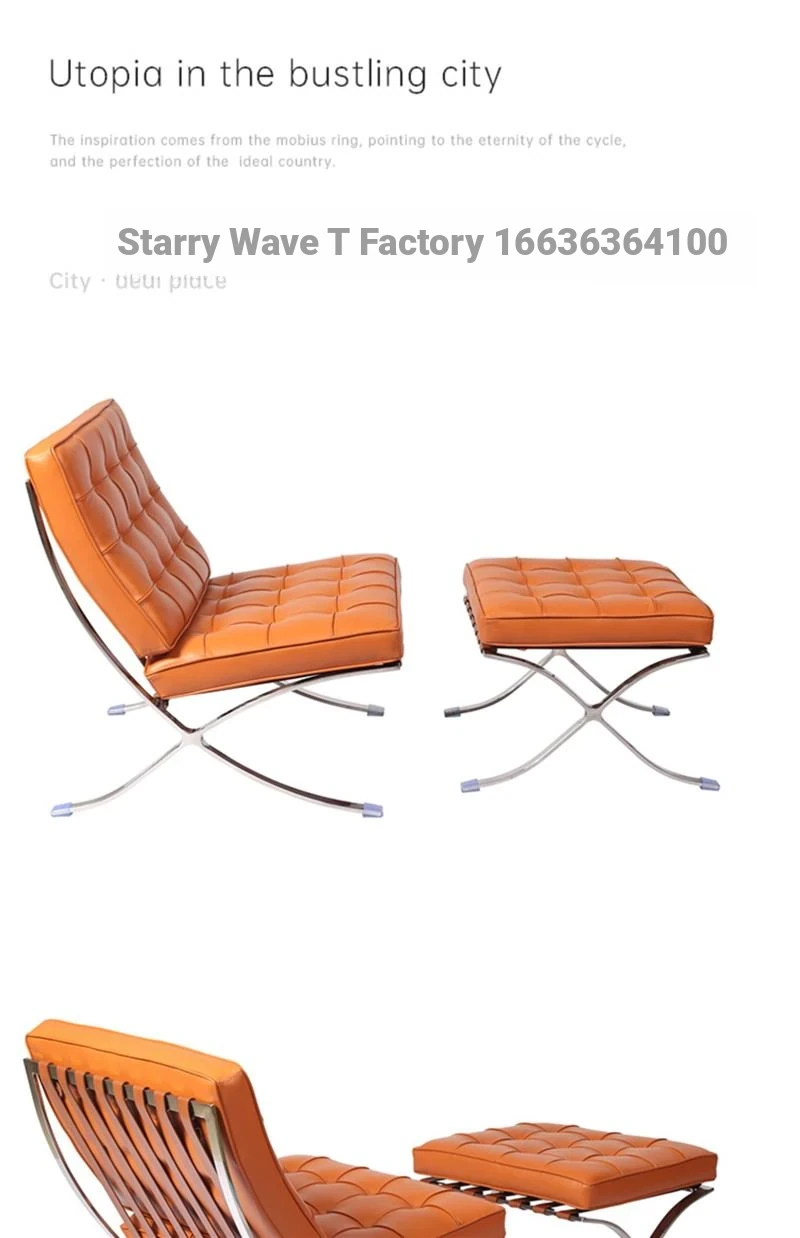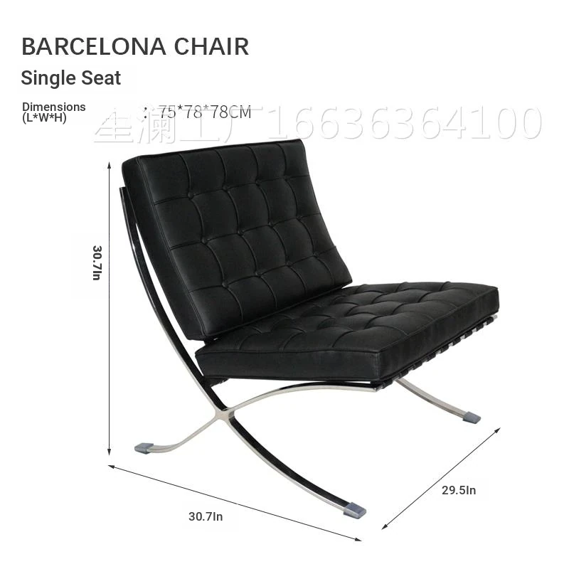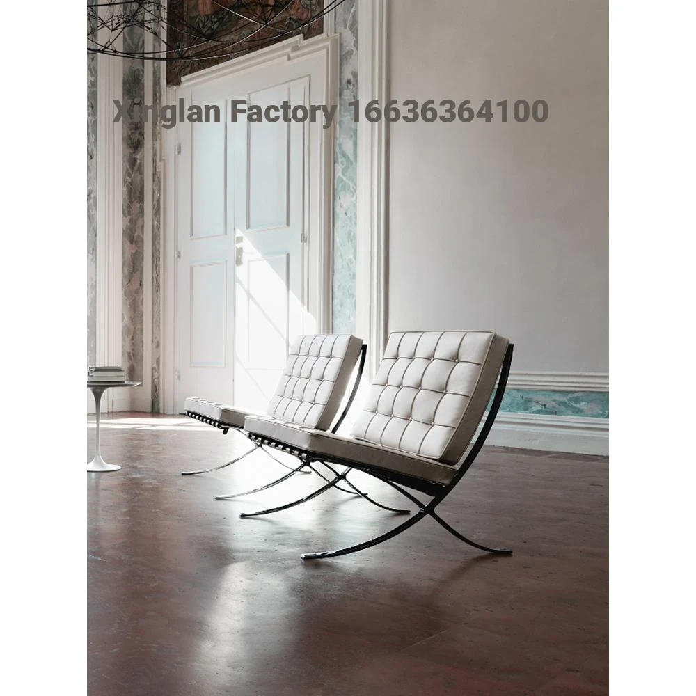 Nordic Barcelona Chair - Modern Genuine Leather Single Sofa, Designer Lounge Chair for Stylish Living Spaces